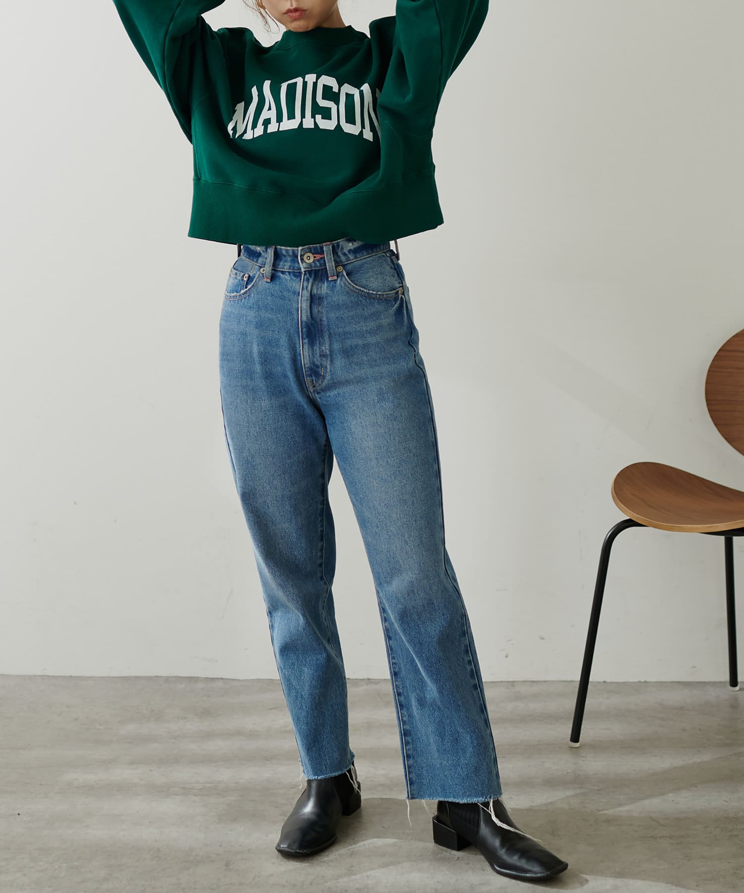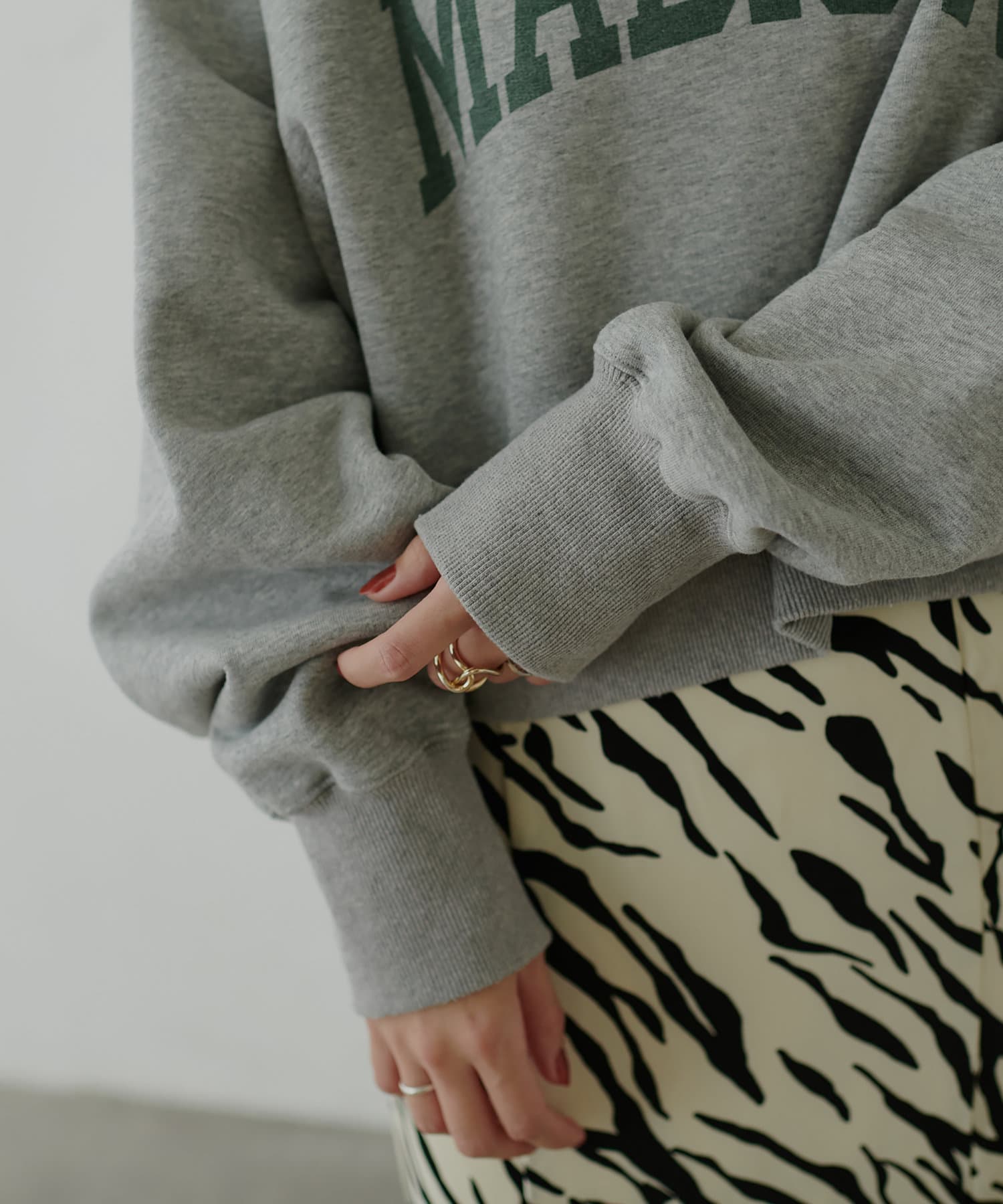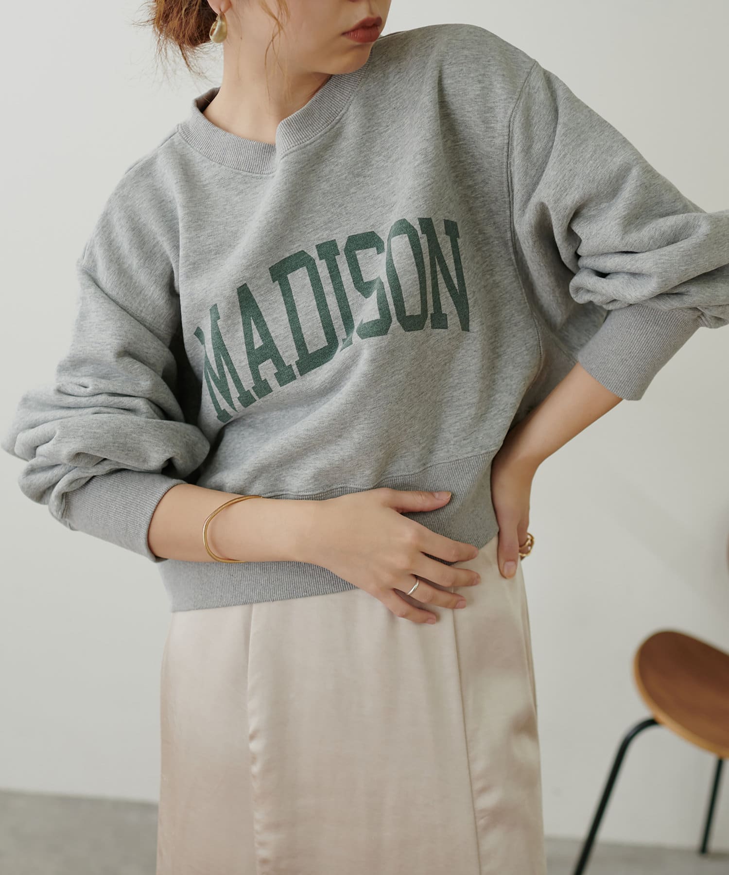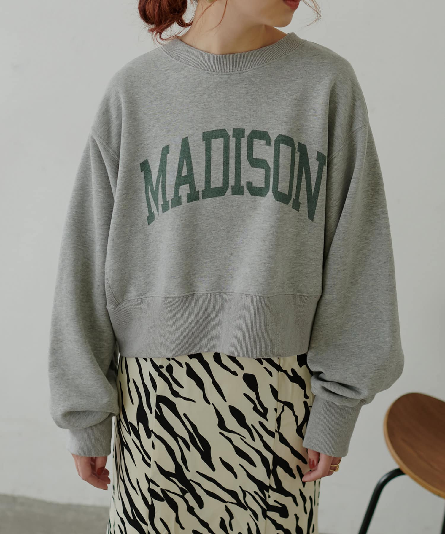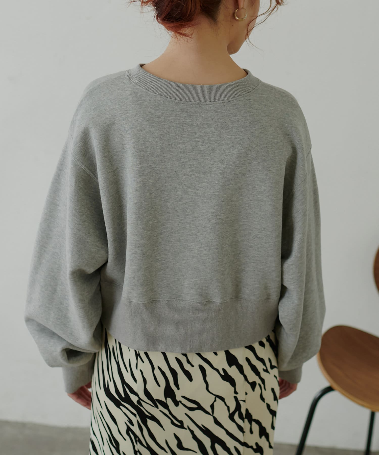 コンパクトなボックスシルエットがポイントのトレーナー。