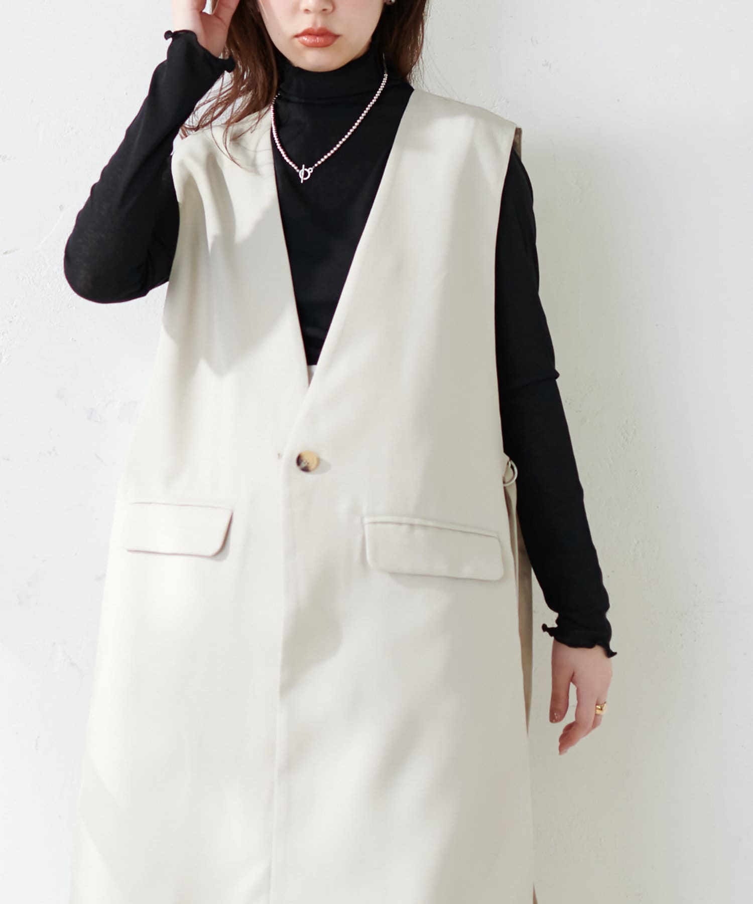 すっきりとしていてかさばらない素材感なので重ね着にもおすすめです。