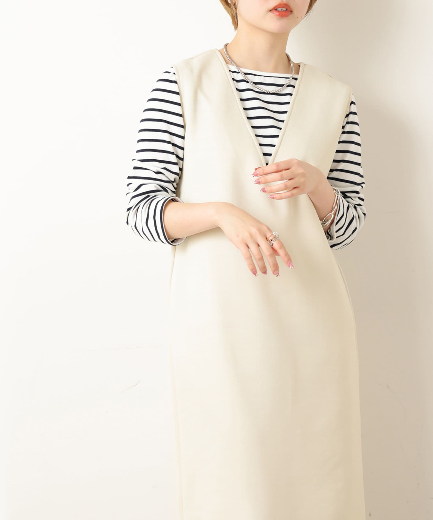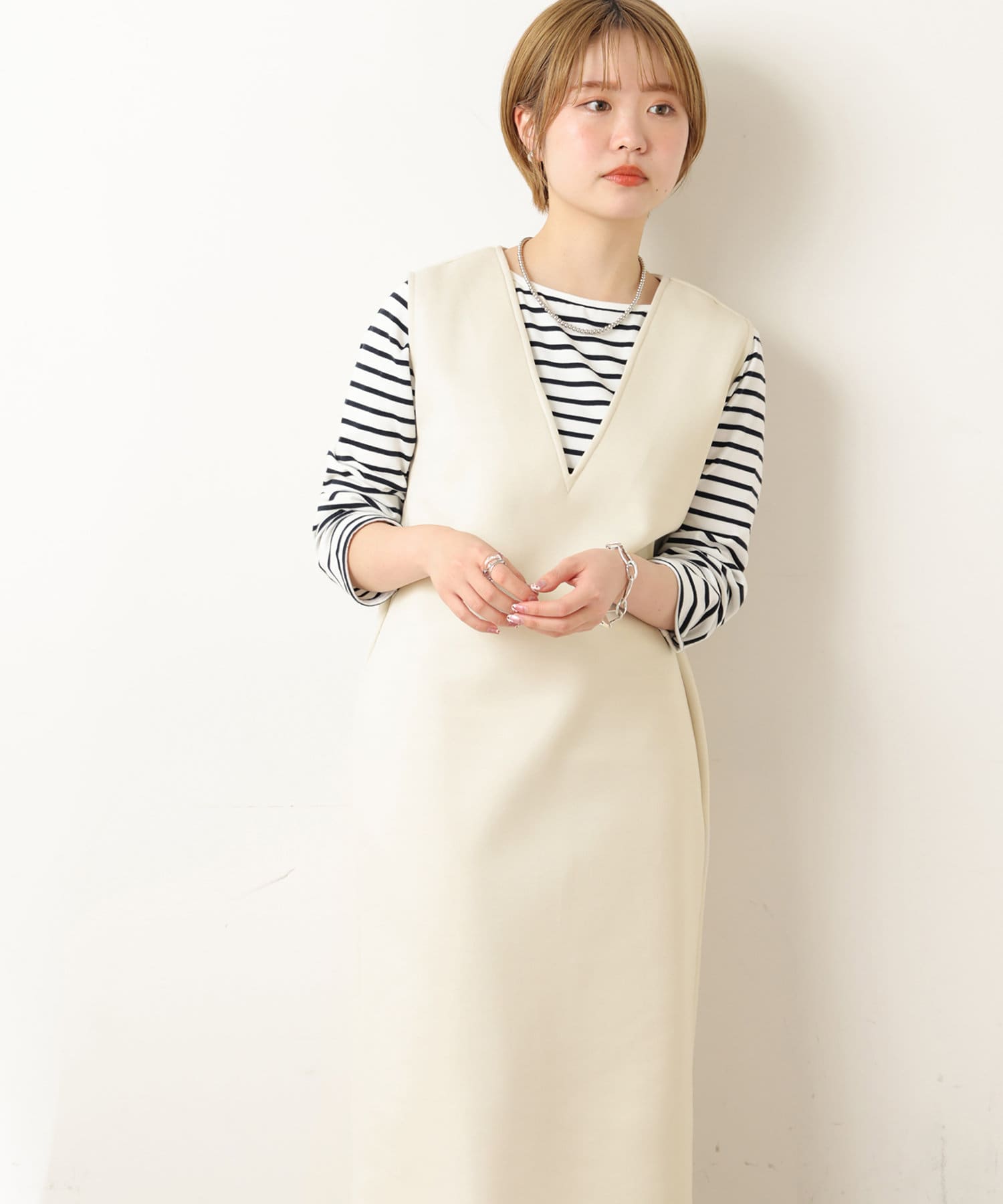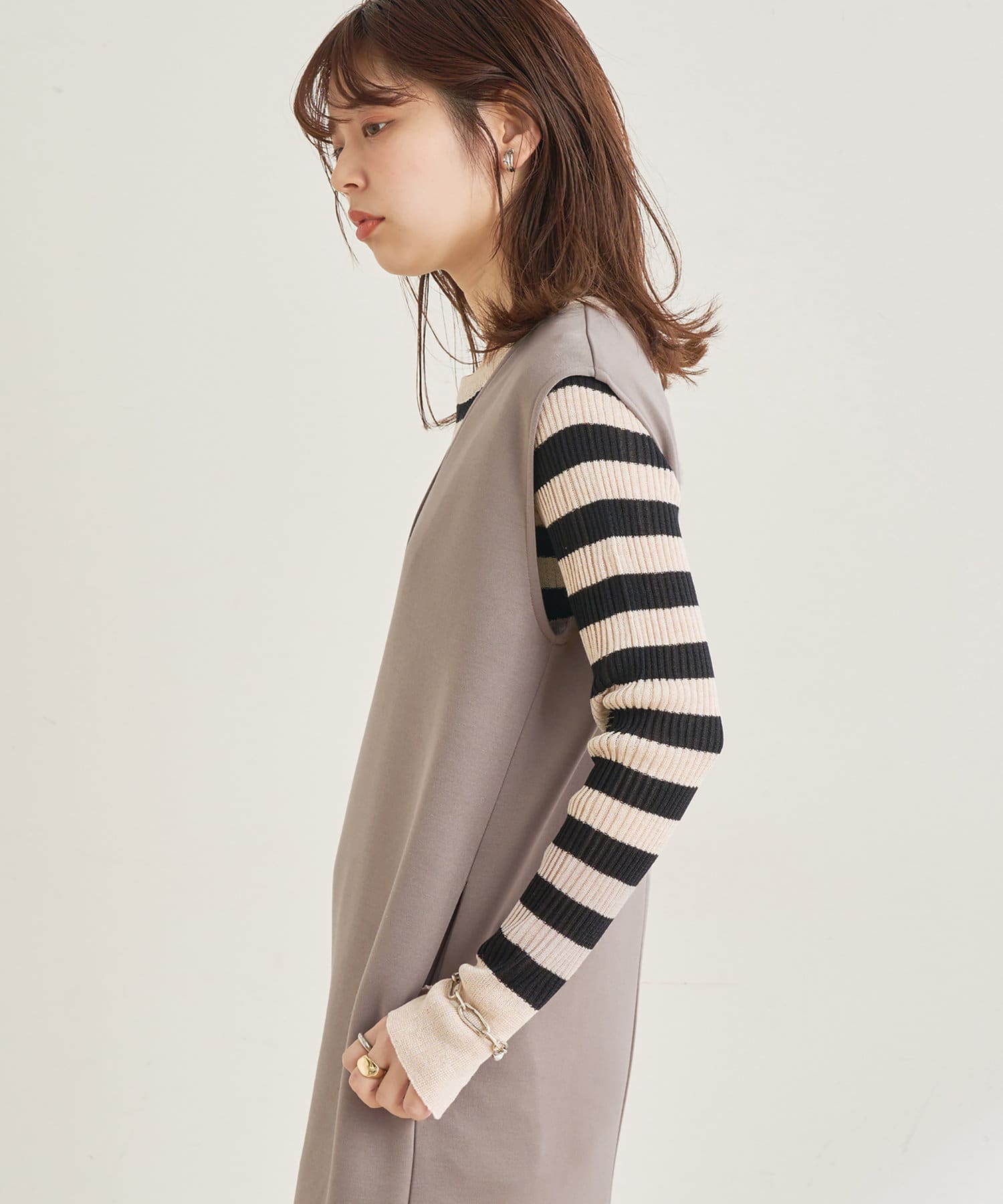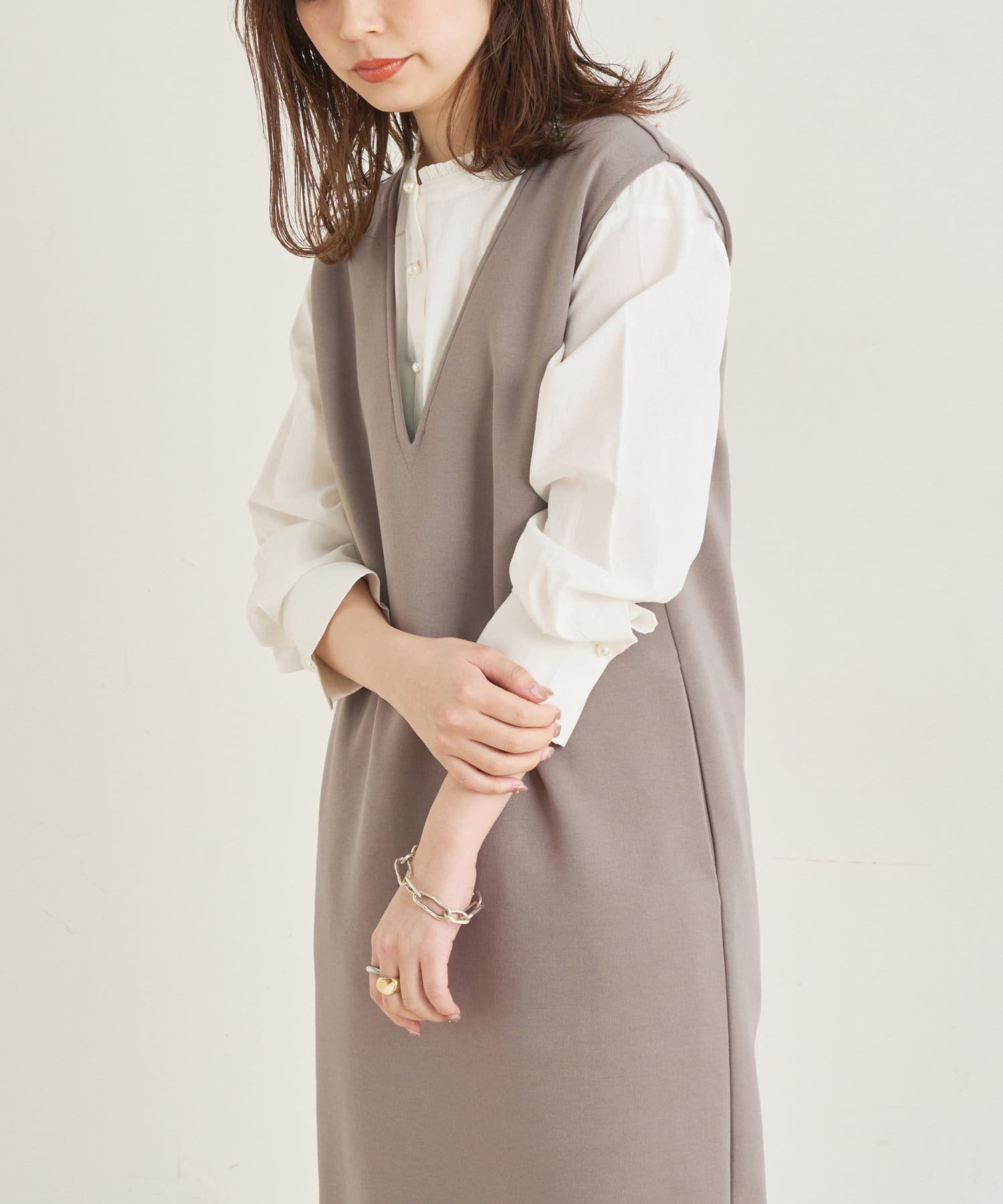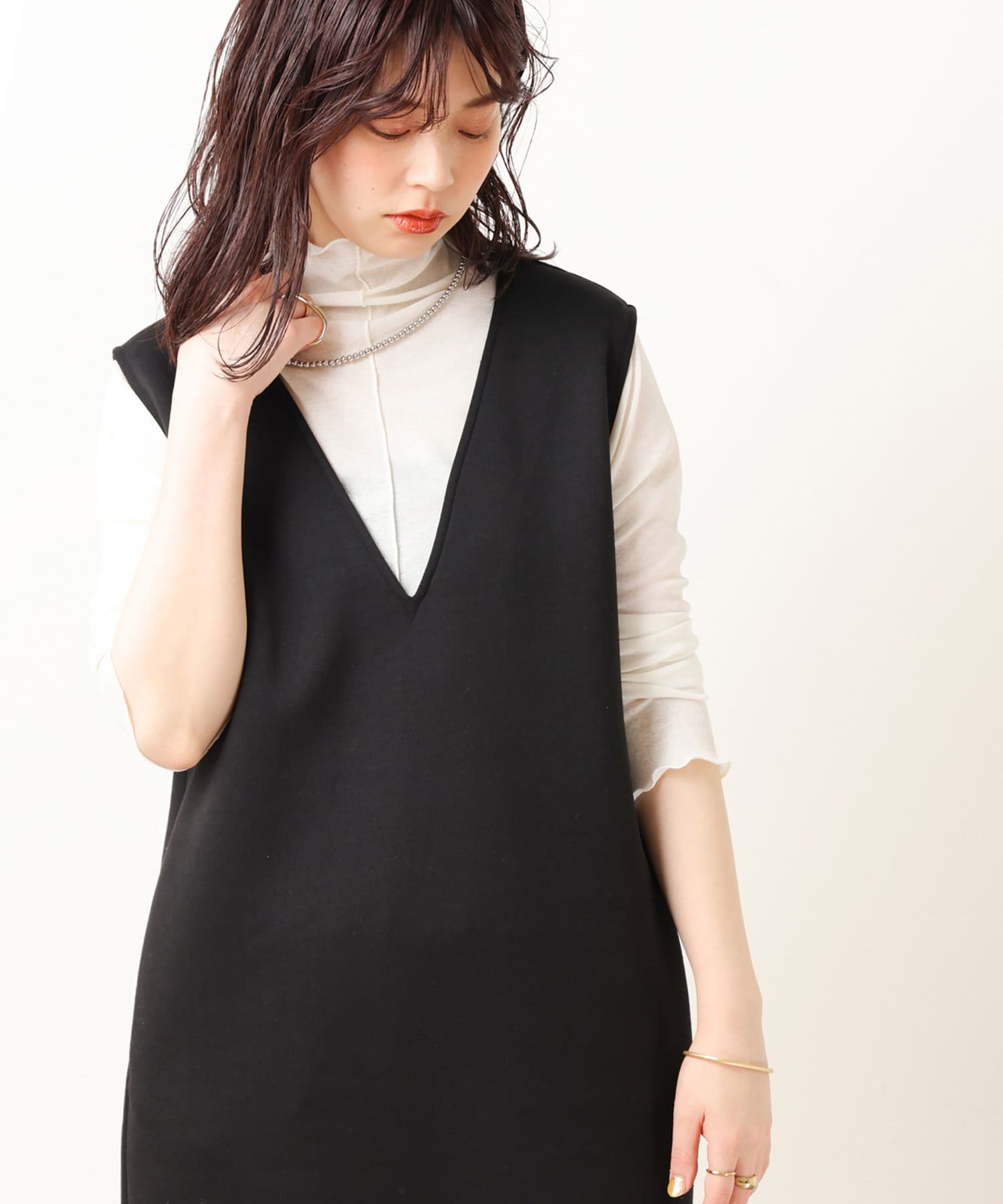 お好みのインナー合わせで、雰囲気を違いを楽しんで頂けます。