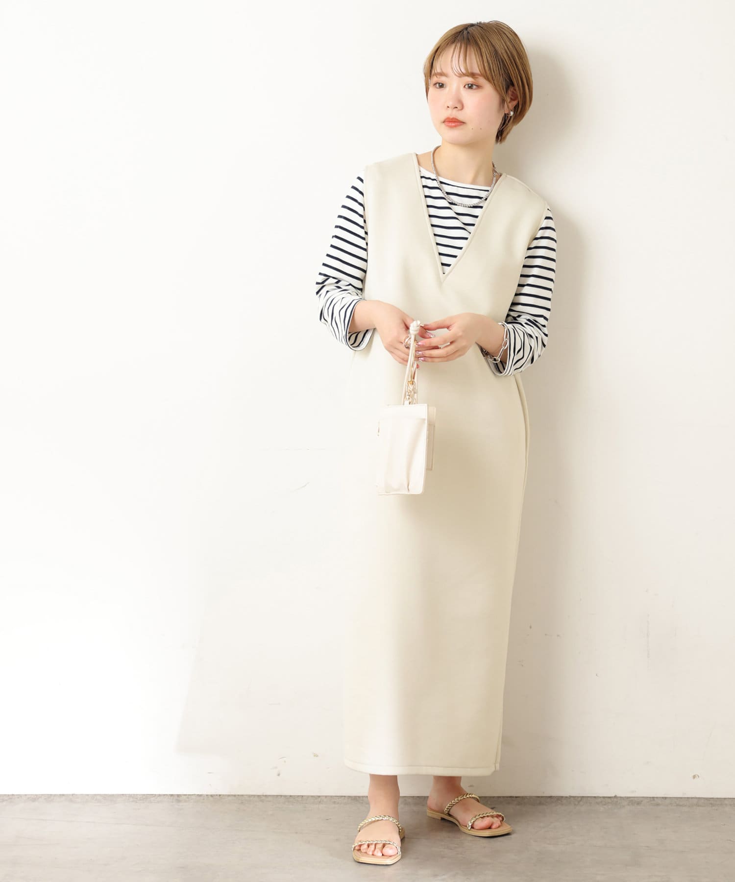 • natural couture(ナチュラルクチュール) トレンド顔 カットポンチVネックワンピース