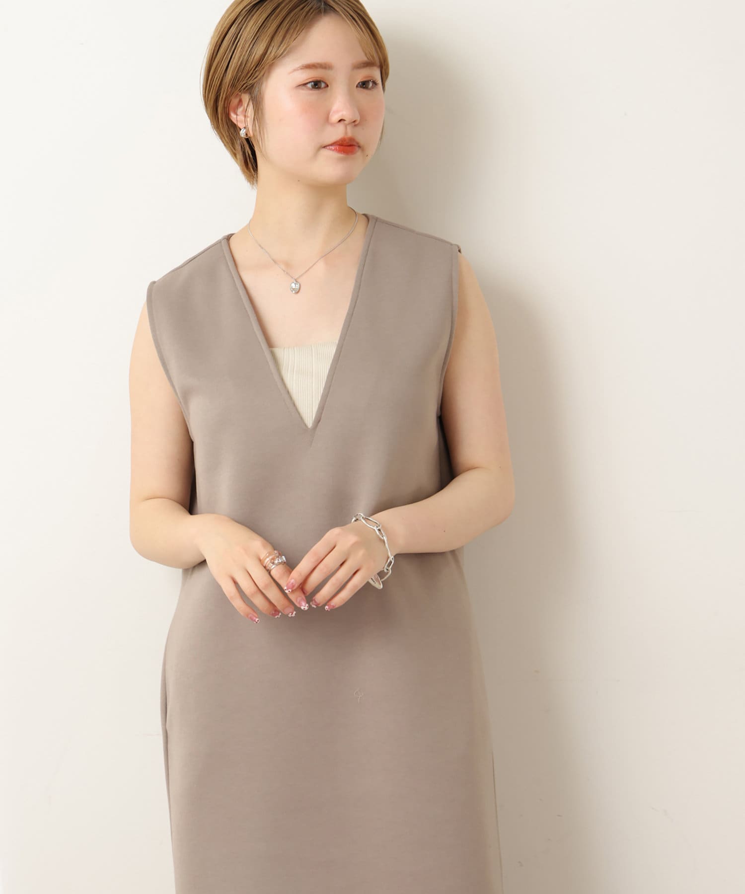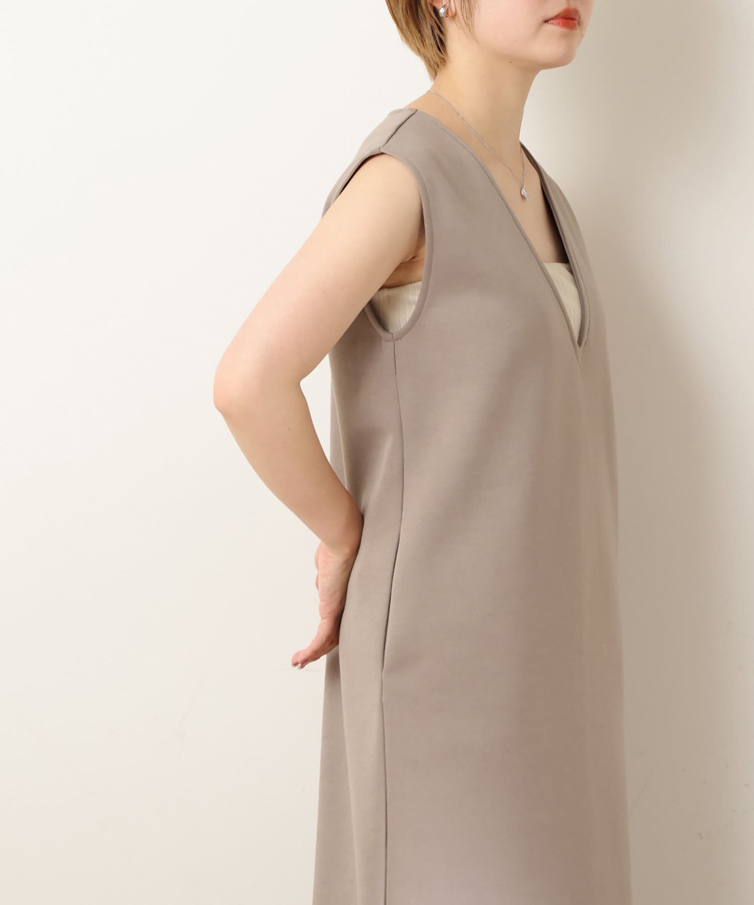 natural couture(ナチュラルクチュール) トレンド顔 カットポンチVネックワンピース