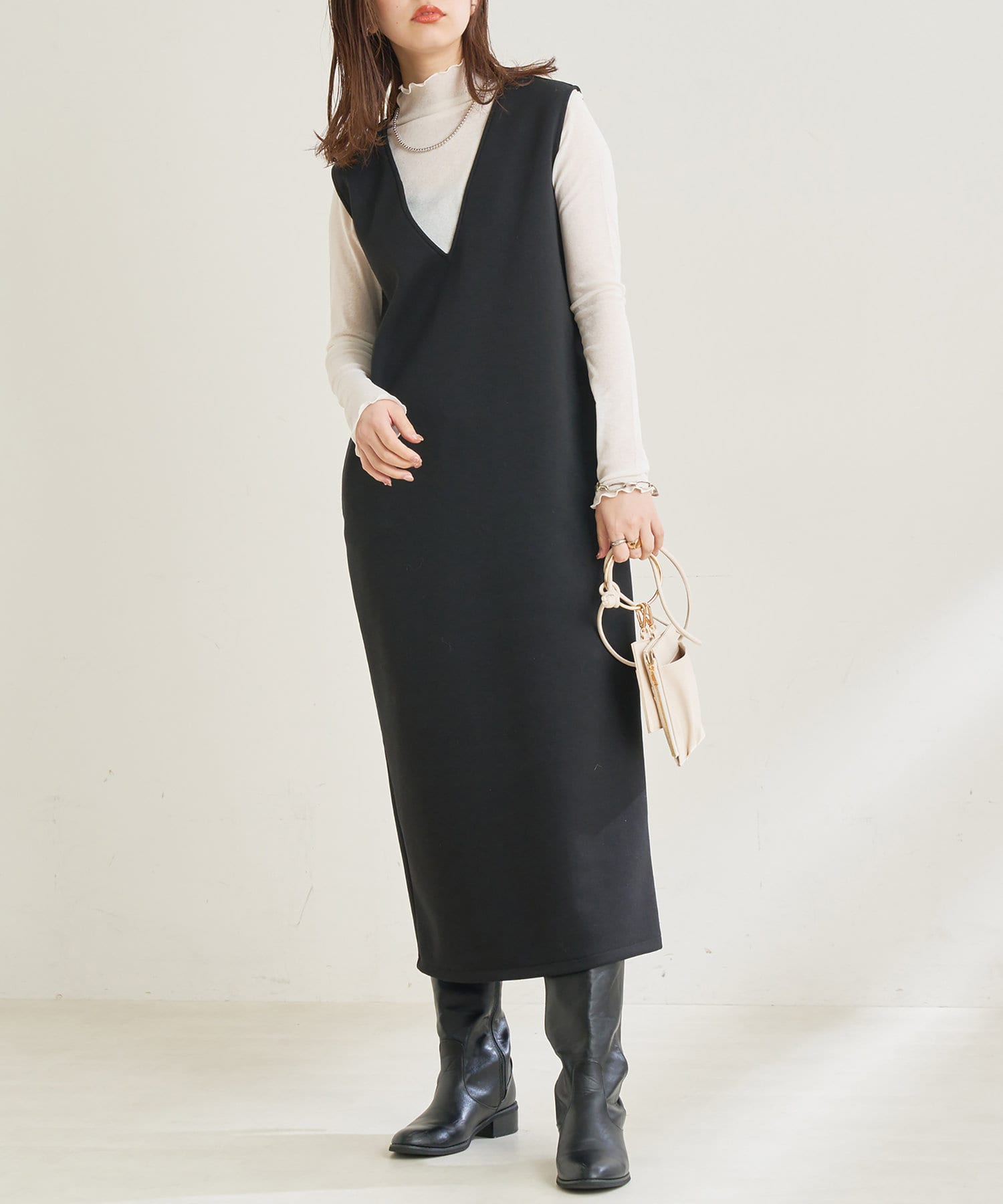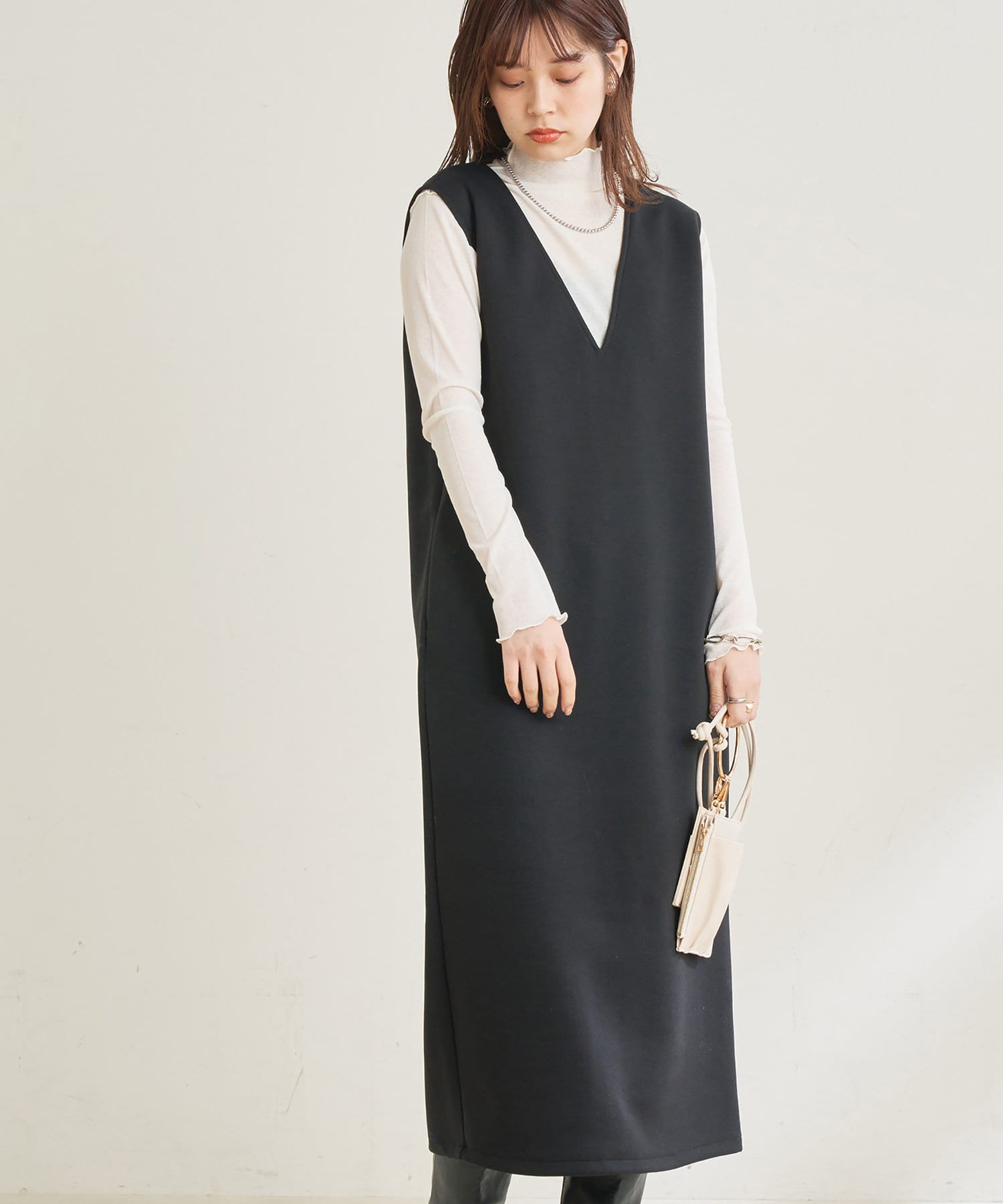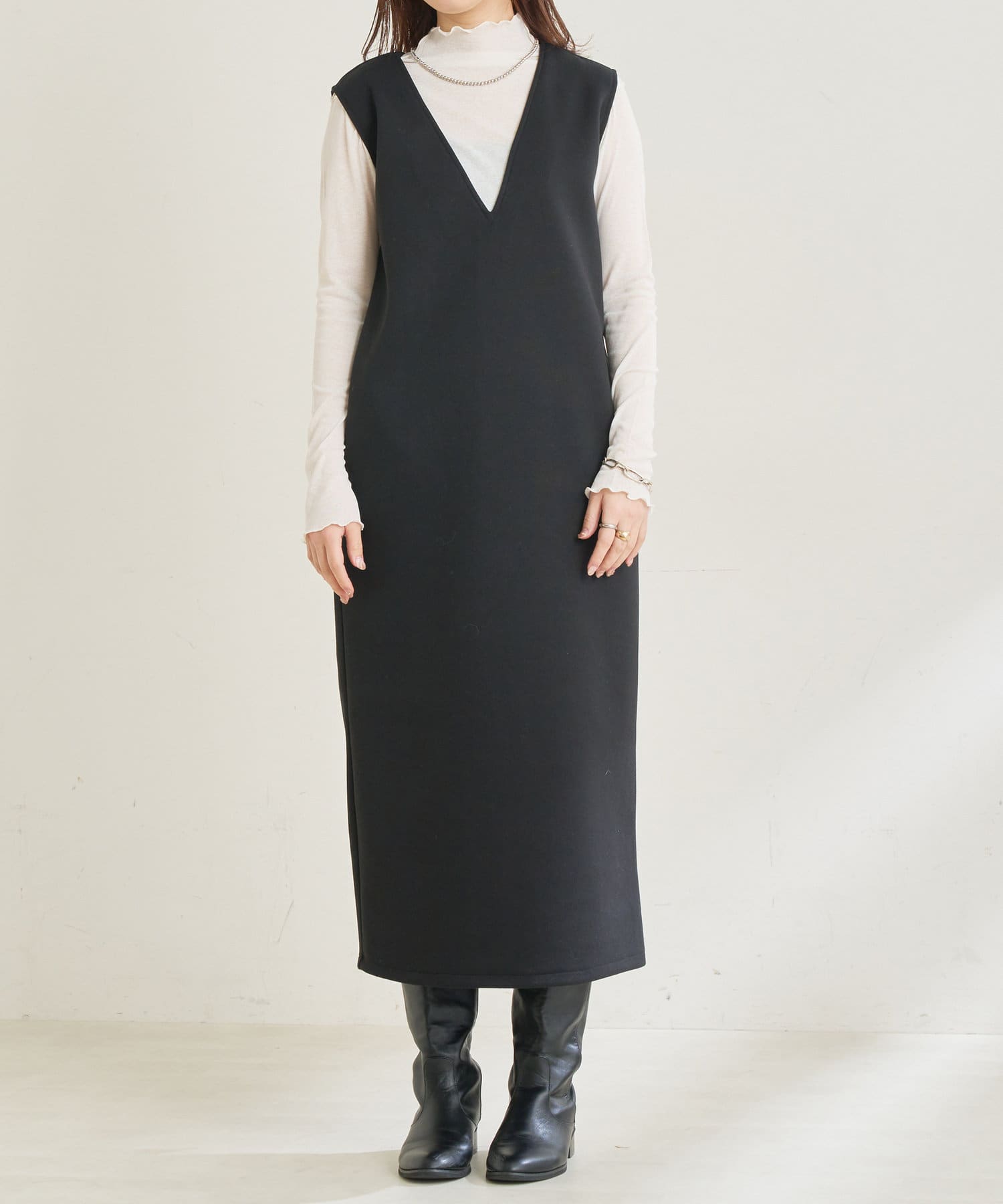 カットポンチVネックワンピース