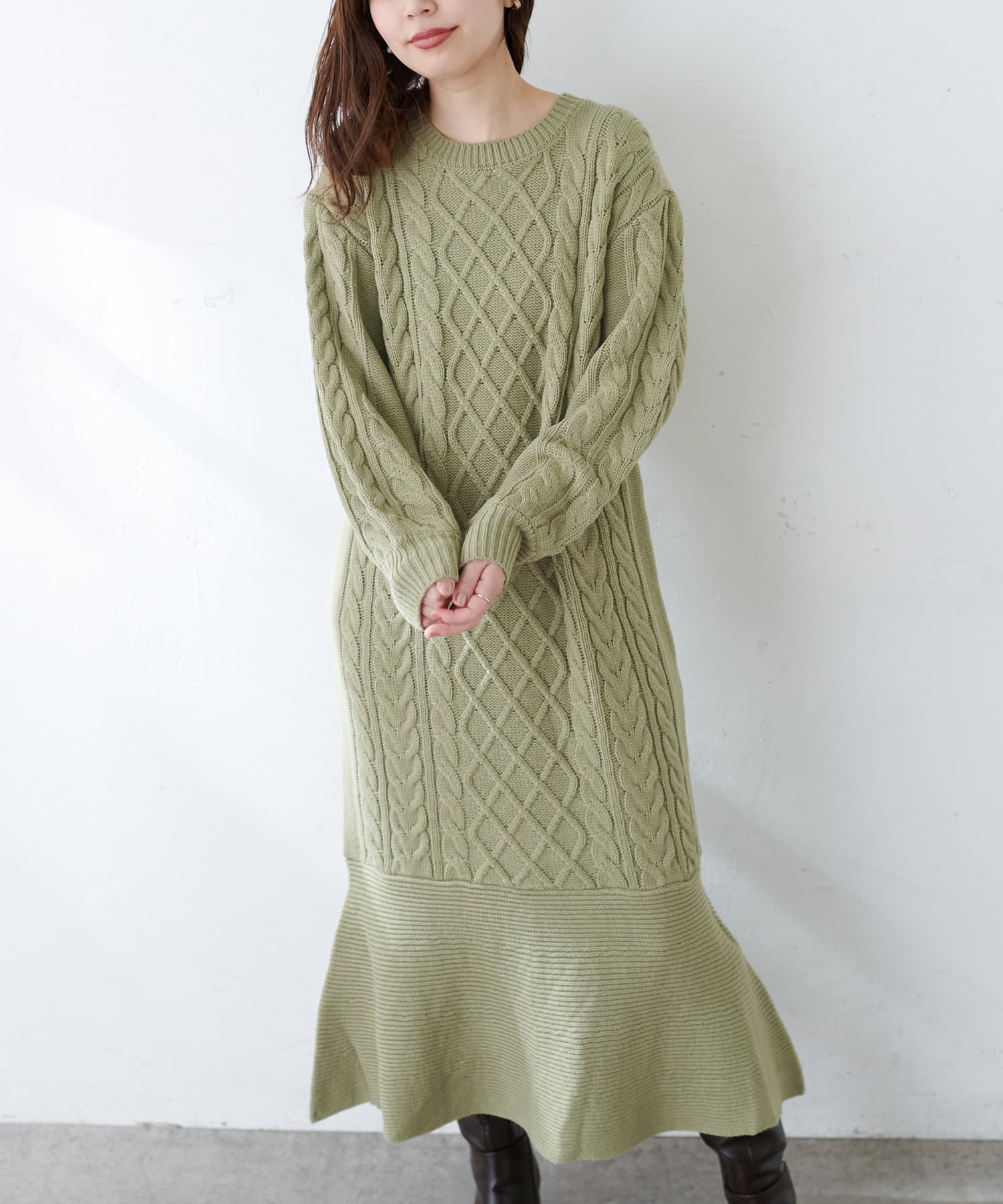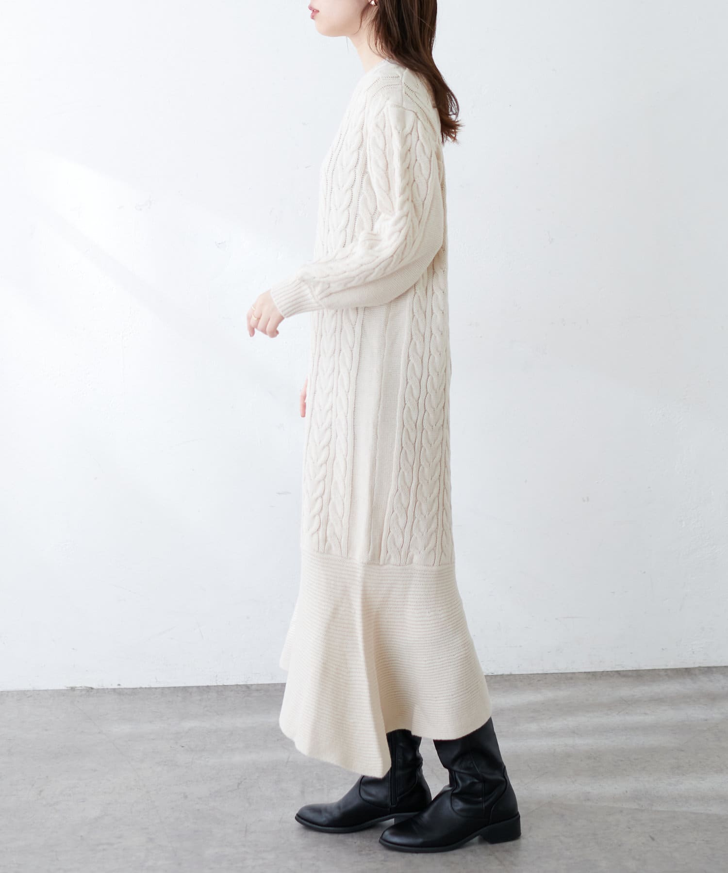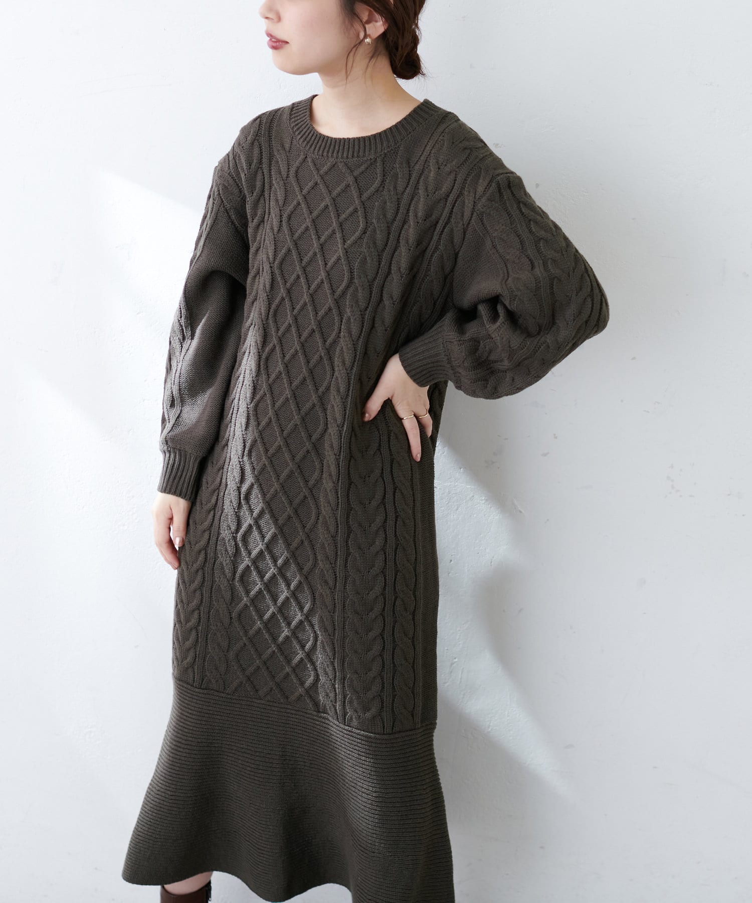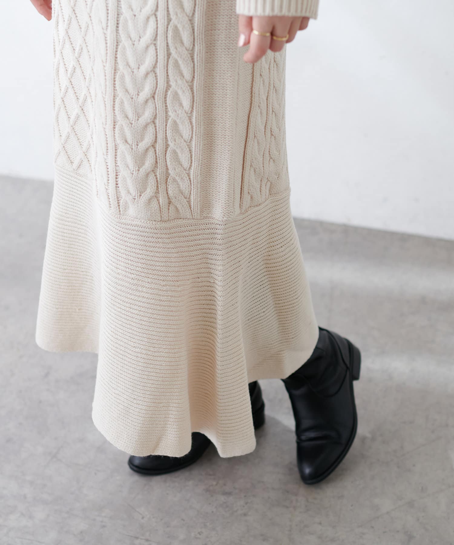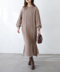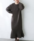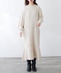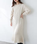 裾フレアケーブルニットワンピース