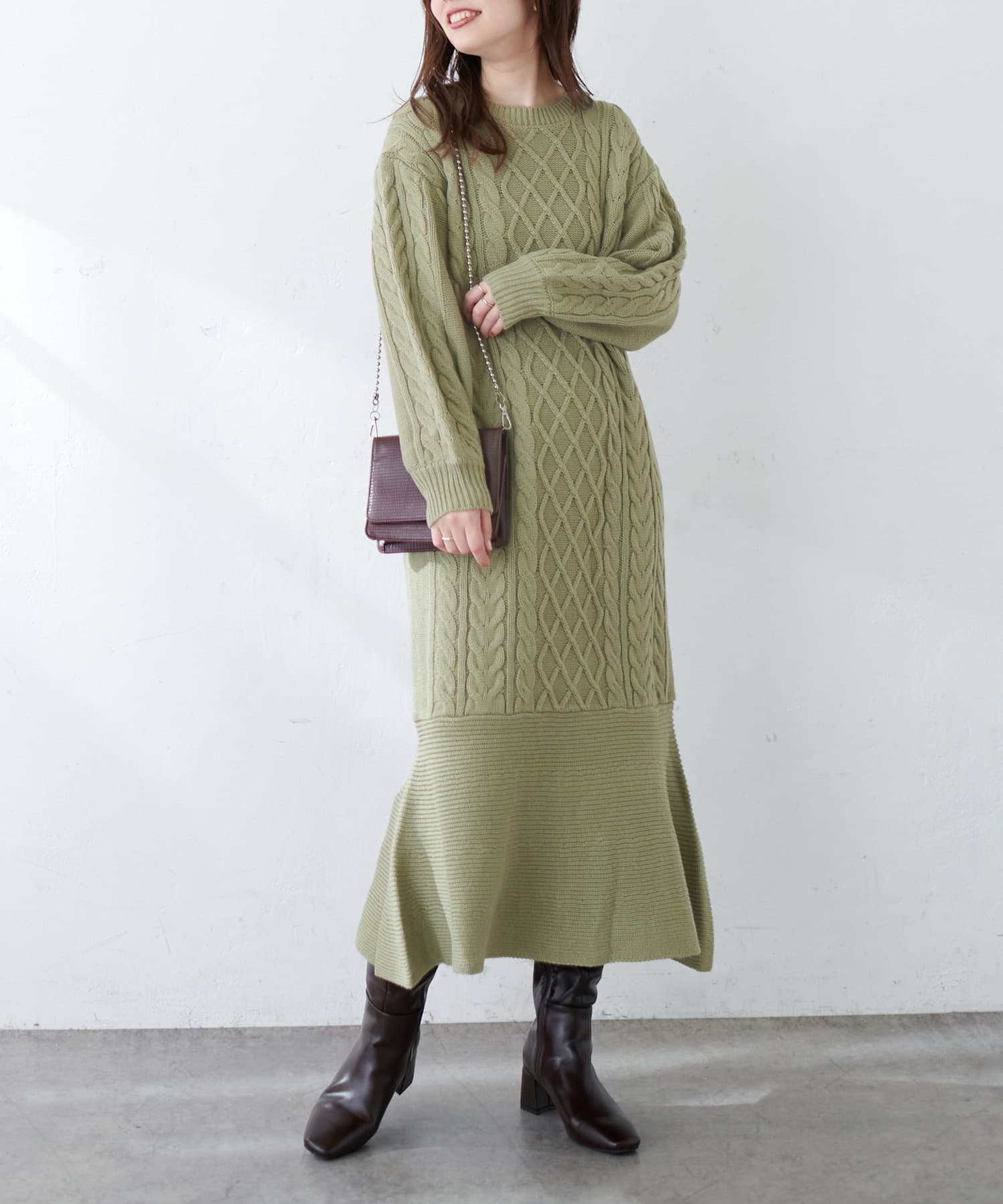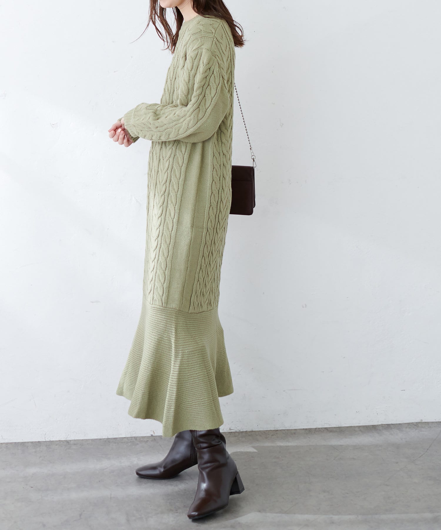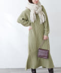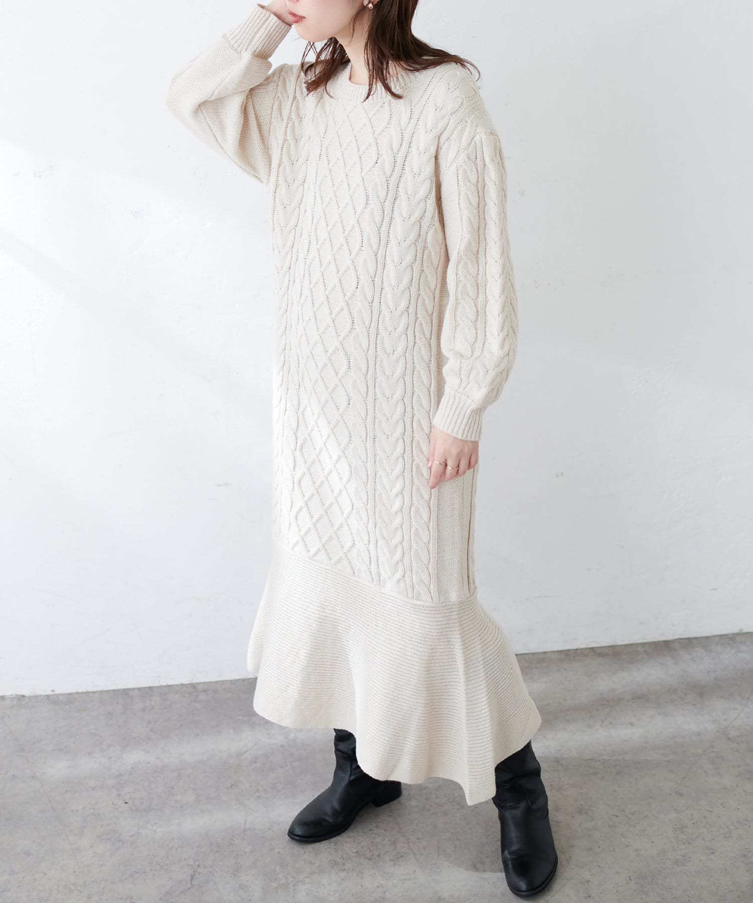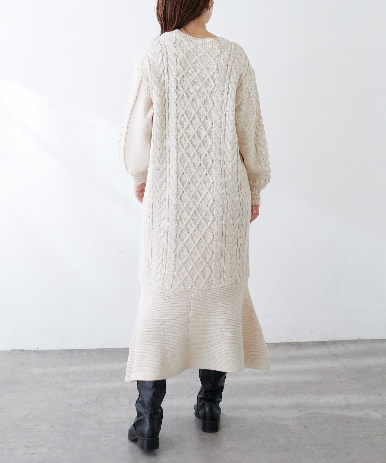 裾フレアケーブルニットワンピース