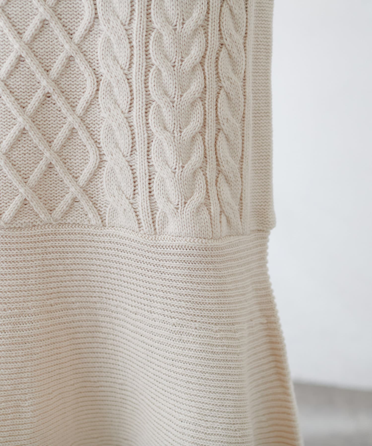 裾フレアケーブルニット