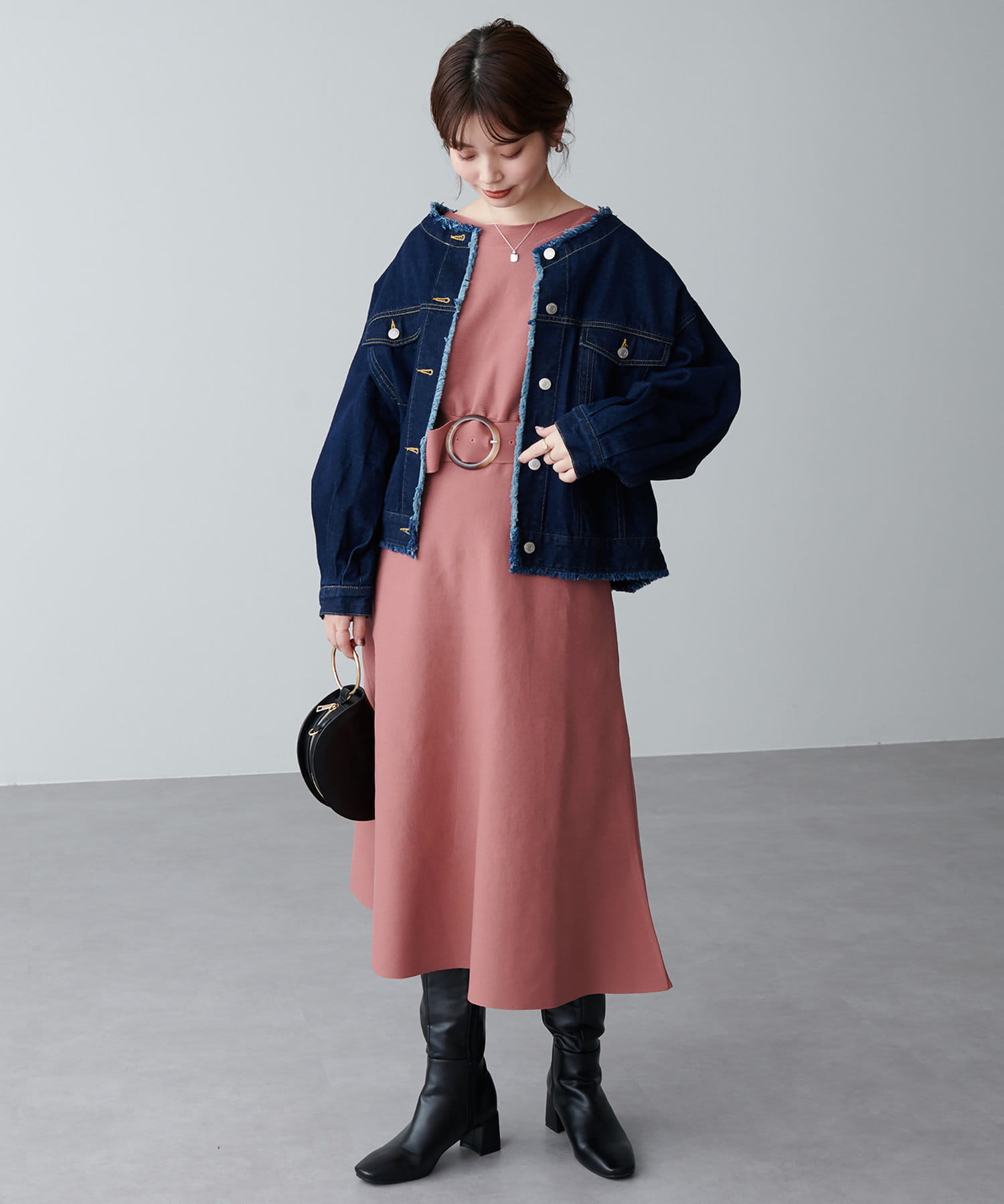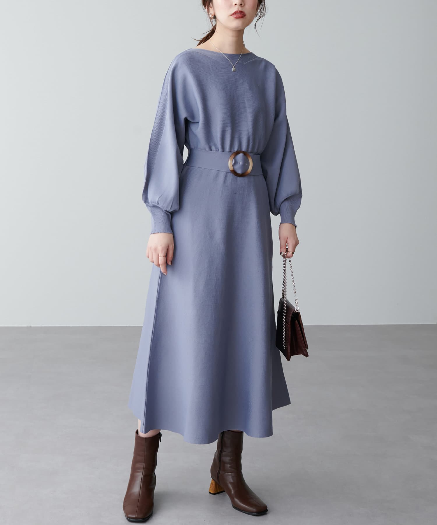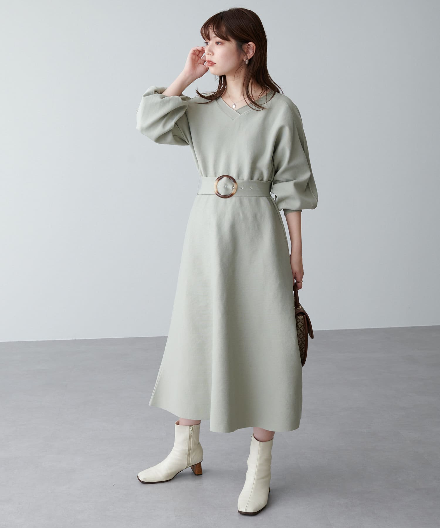 サラッとしていて毛玉になりにくい生地で、ずっとキレイめで着られそうなワンピースです。