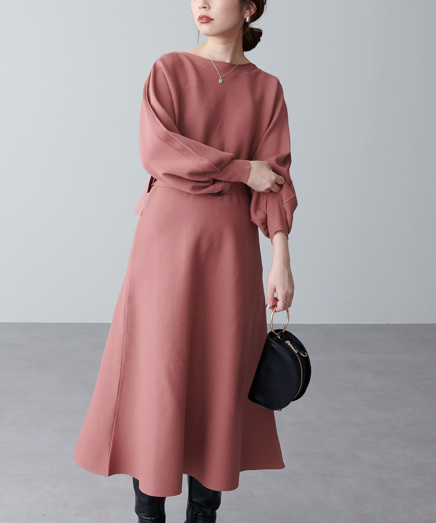 重くなりがちなニットワンピースを最大限軽く仕上げました。