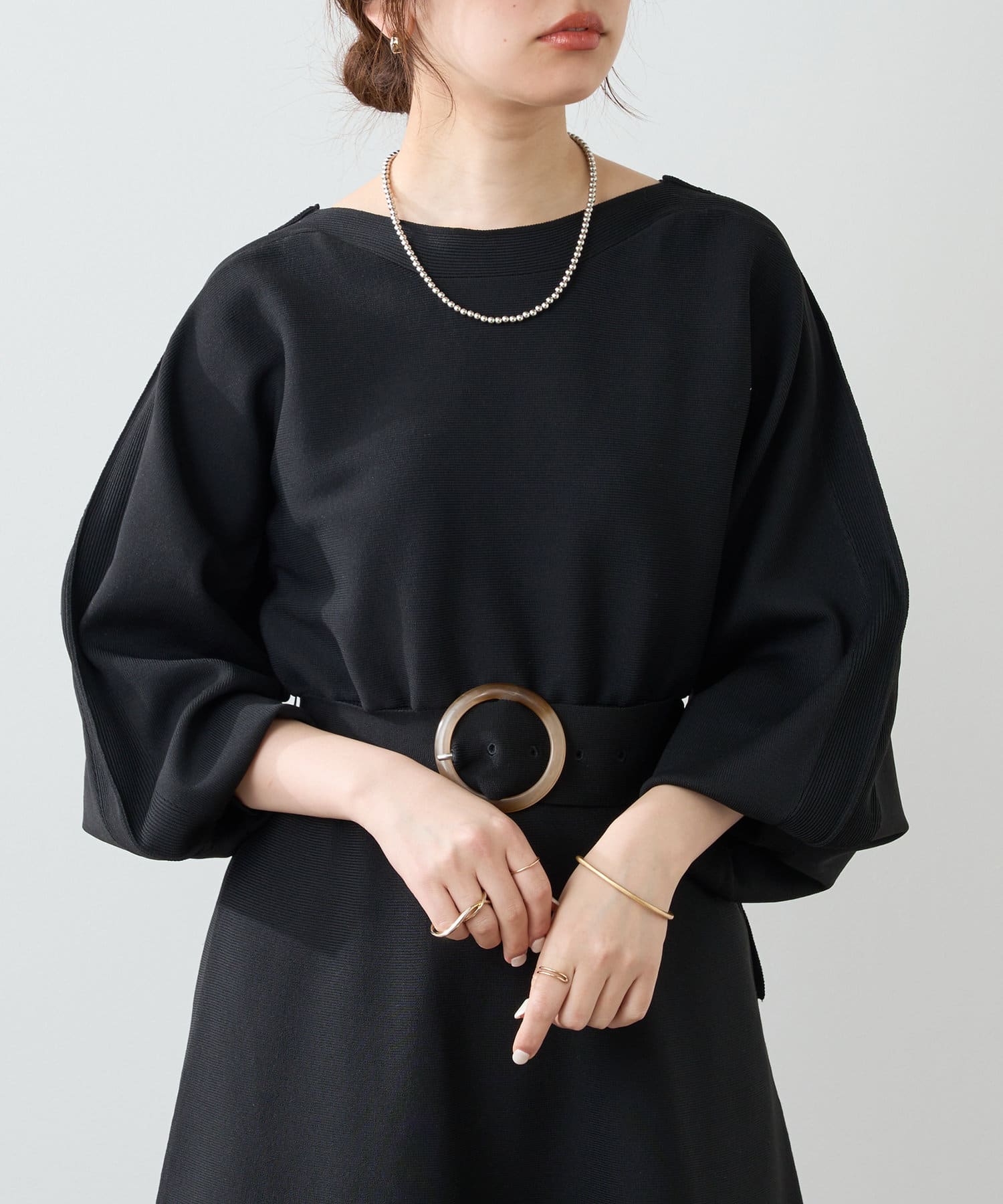 ヘルシーな肌見せとボリュームのある袖で女性らしさをプラスした1枚。