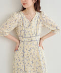 WEB限定カラー有り/女性らしさが際立つ1着 配色パイピングお上品ワンピース
