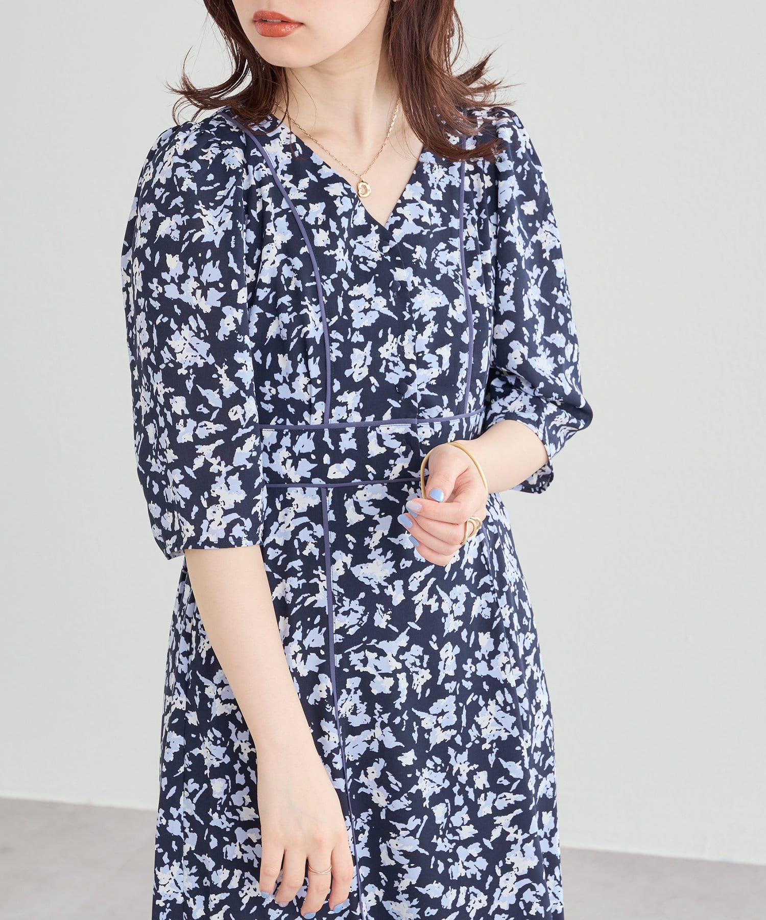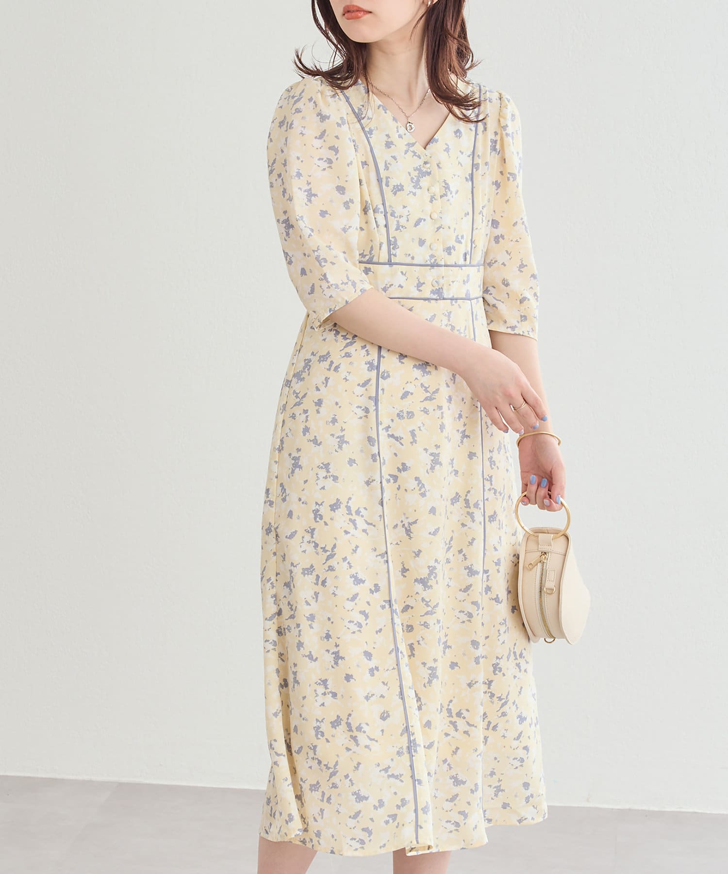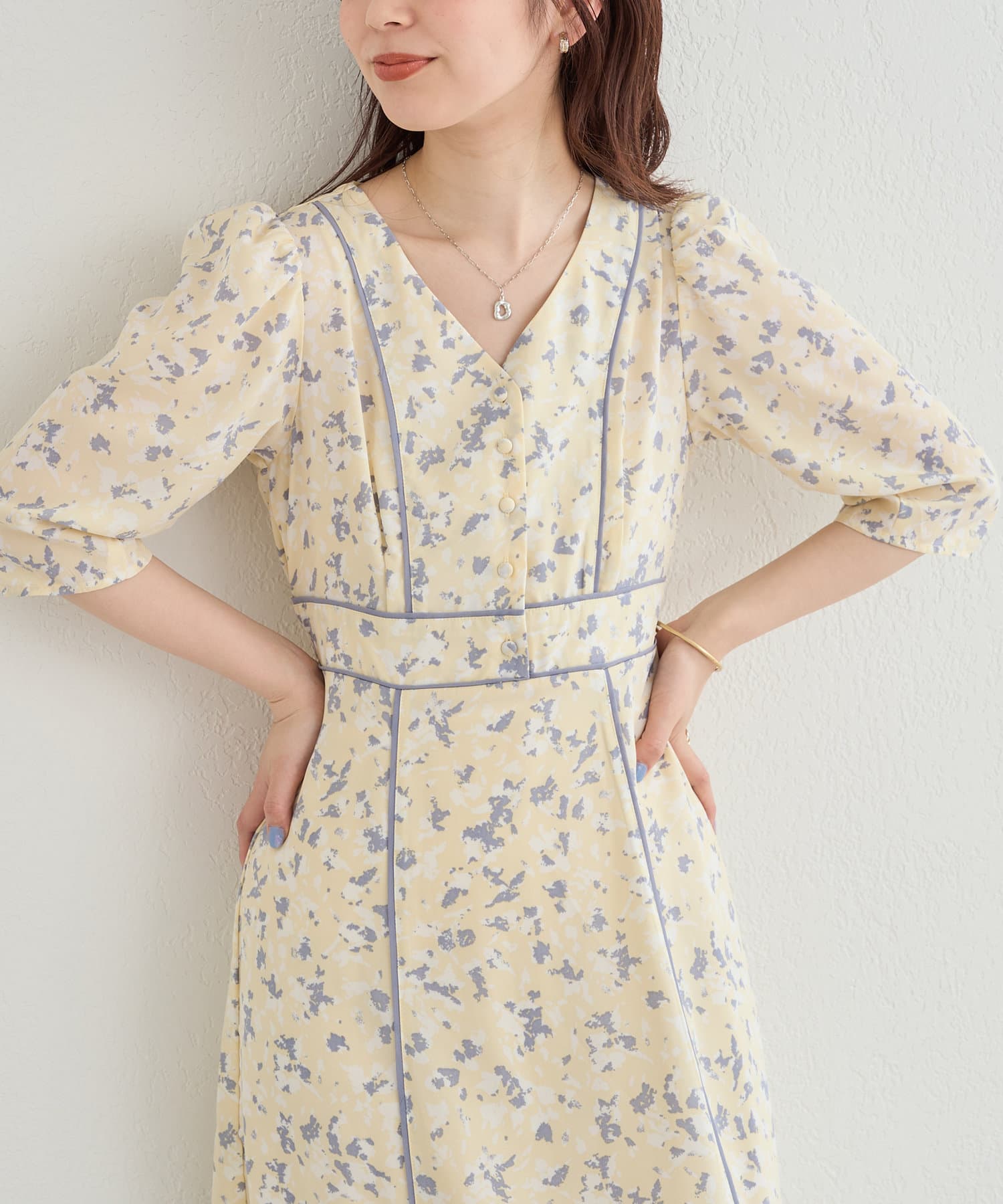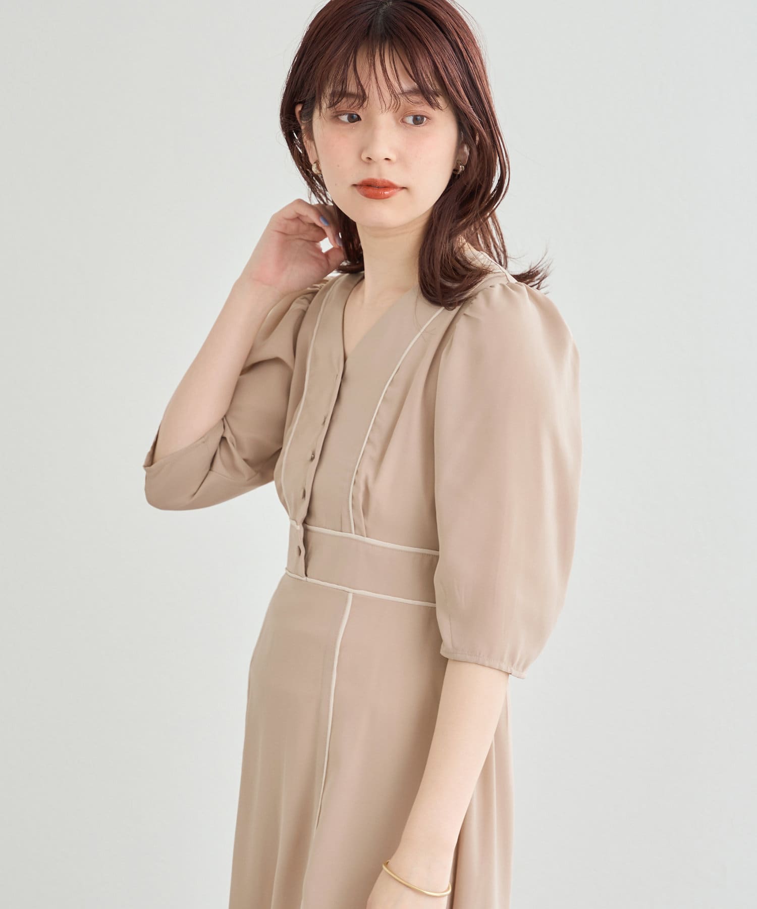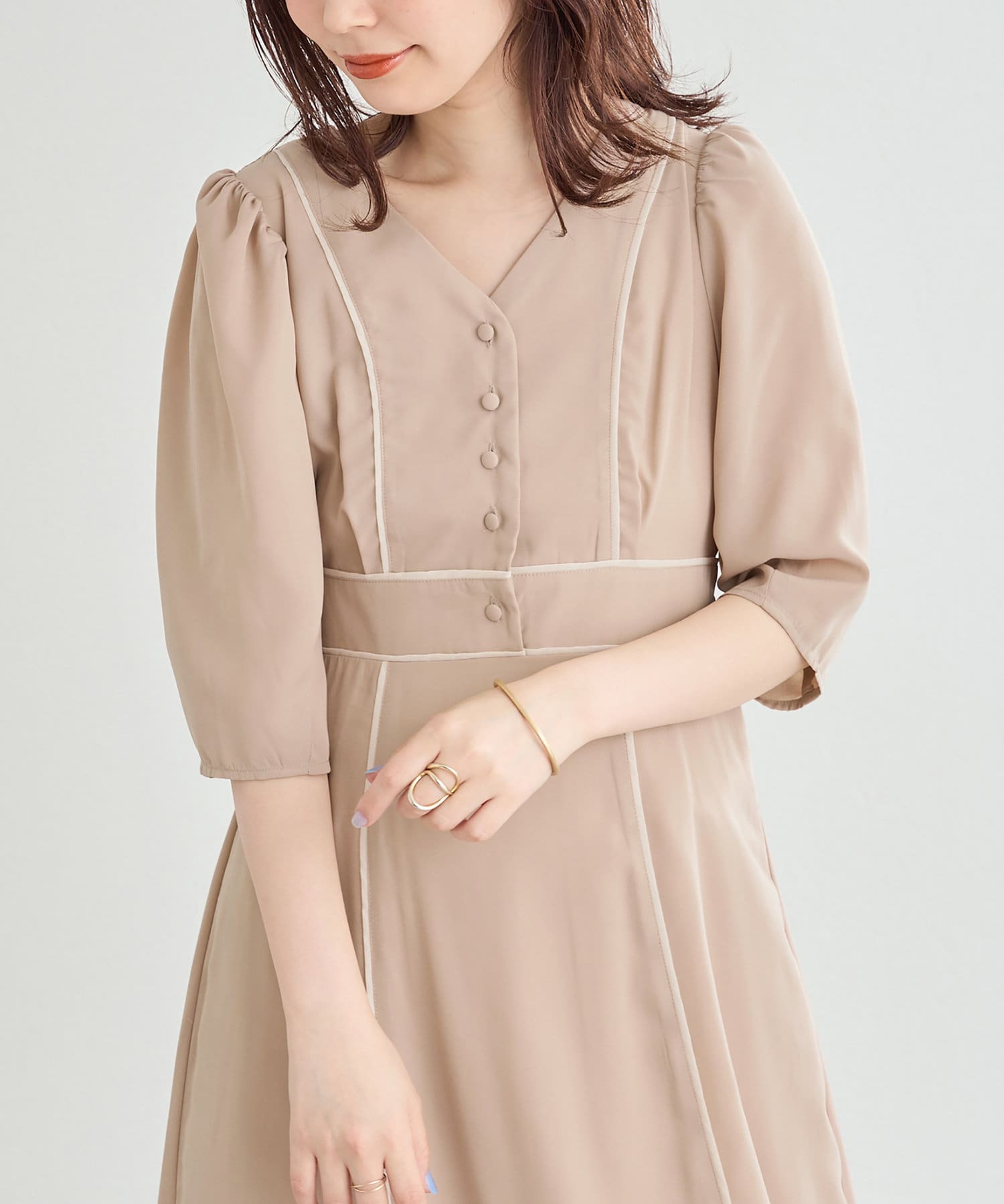 パイピングデザインが目を惹く無地の2パターンで仕上げた今季注目のワンピース。