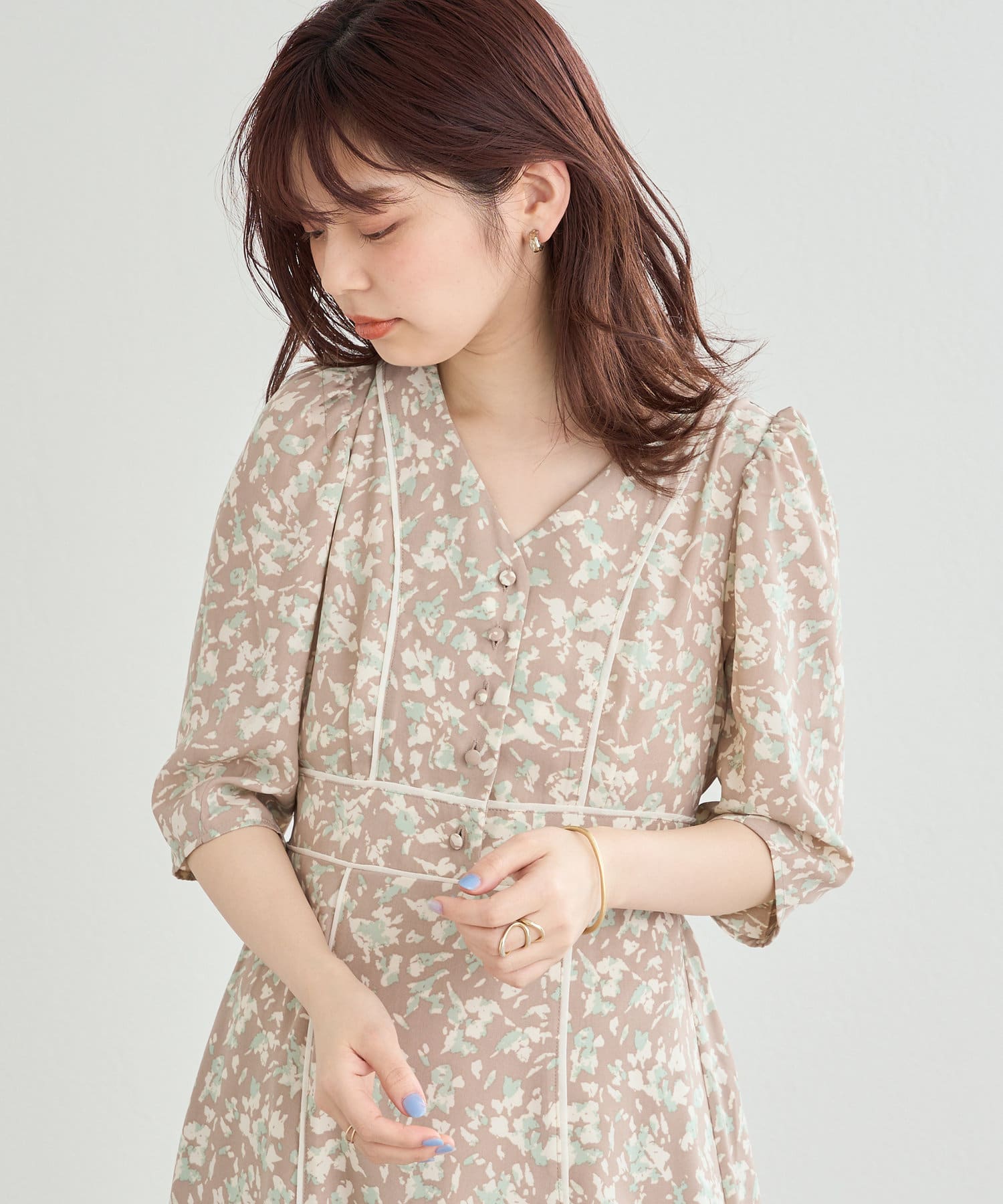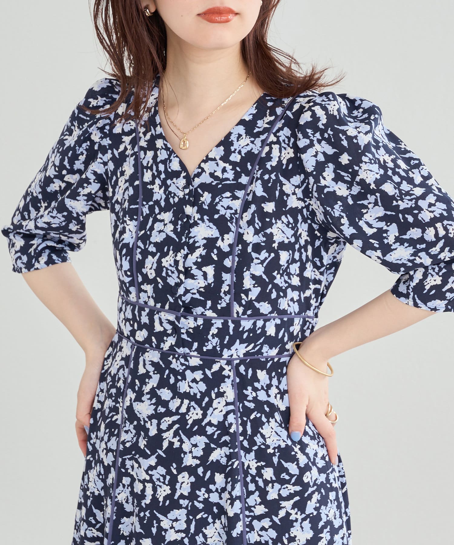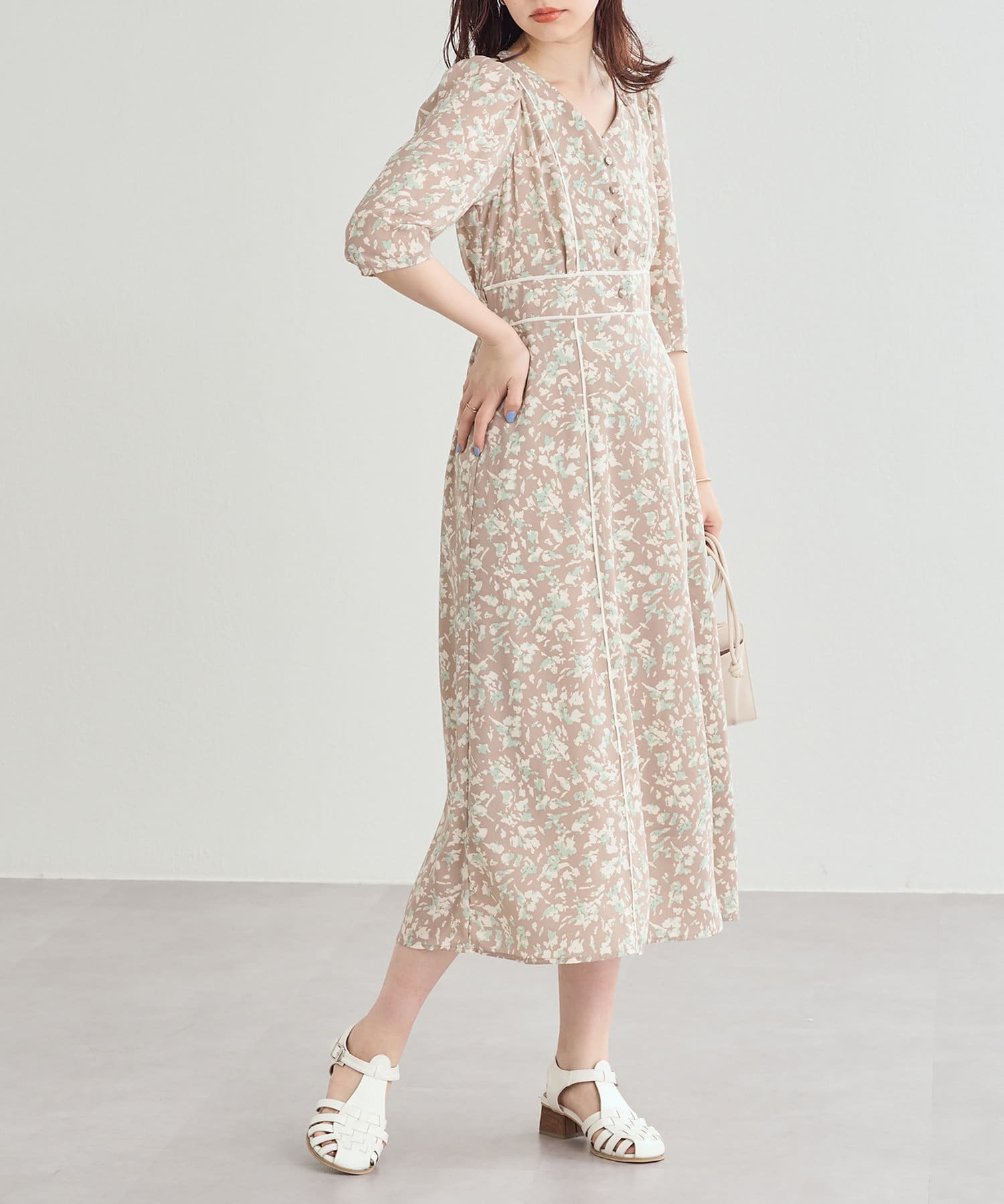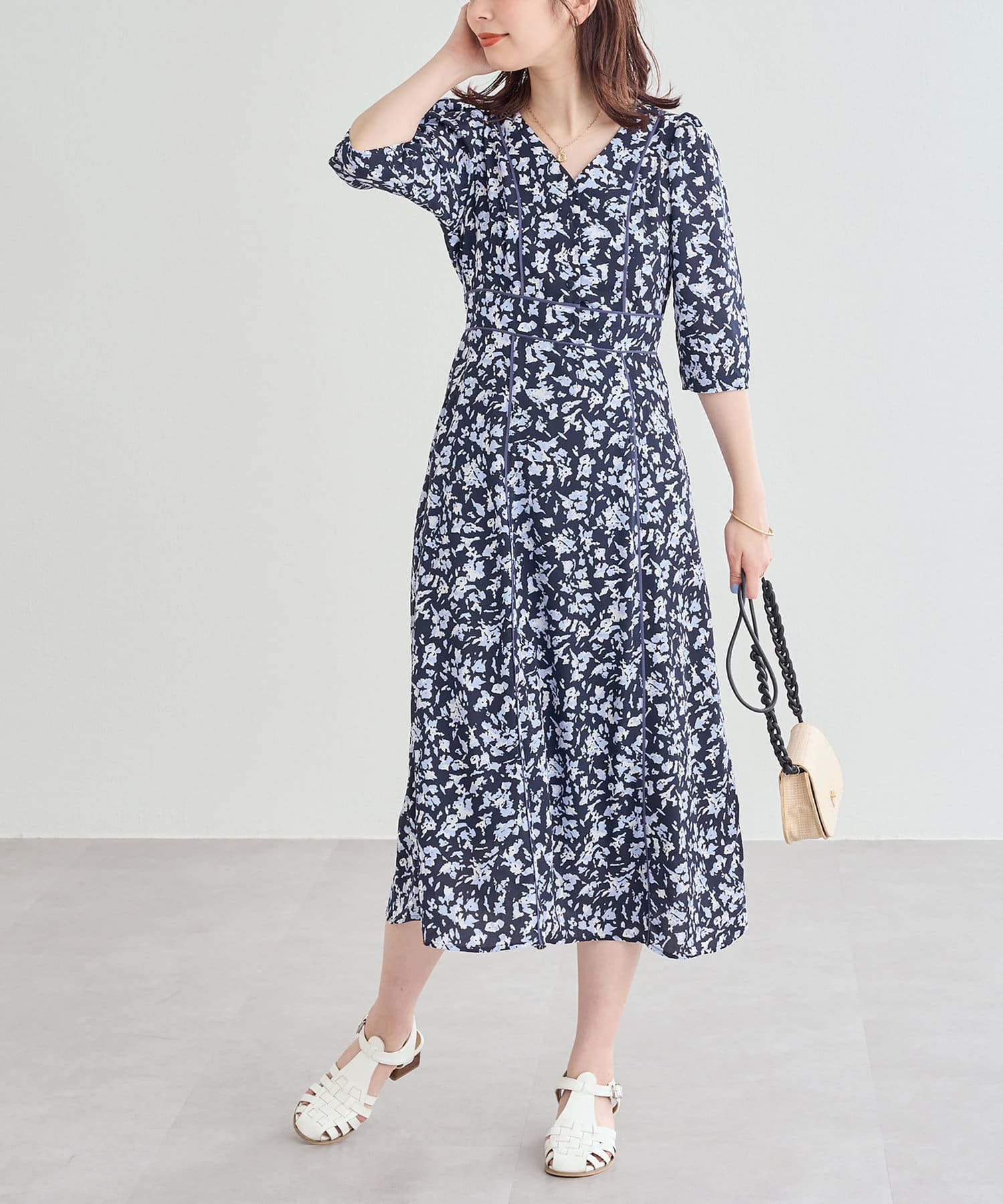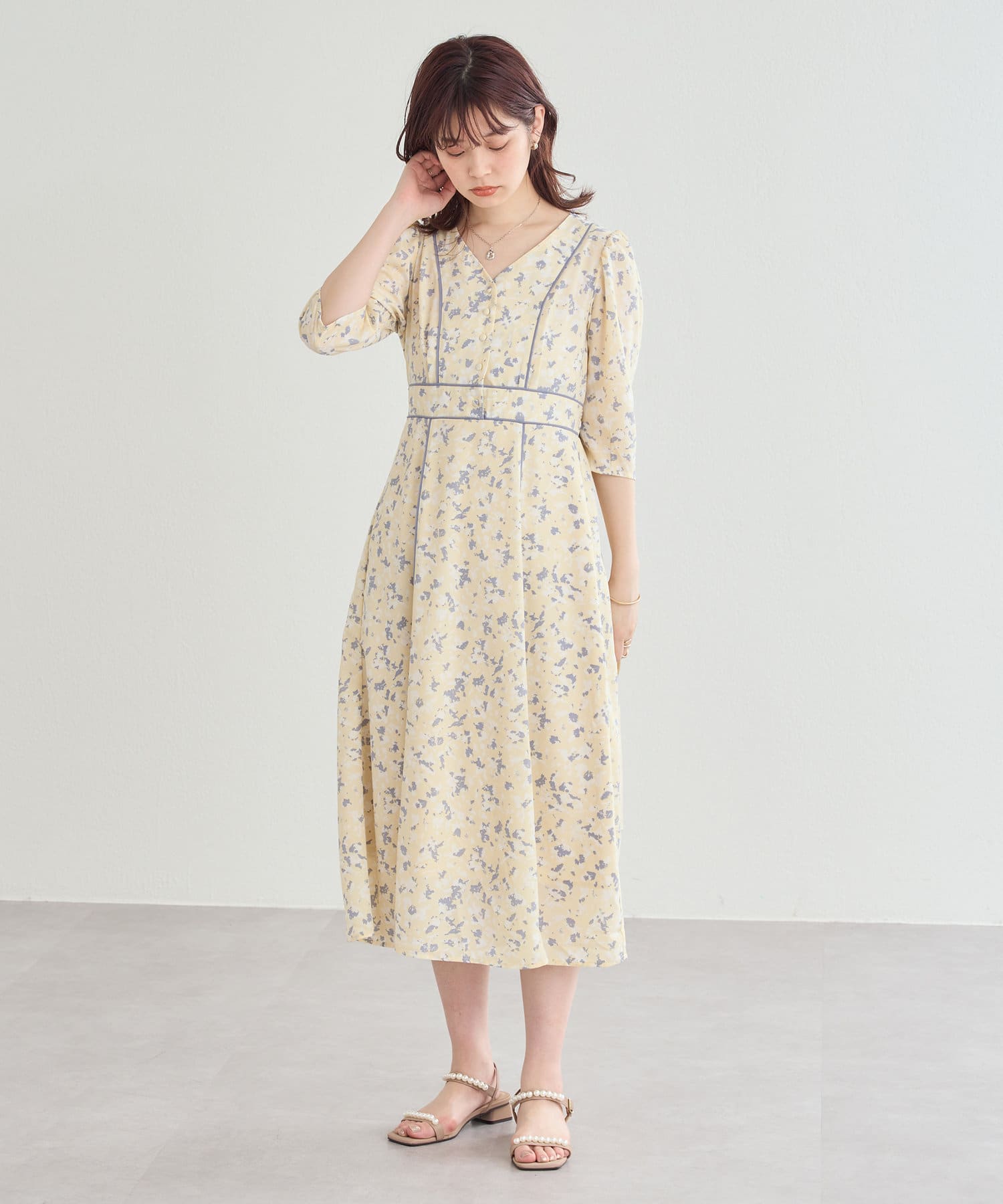パイピングデザインが目を惹く無地の2パターンで仕上げた今季注目のワンピース。