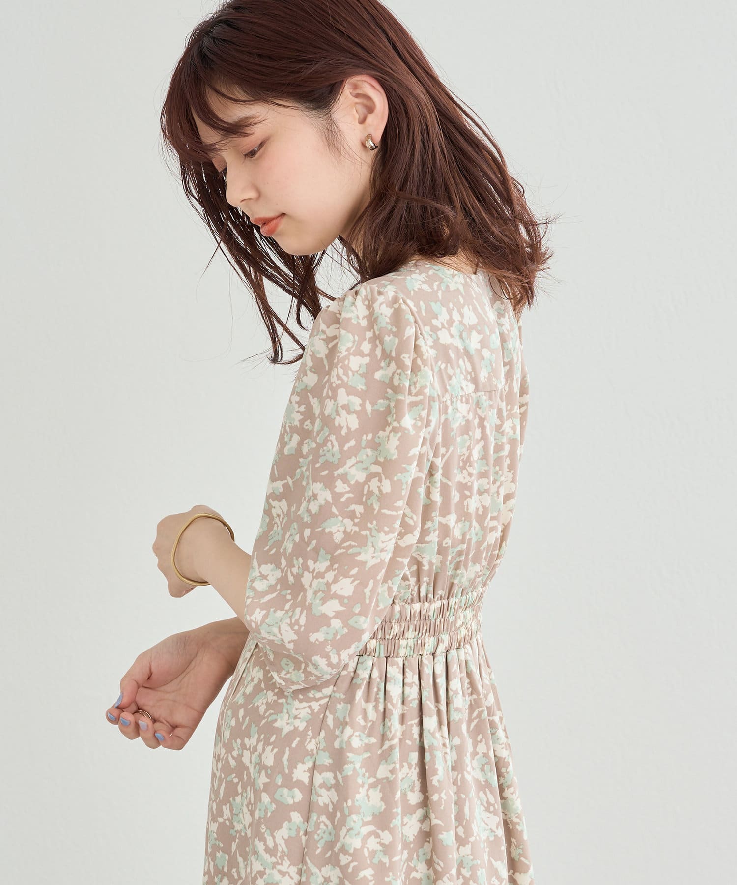 袖口に施したタック使いでゆとりのあるアームラインを実現し、女性らしいディテールが際立つ1着。