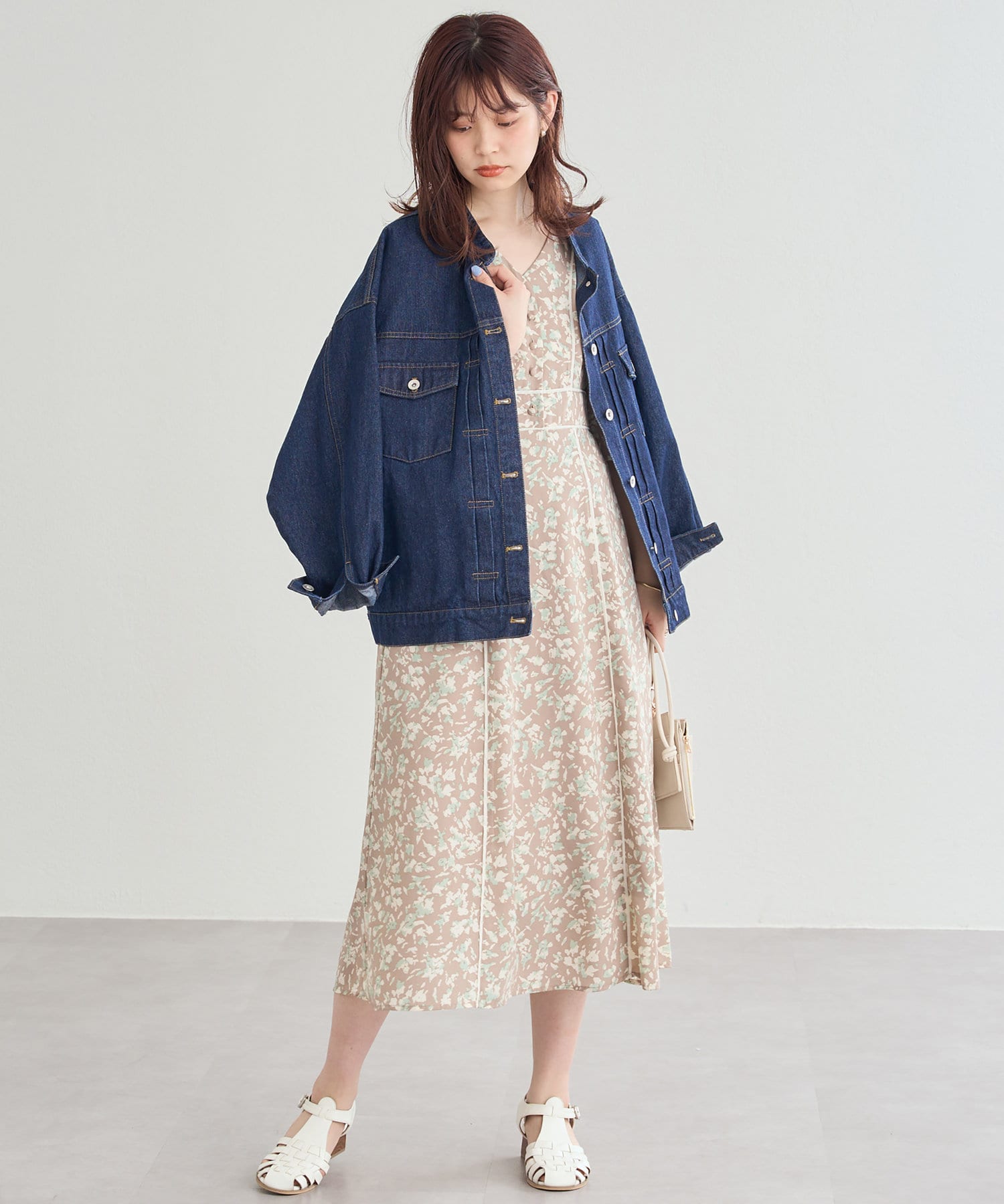シーンや気分に合わせてジャケットやカーデを羽織って頂くと、雰囲気の違いも楽しめます。