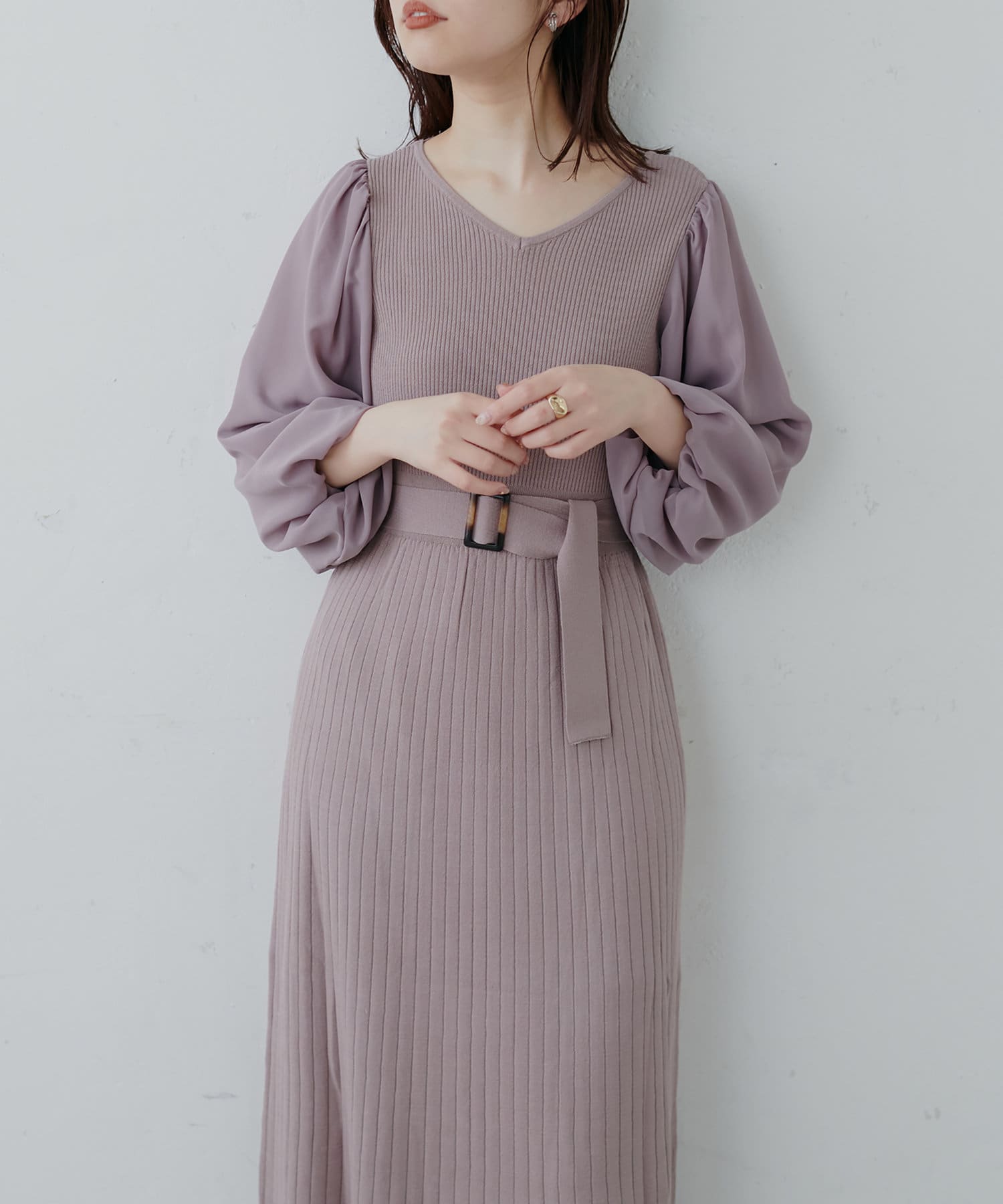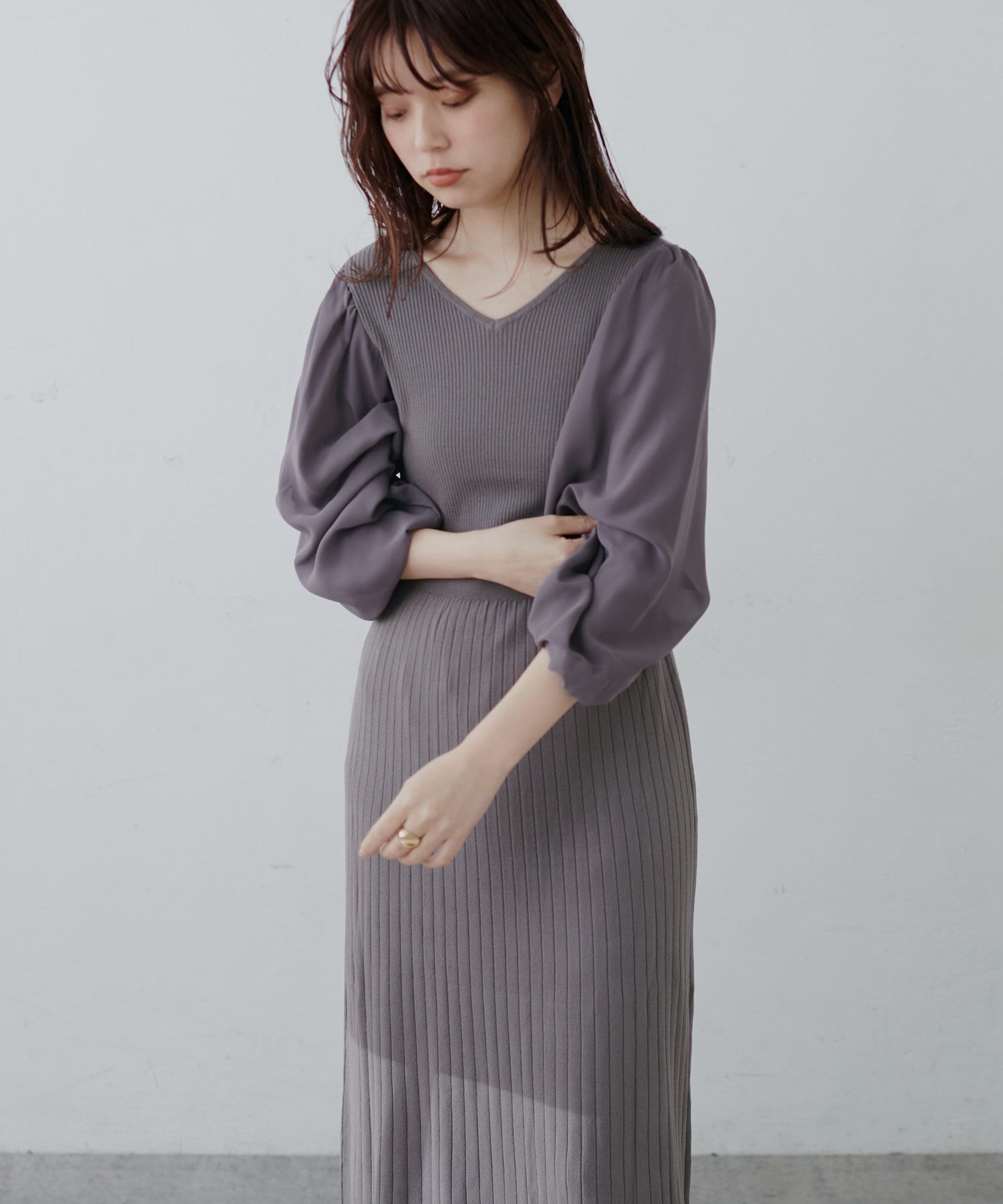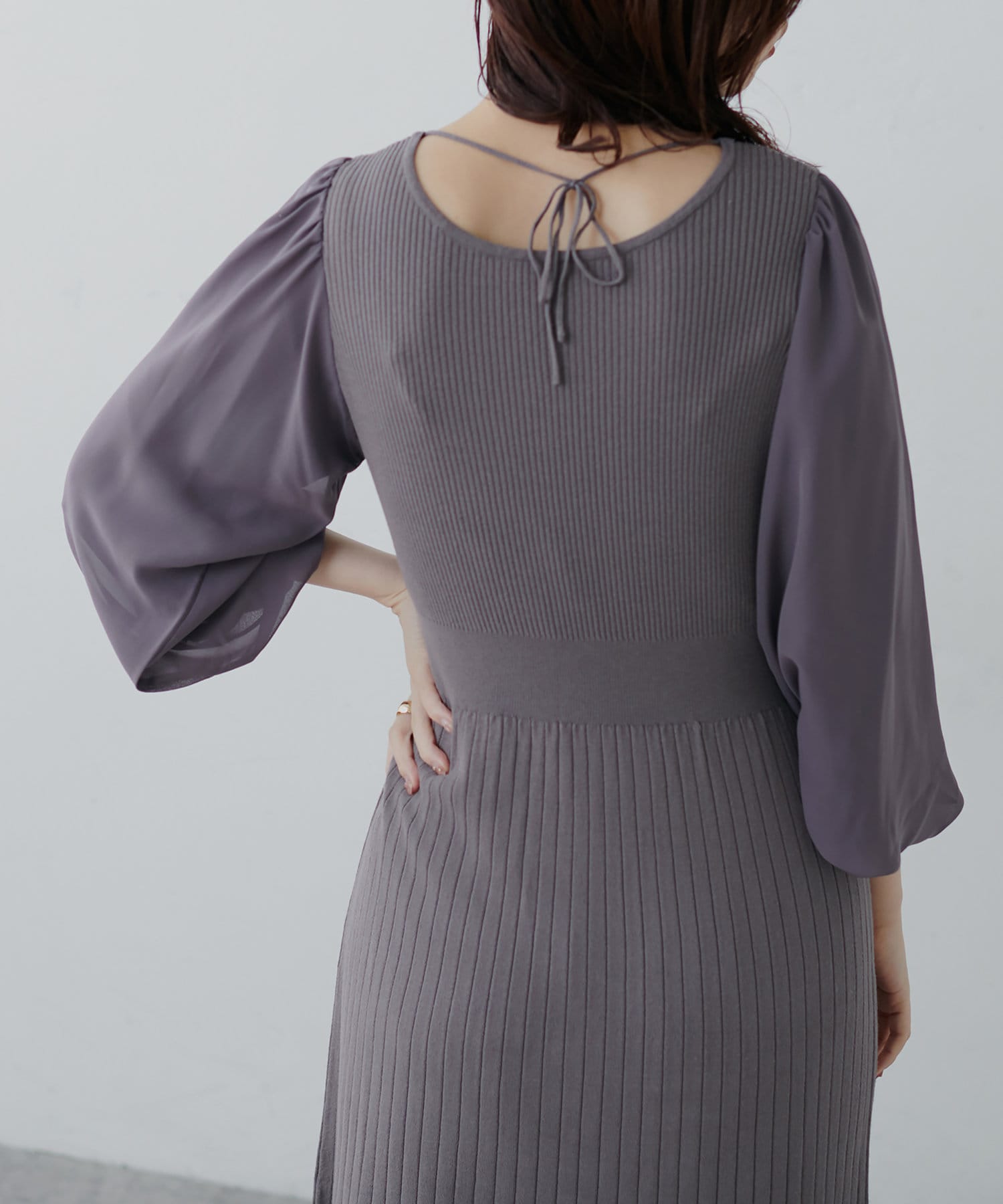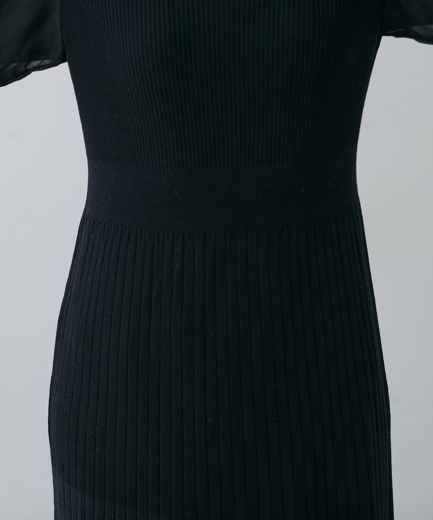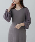 【WEB限定】ほんわりシアー!ボリュームシアー袖リブニットワンピース