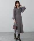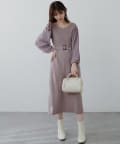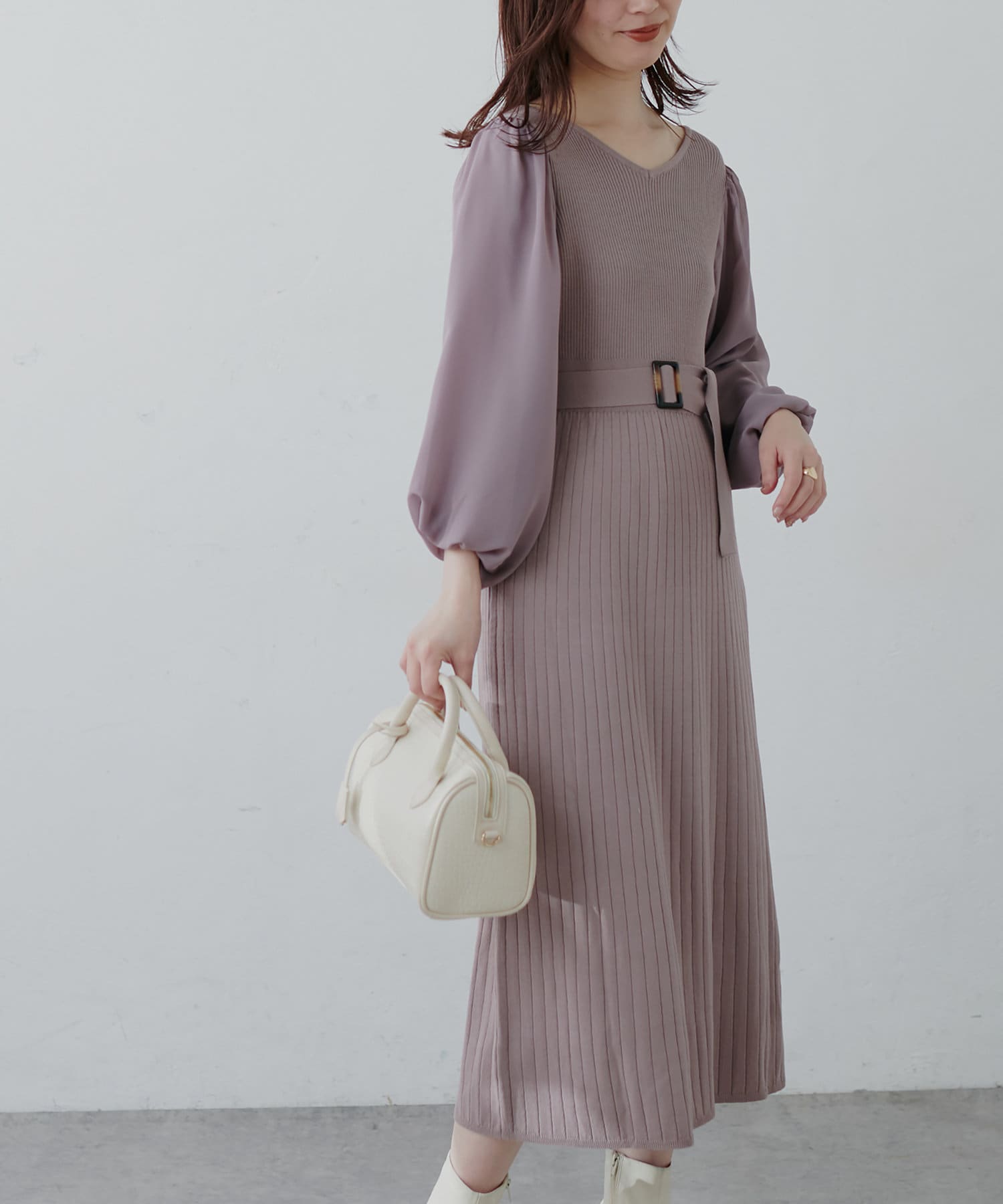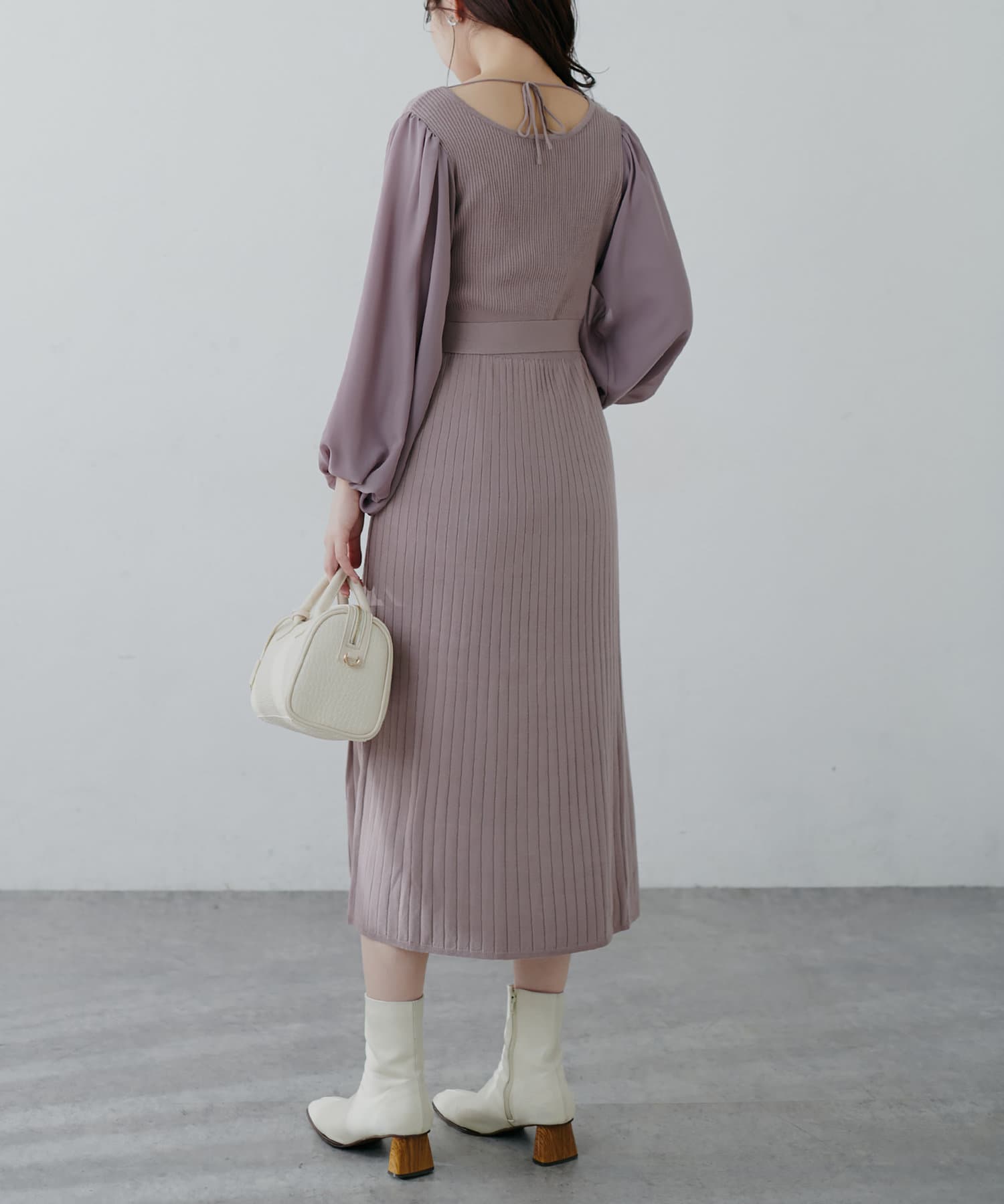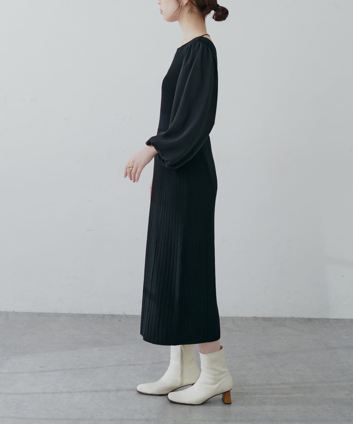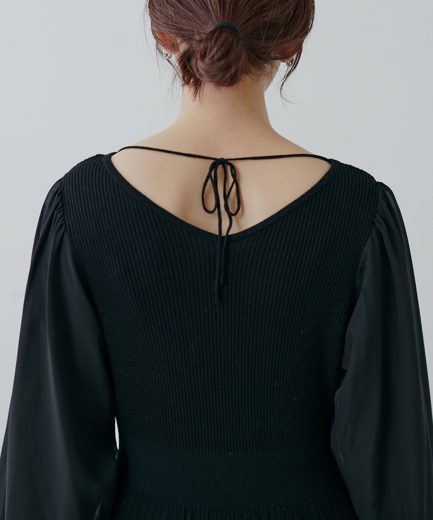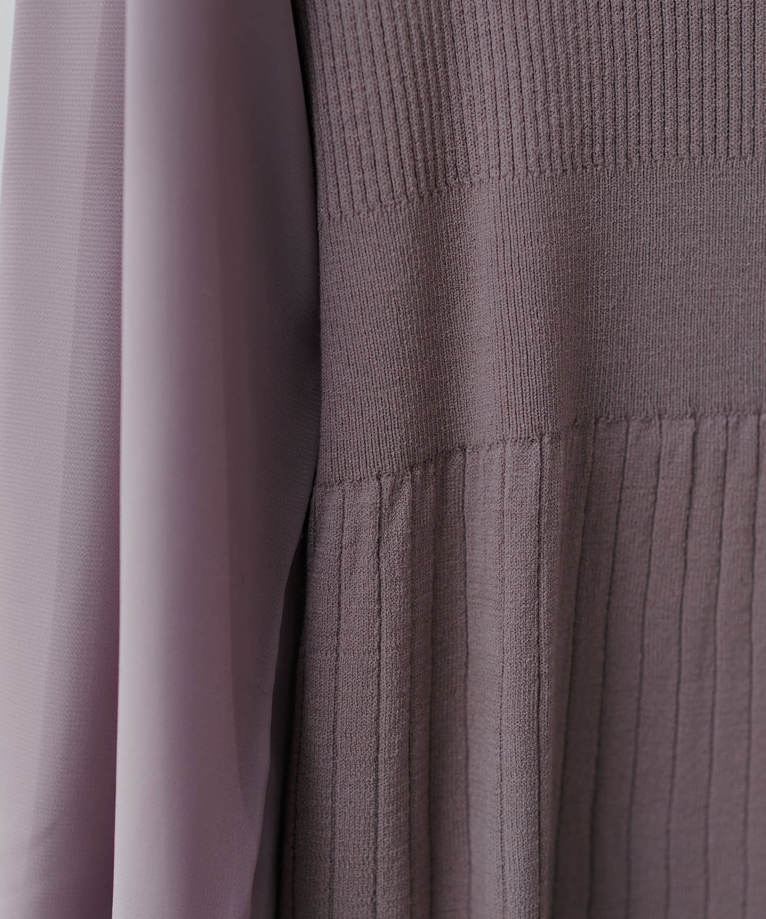 【WEB限定】ほんわりシアー!ボリュームシアー袖リブニットワンピース