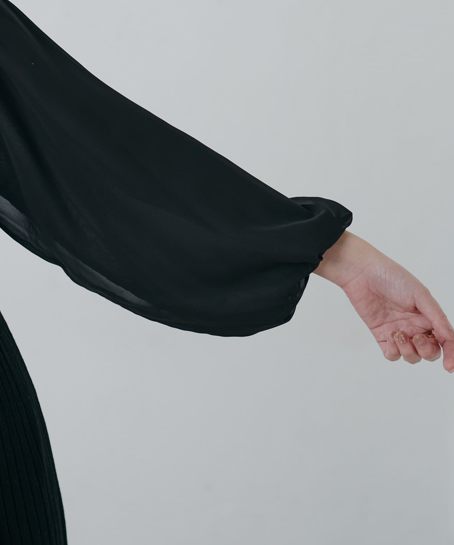 ボリューム感のある袖とシアーの素材感が旬な1枚