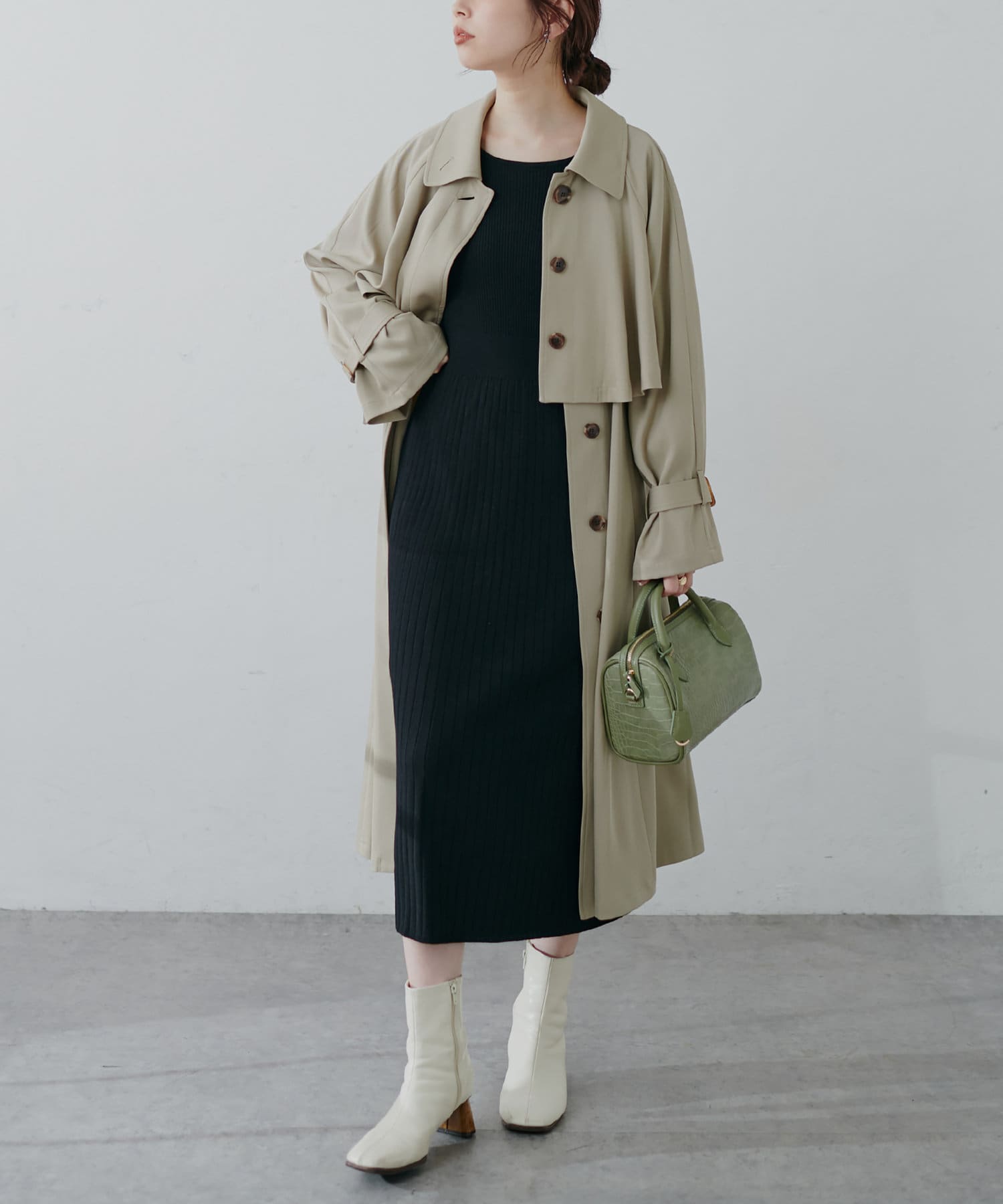 付属のベルトでウエストマークして頂くと、スタイルにメリハリがつき脚長に見せることができます。