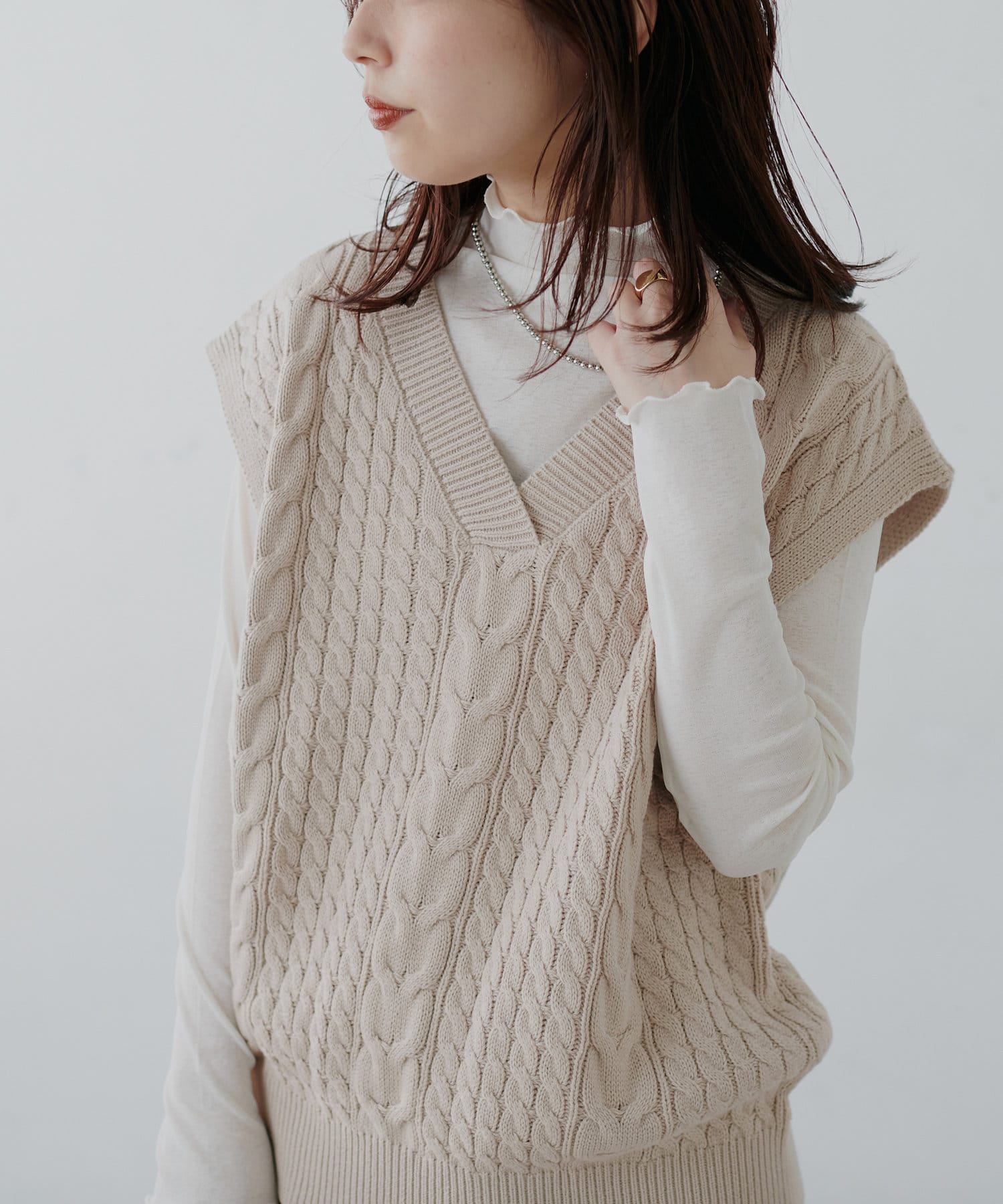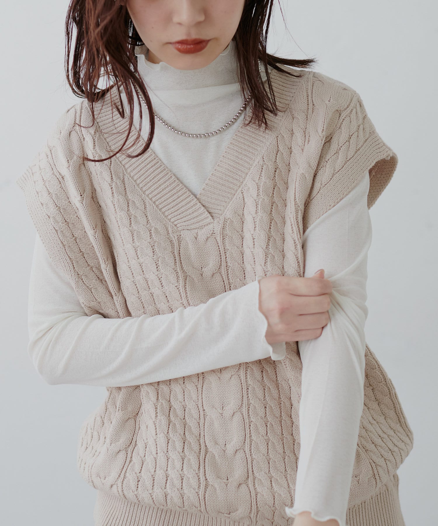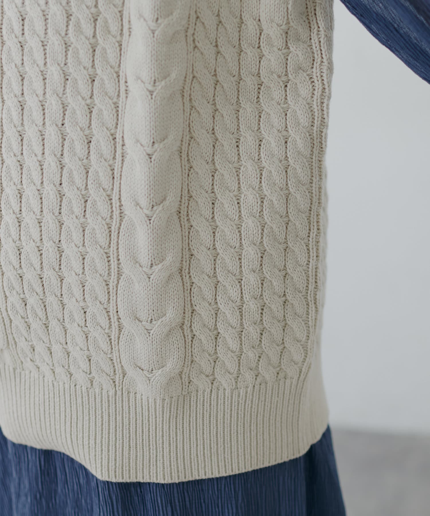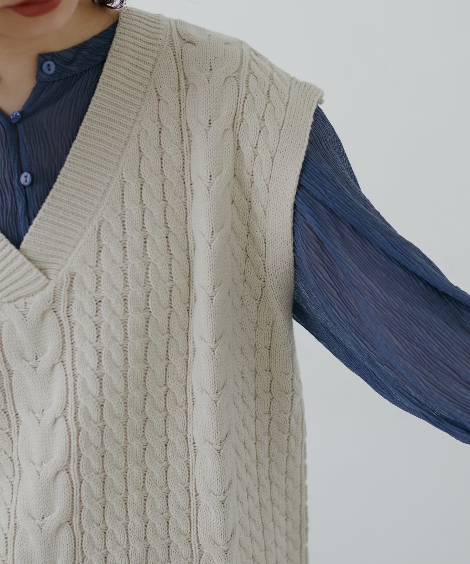 ■Design繊細なケーブル編みが目を惹くニットベスト。