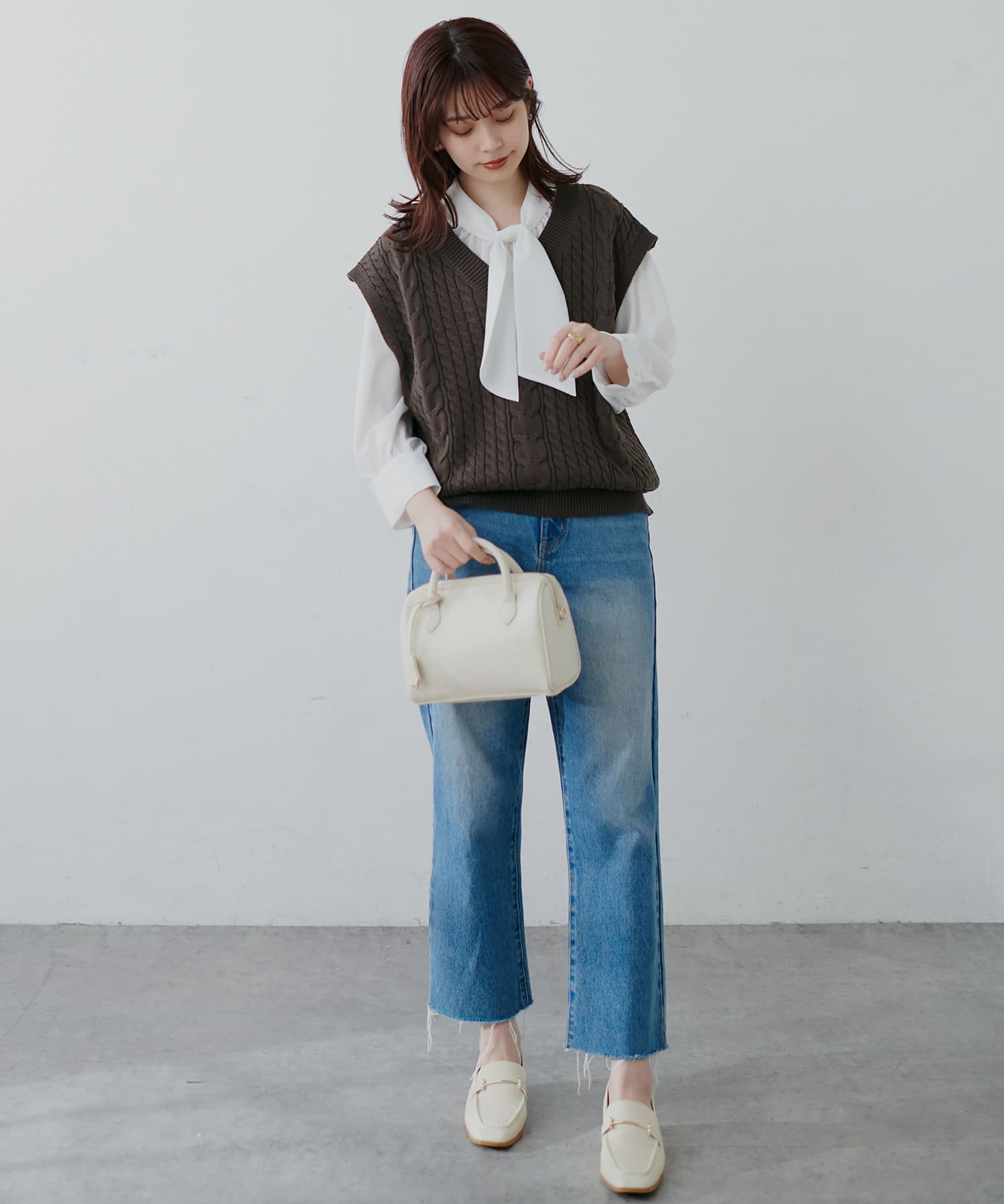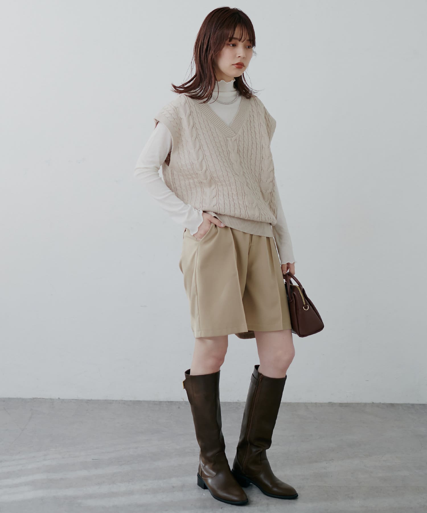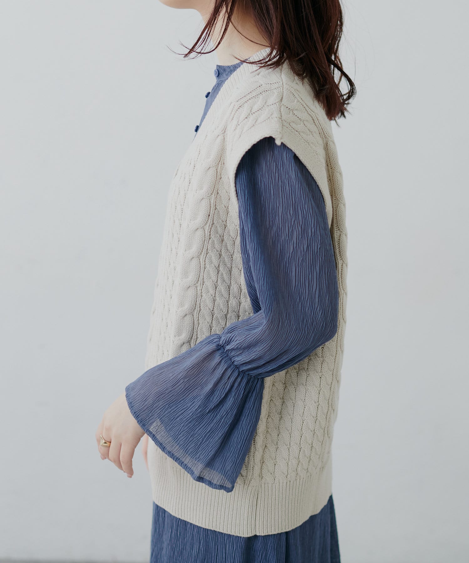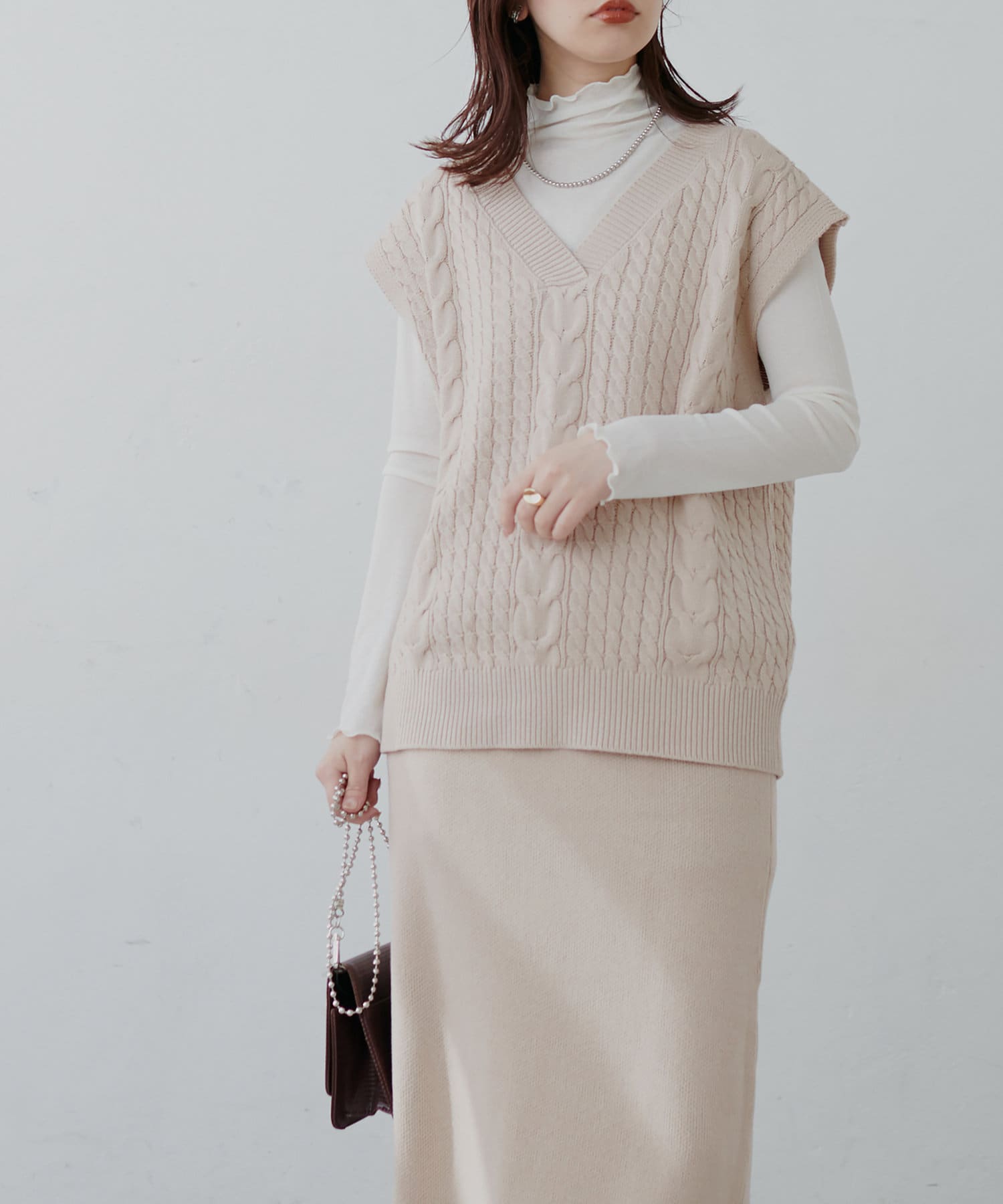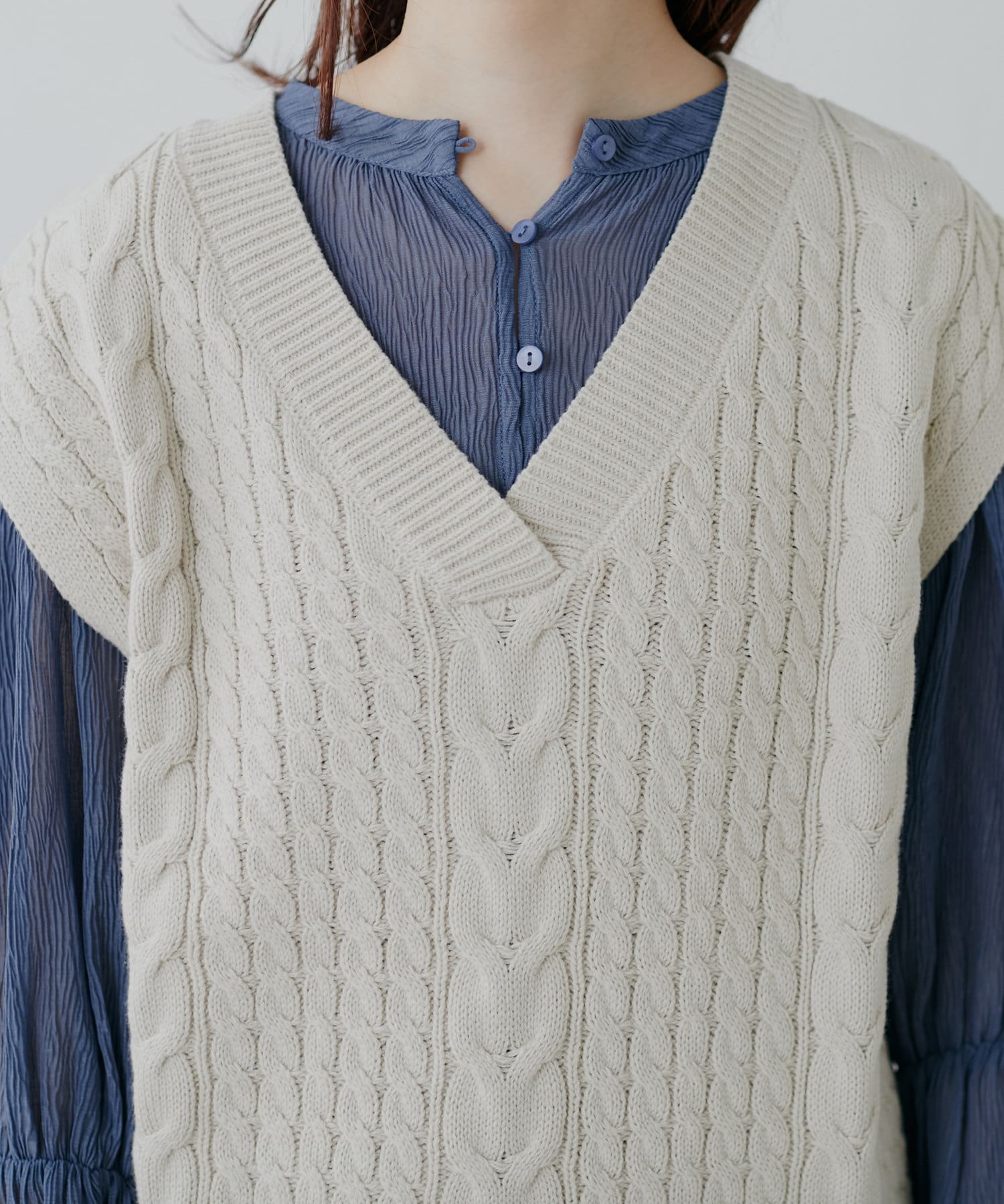 ■Design繊細なケーブル編みが目を惹くニットベスト。