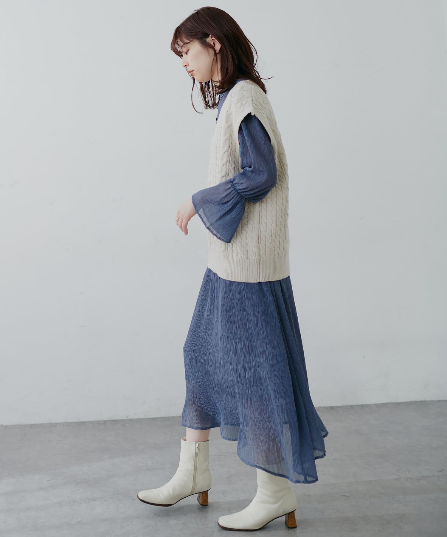 お好みでワンピースの上からレイヤードして頂いてもトレンドライクなスタイリングに仕上がります。