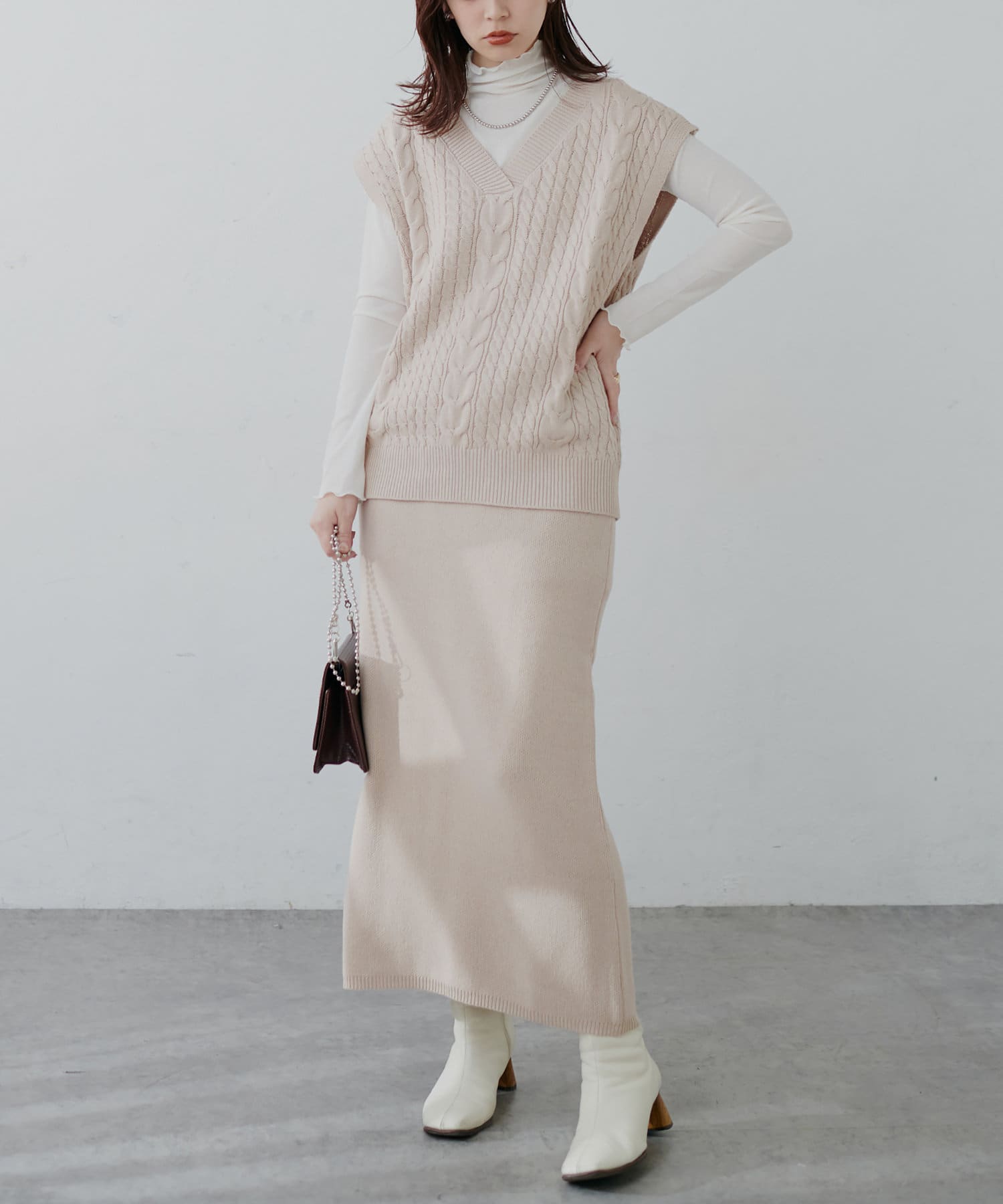 358400260:シンプルニットタイトスカートとセットアップでもお召し頂けます。