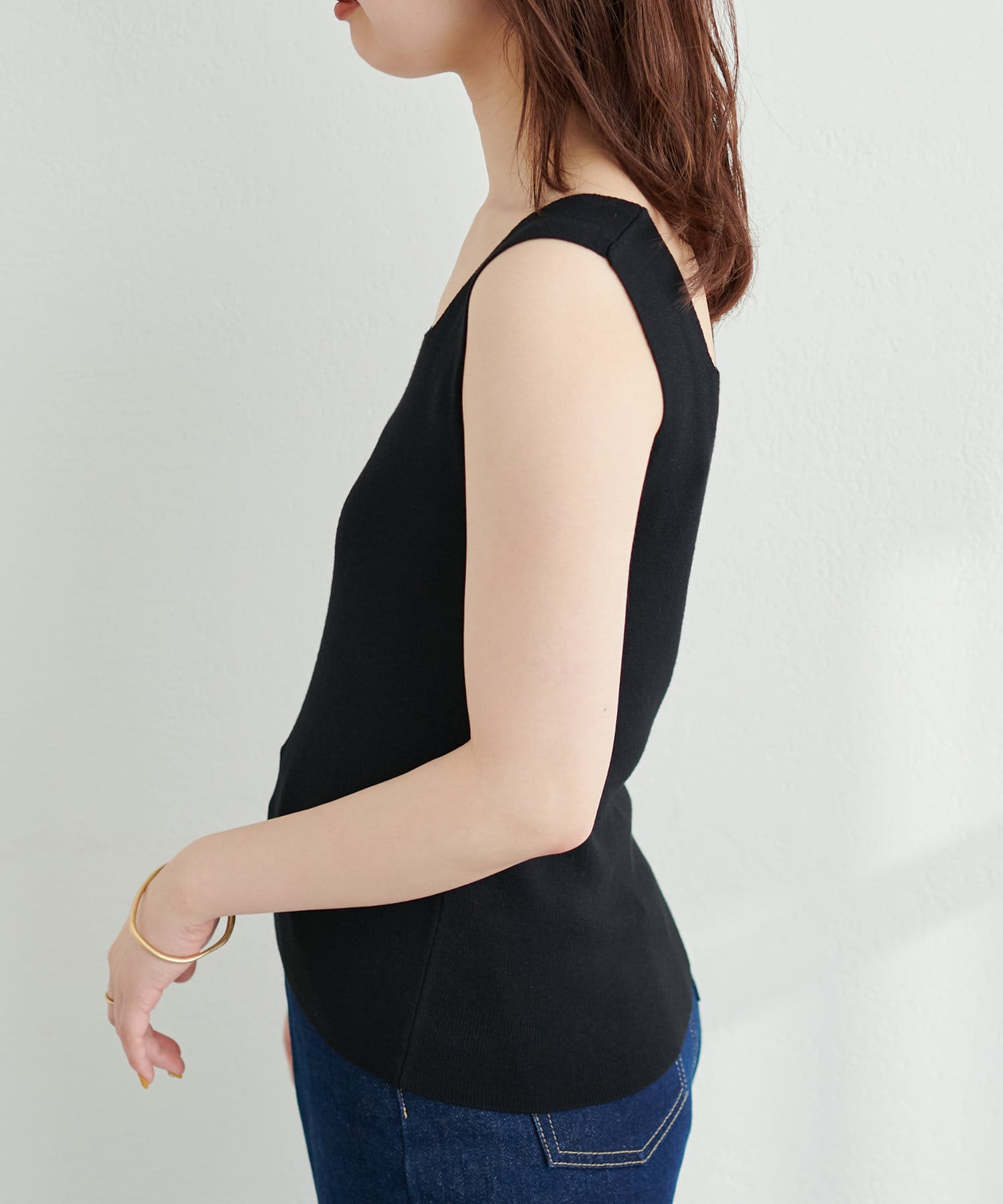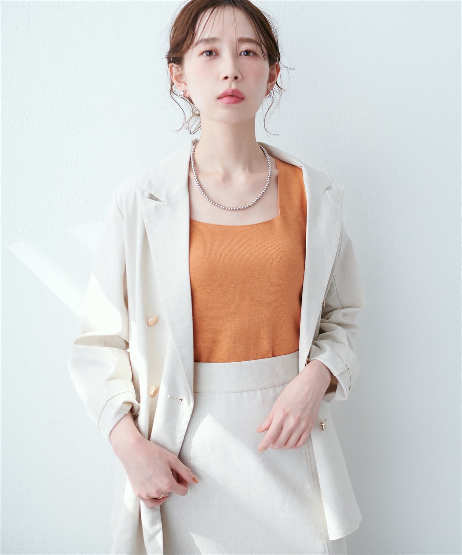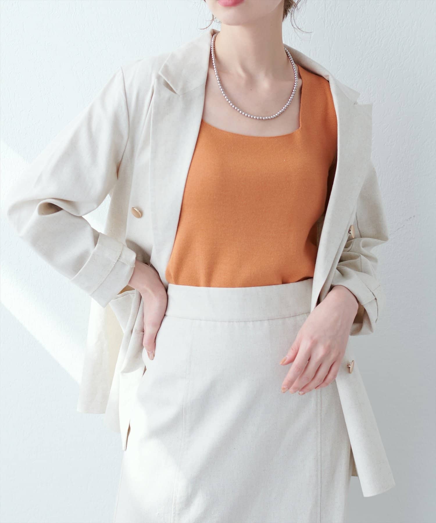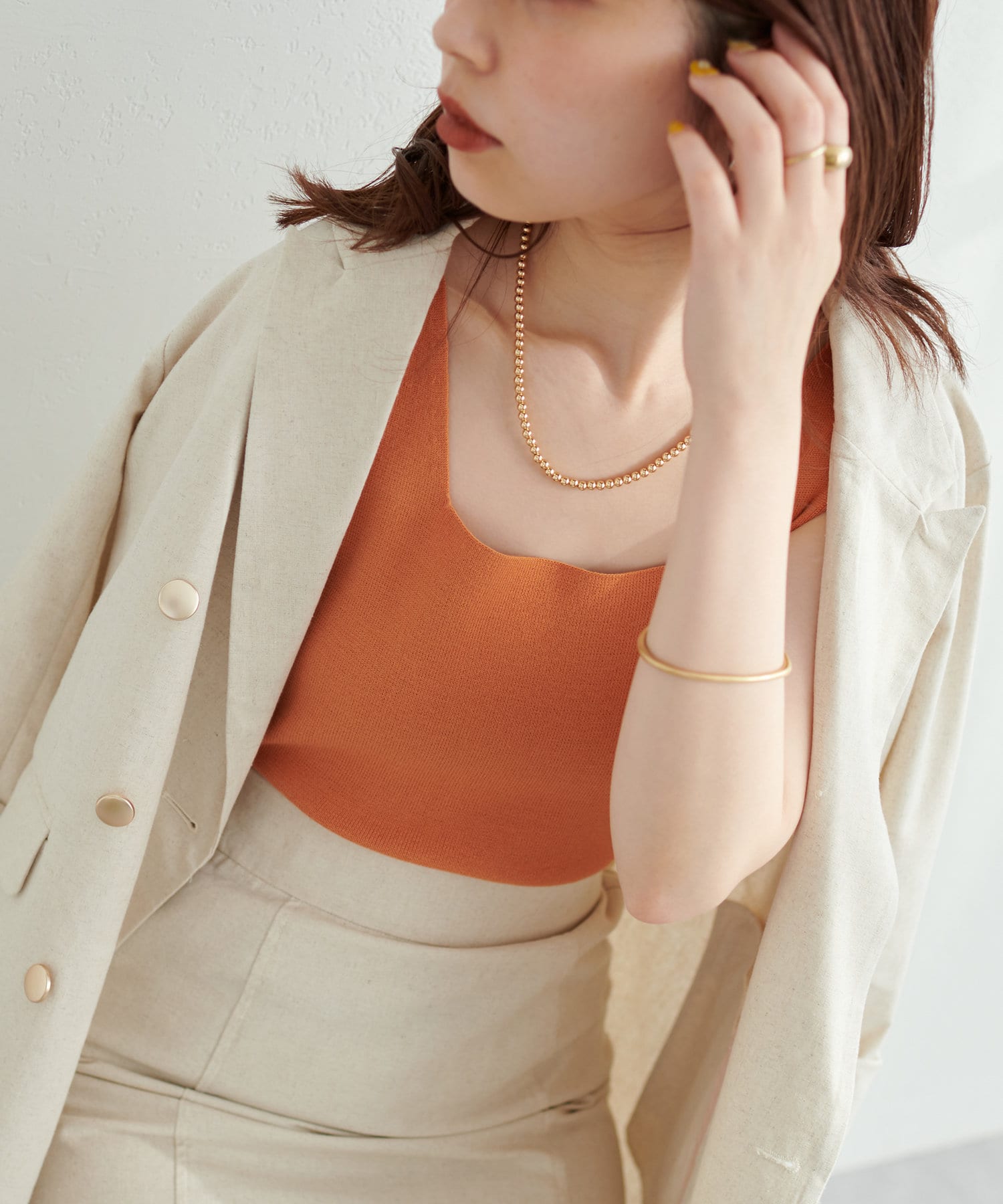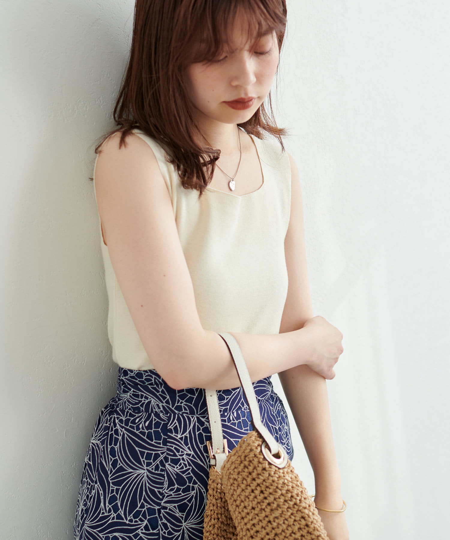 キャミワンピースのインナーとして合わせて頂ければ、スクエアデザインが引き立つ大人レディな装いに仕上がります。