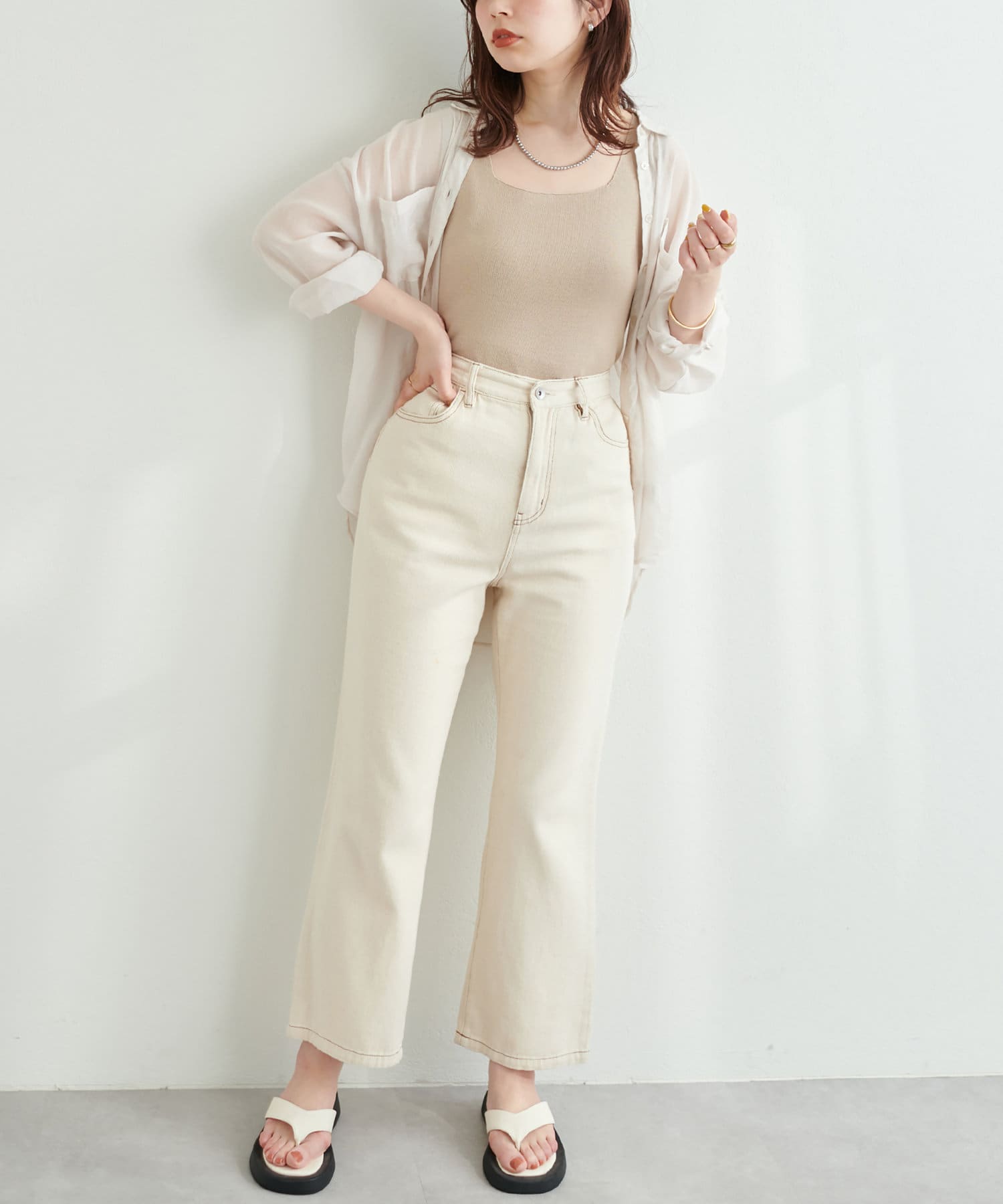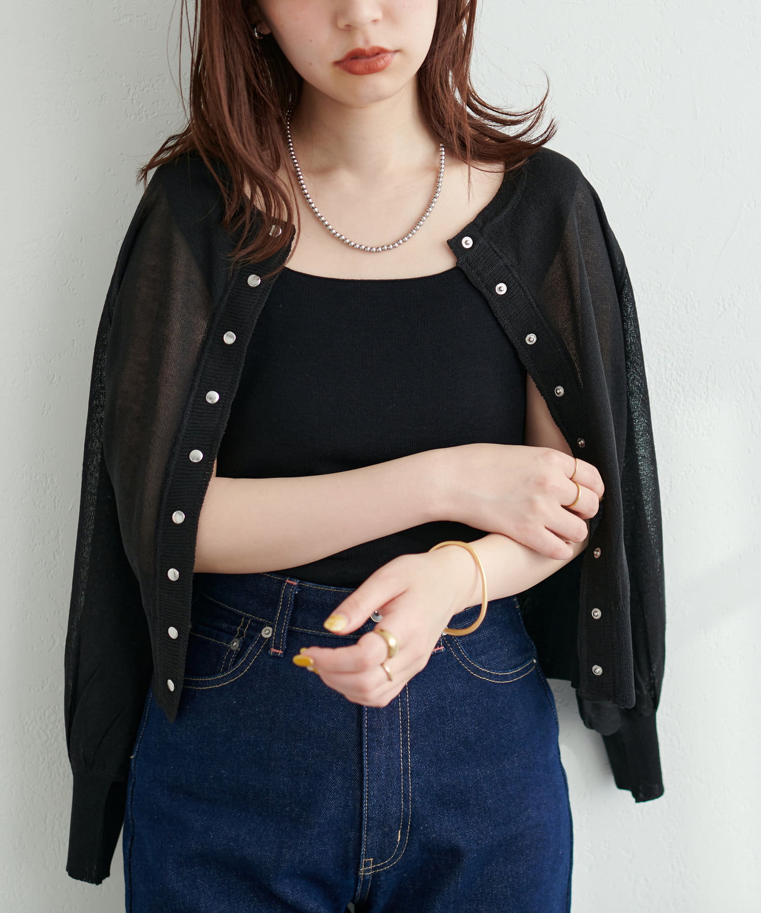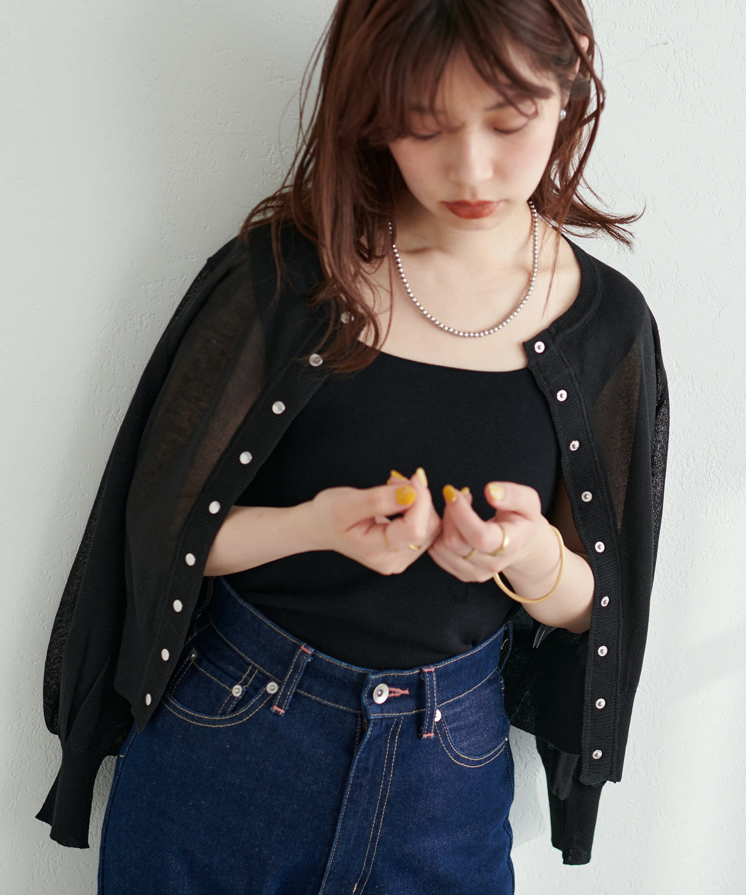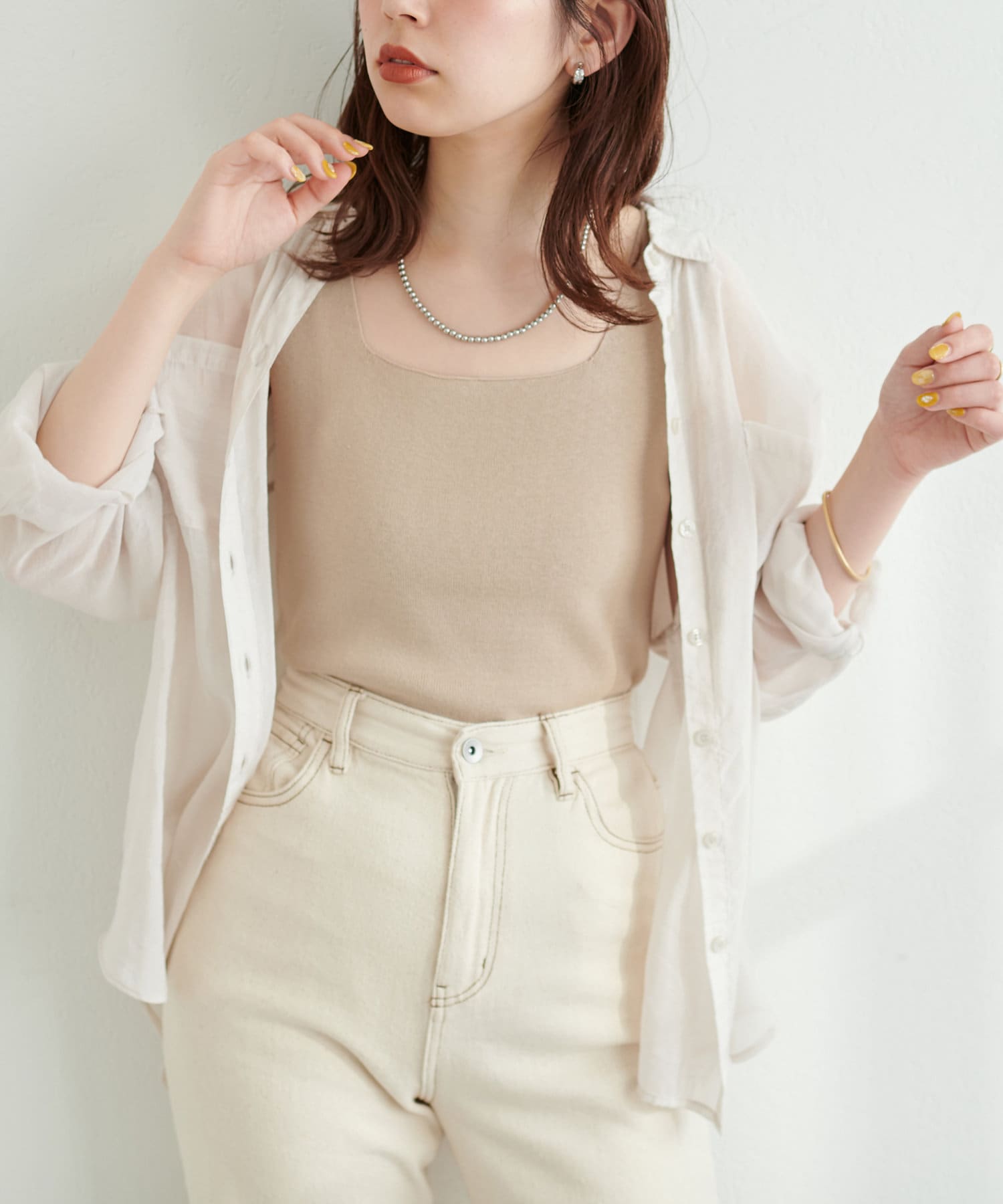 シアーシャツやカーデのインナーとしてはもちろん、夏はメインとしてもシンプルにお召し頂けます。