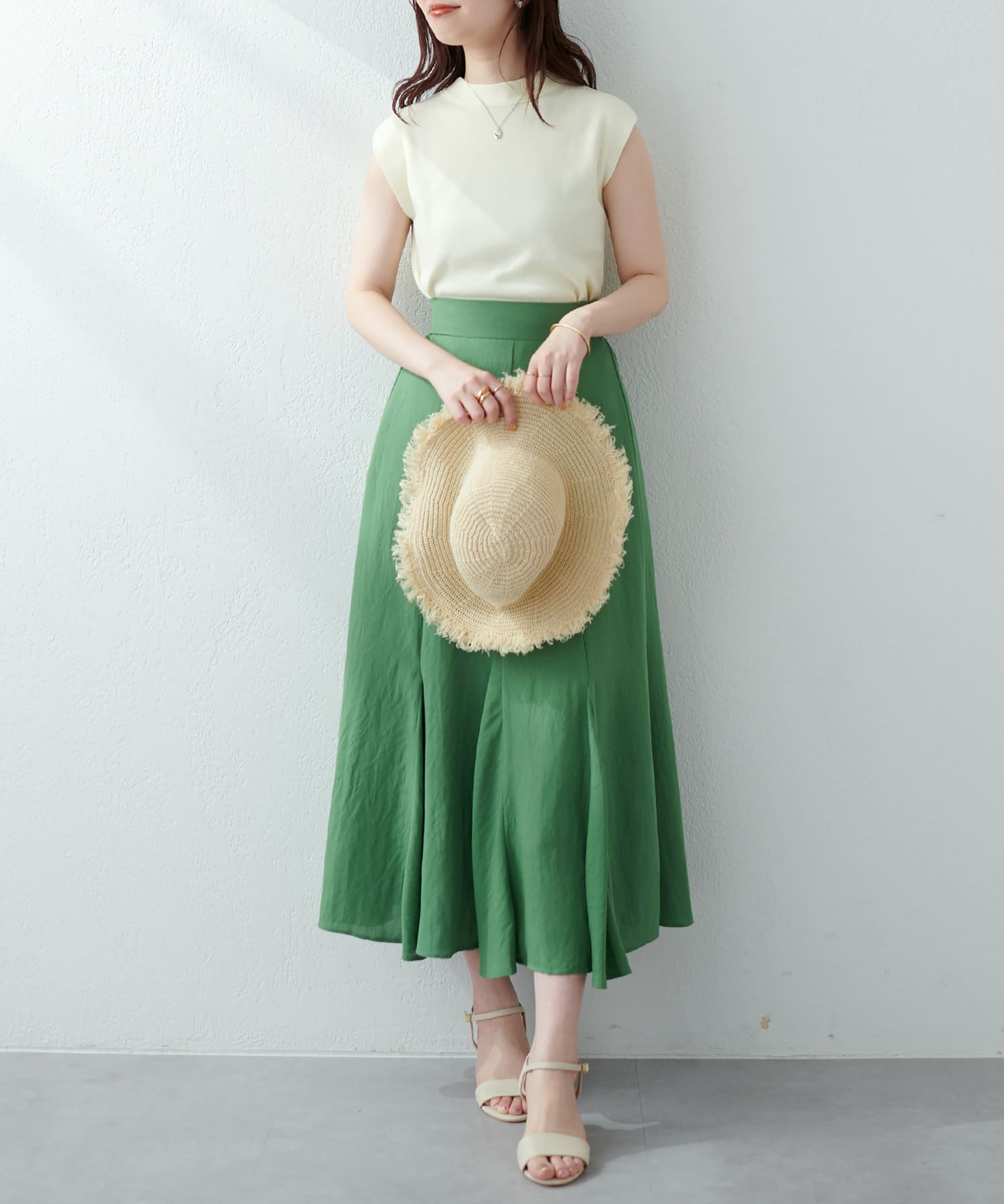 シンプルながらも、肩のラインが出過ぎない絶妙なノースリーブデザインは、