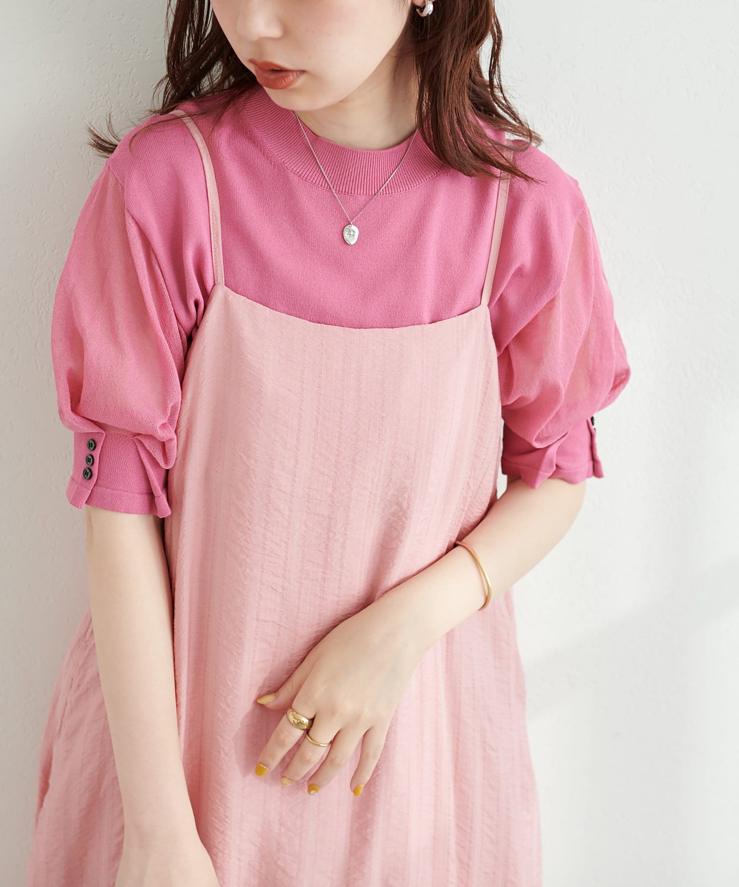 お好みでキャミワンピースやサロペットのインナーとして、袖のディテールをポイント見せしても◎