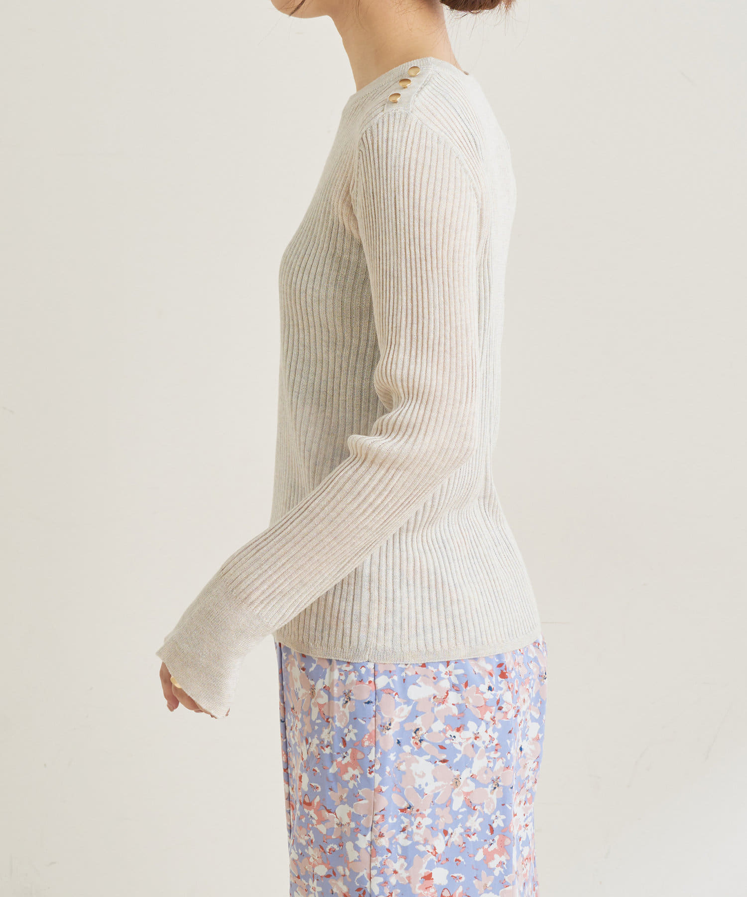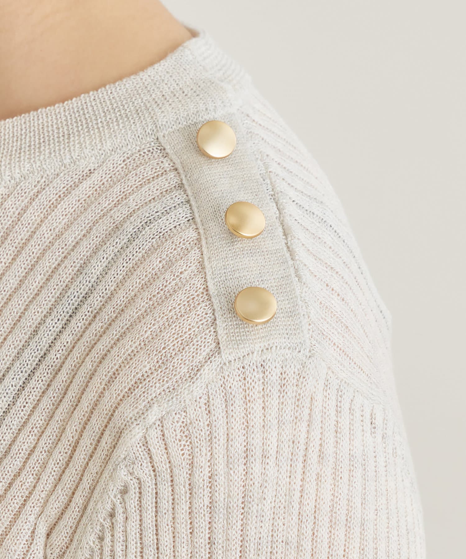 ショルダー部分にマットゴールドのボタンをあしらい、