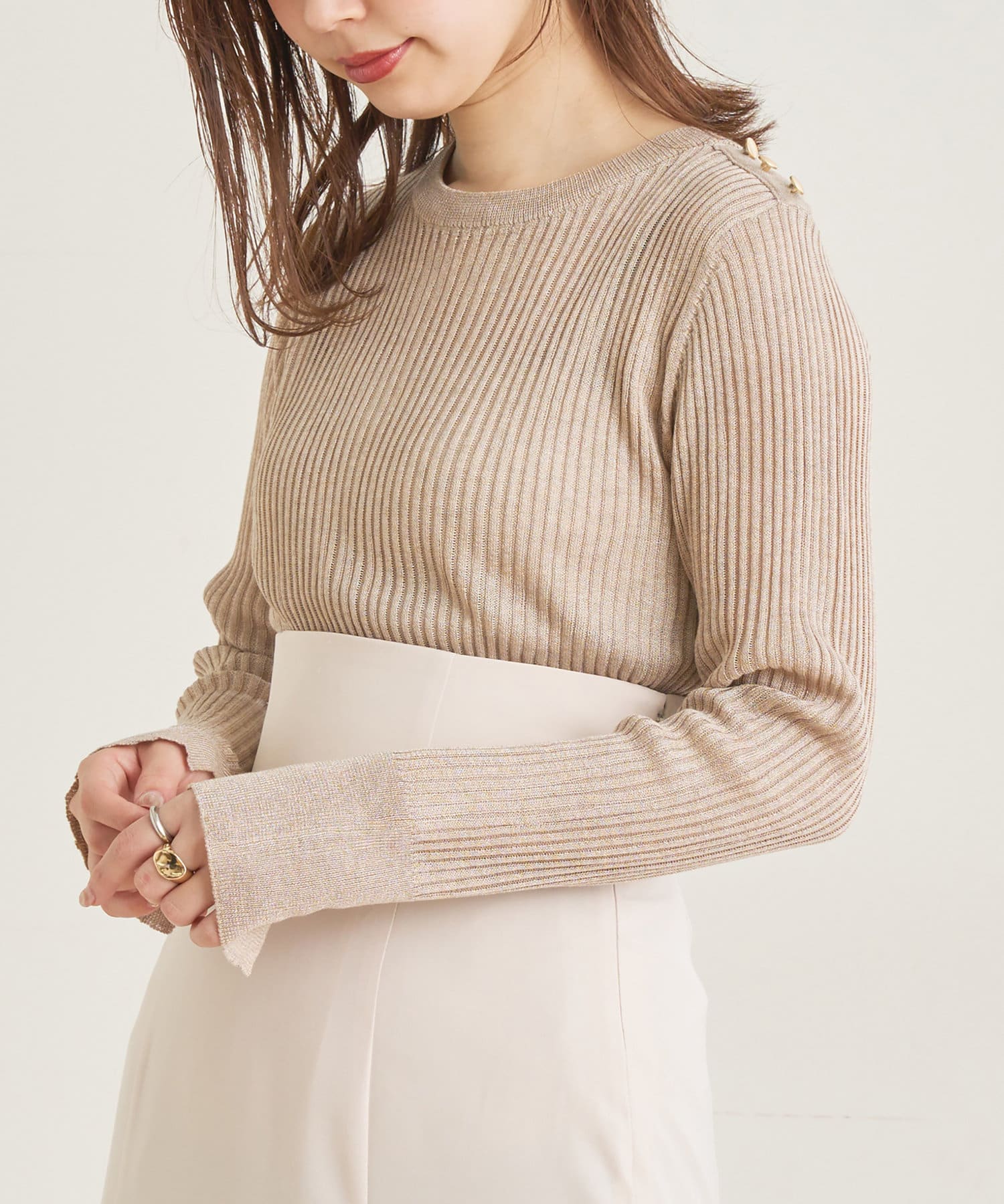 力の抜けた女性らしさを引き出してくれるリブニット。