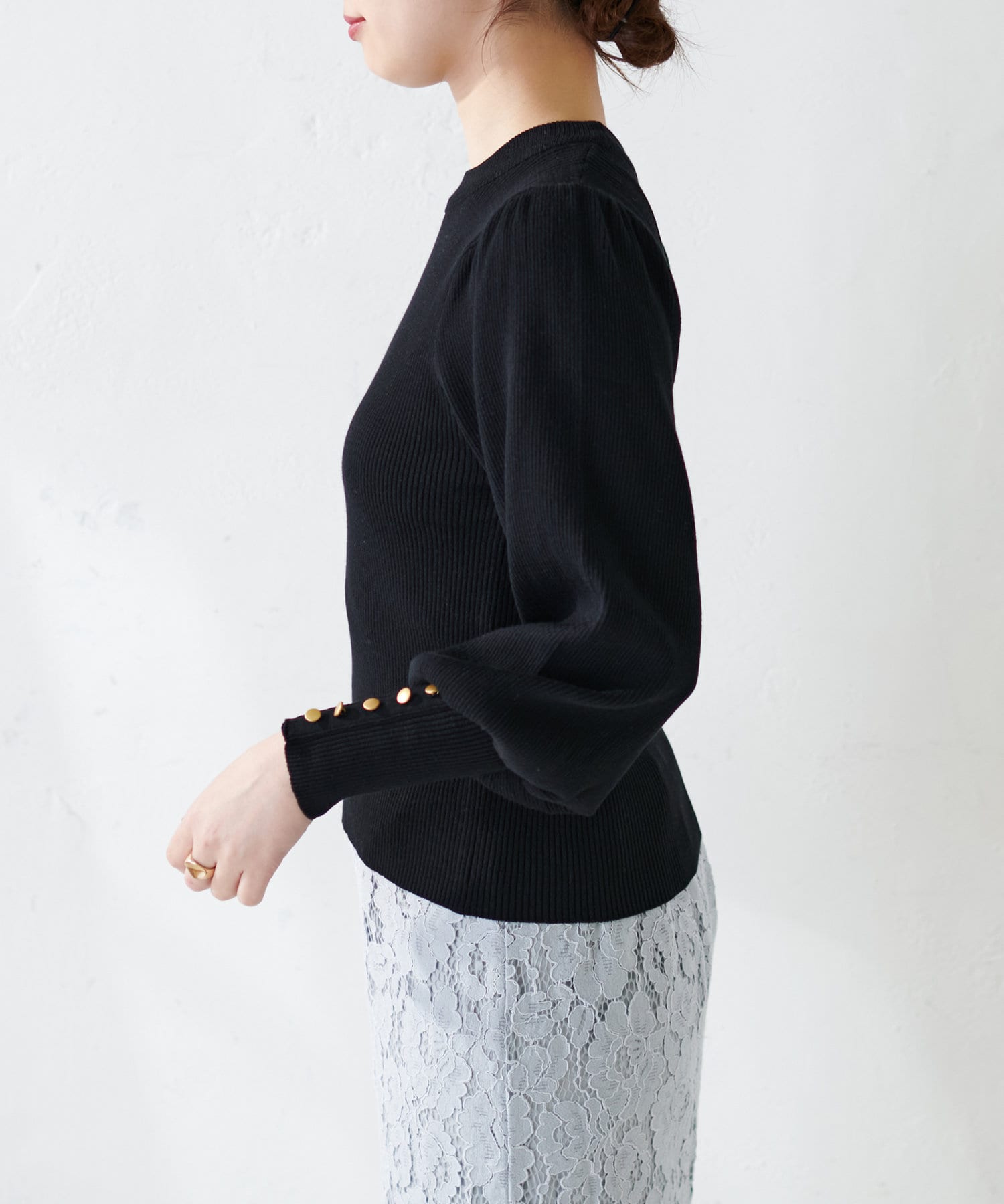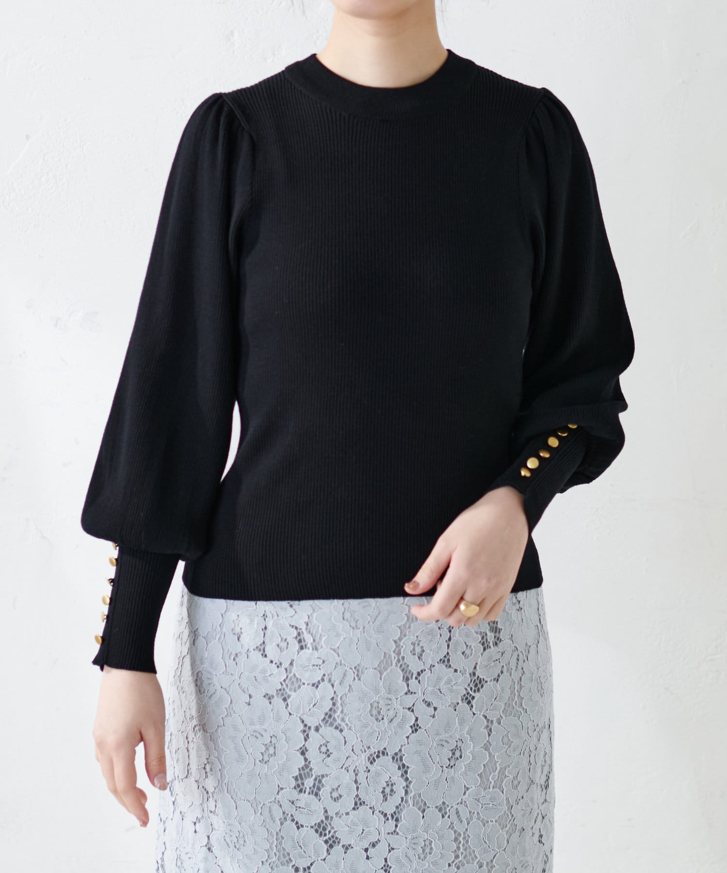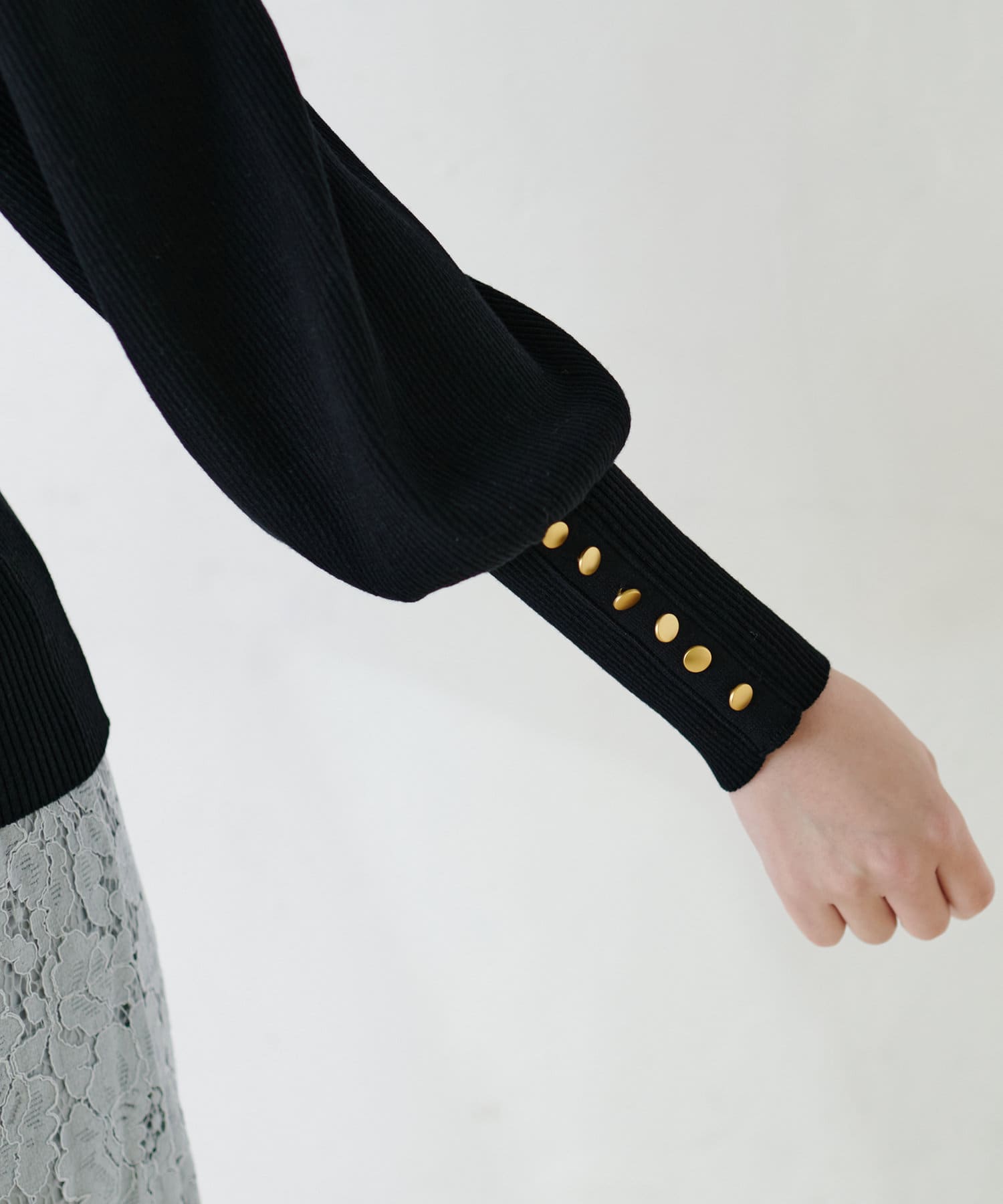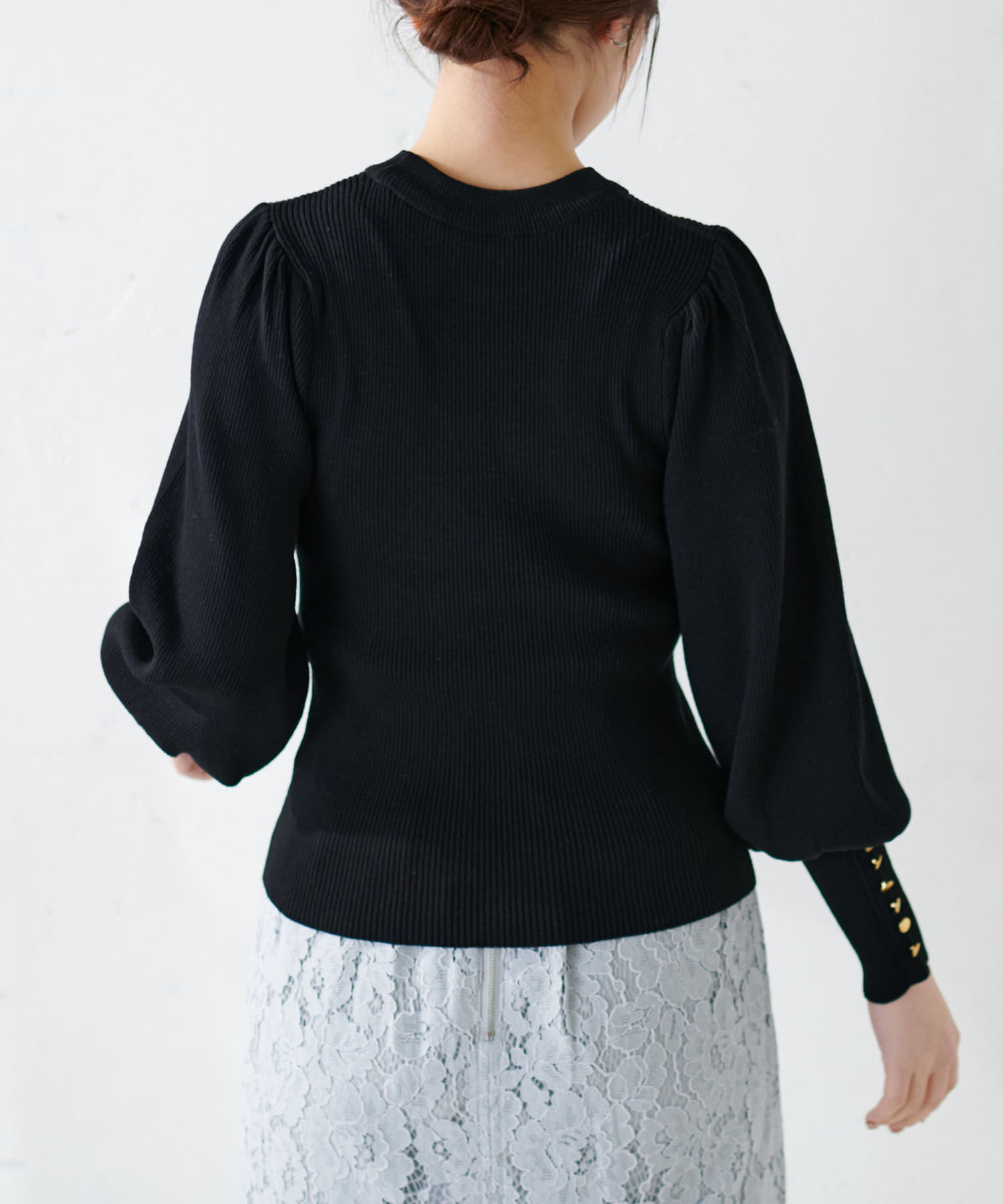 ボリューム袖金釦リブニット