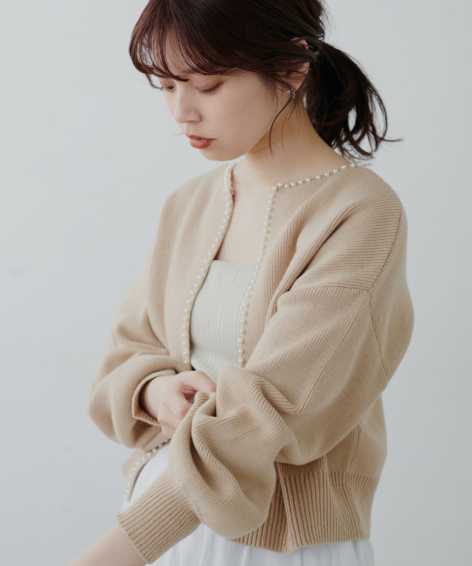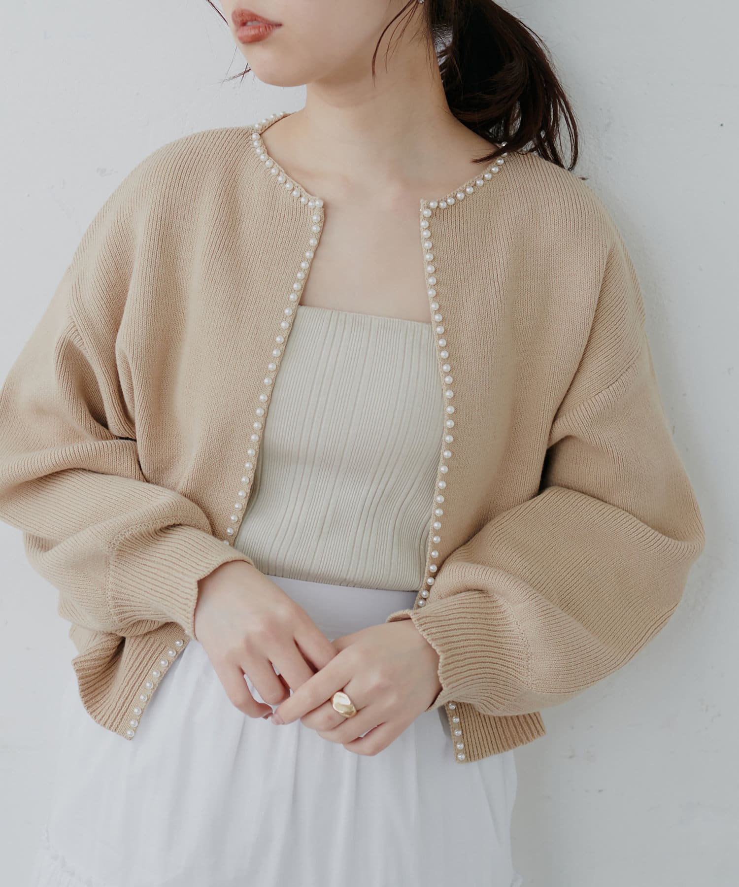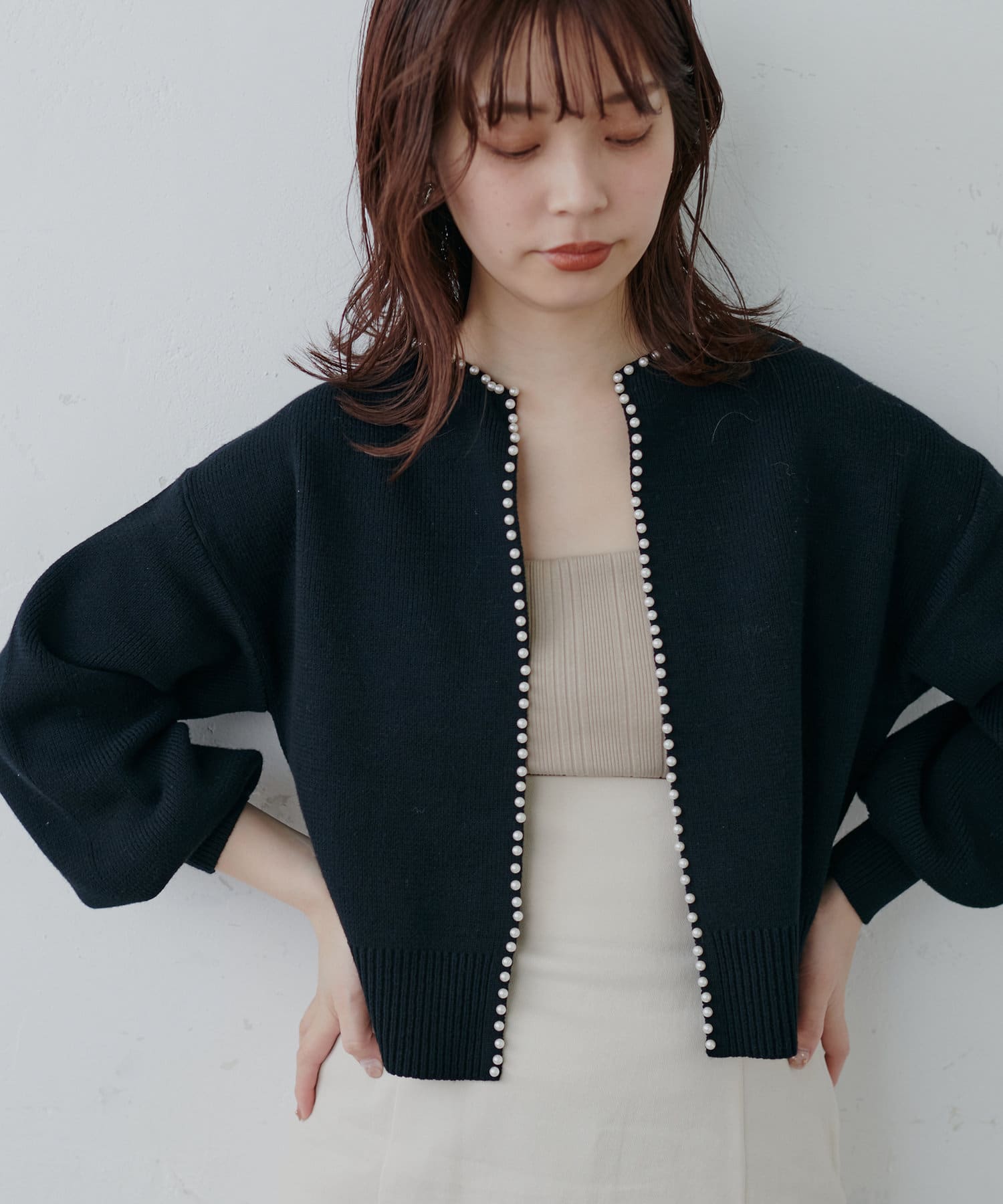 パールトリムクルーネックカーディガン