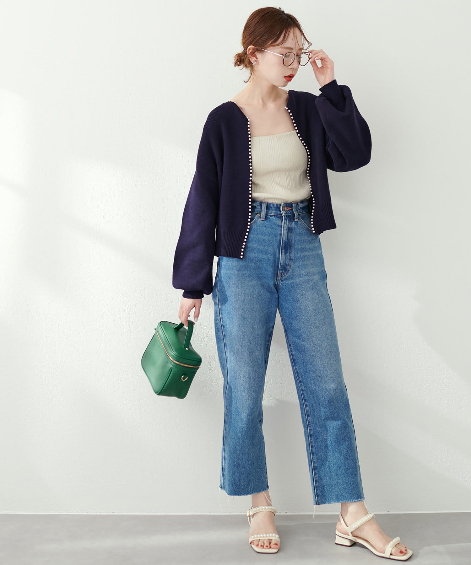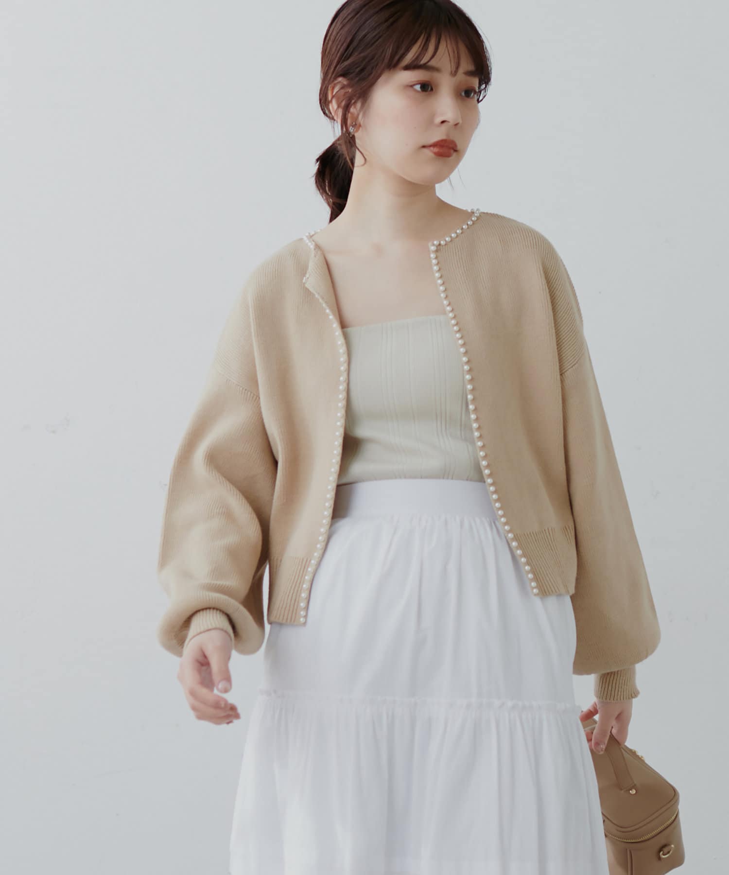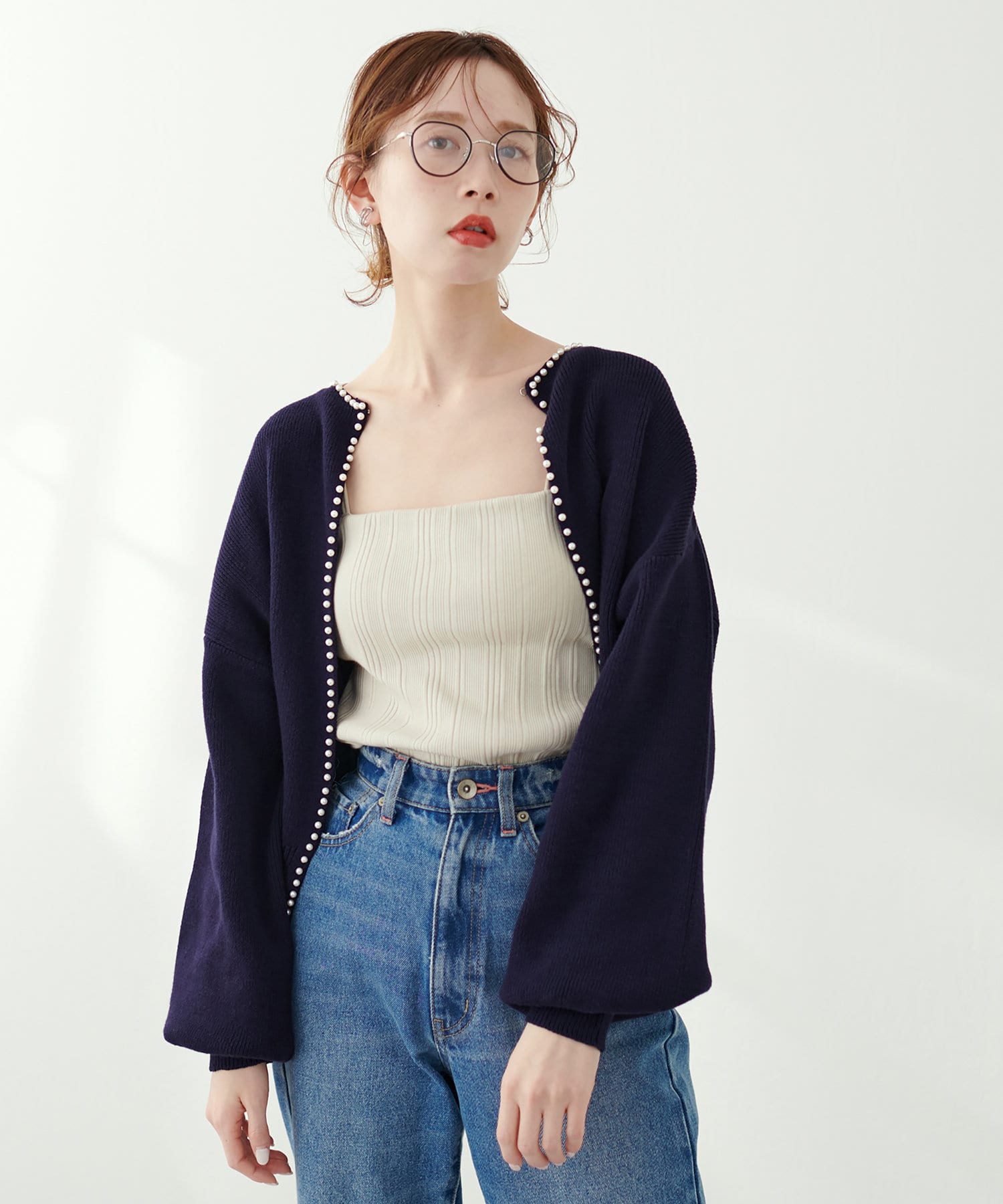 パールトリムクルーネックカーディガン