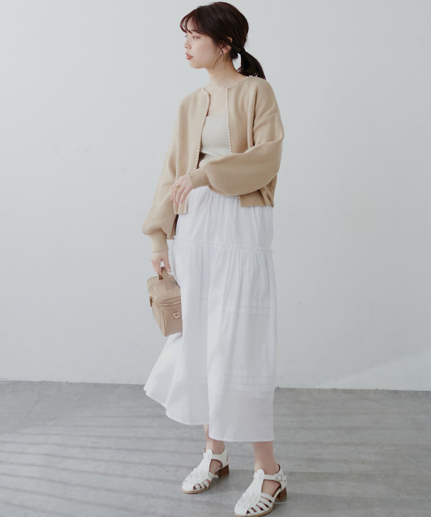 贅沢なパール使いが大人レディな装いに◎