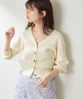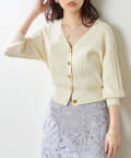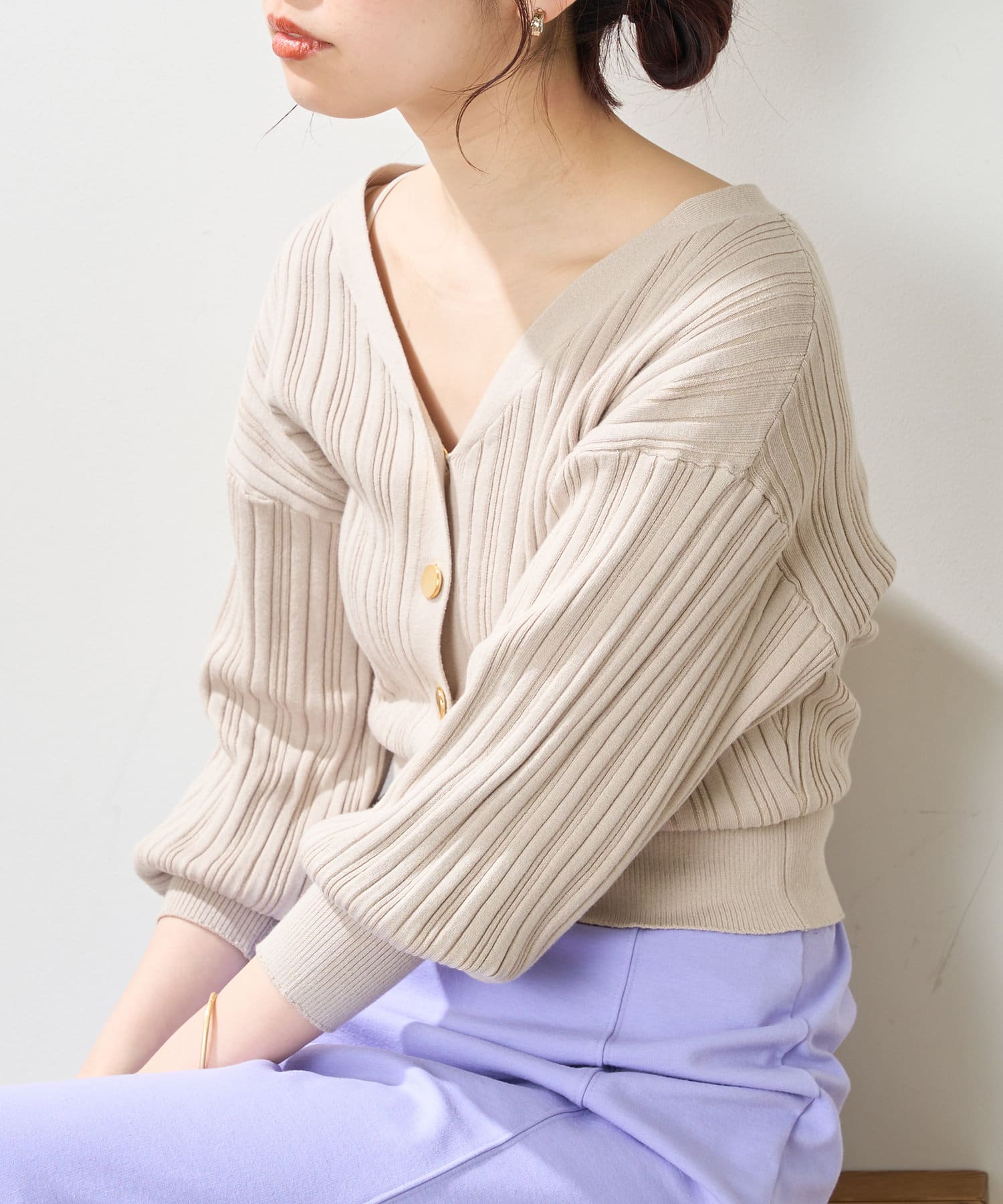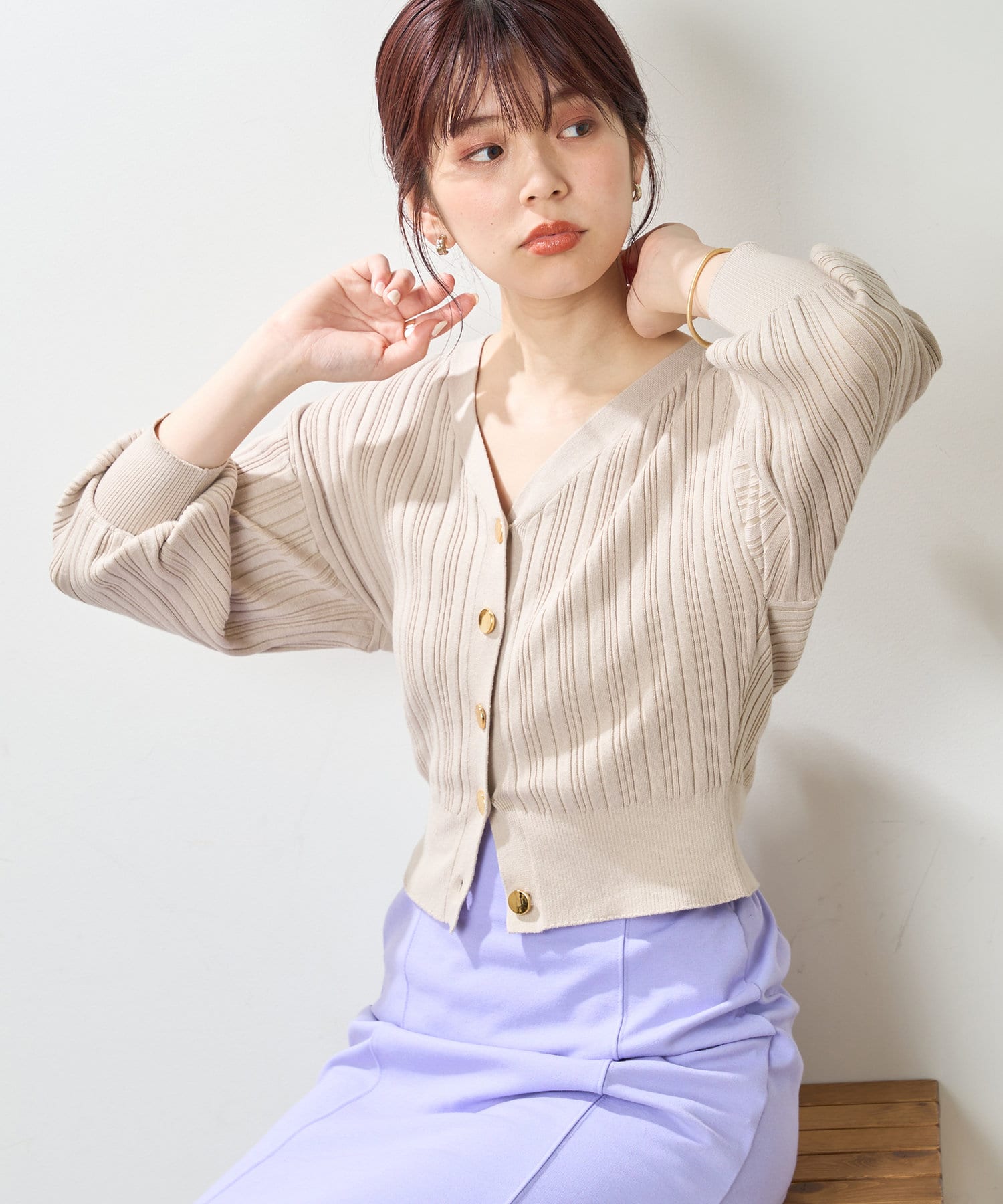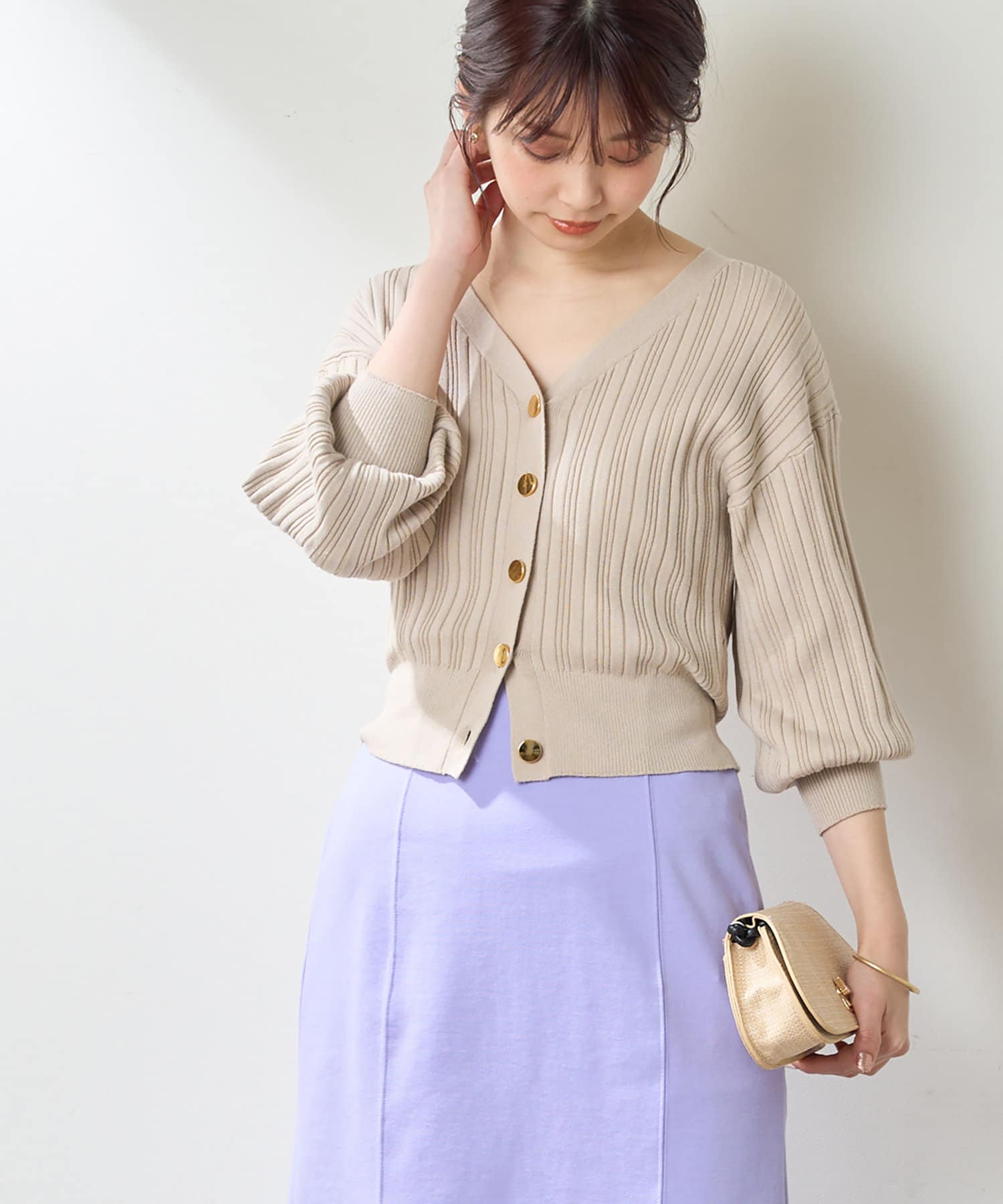 natural couture(ナチュラルクチュール) ゴールドの釦使いが大人レディな装いに◎プチプラランダムリブカーディガン