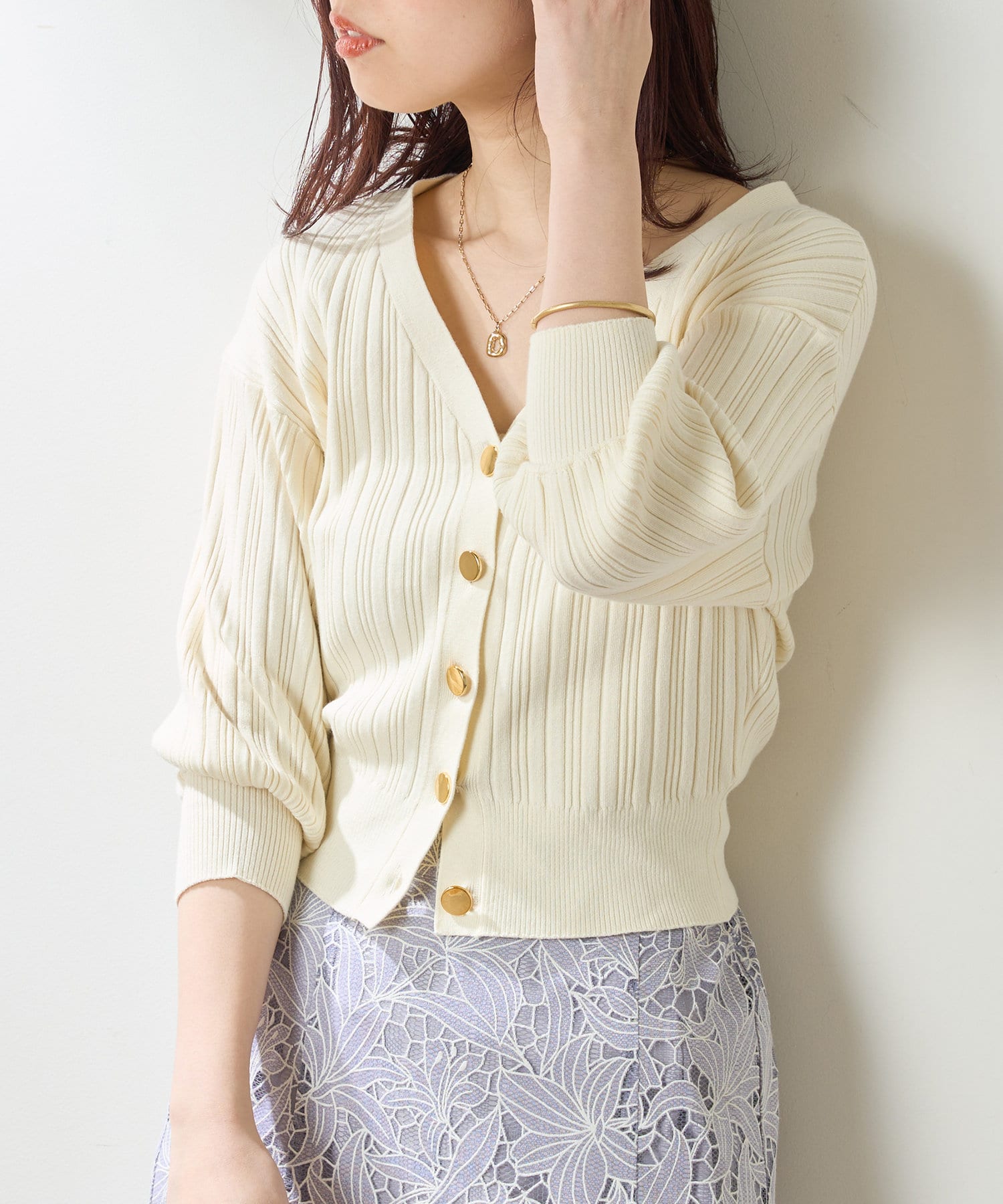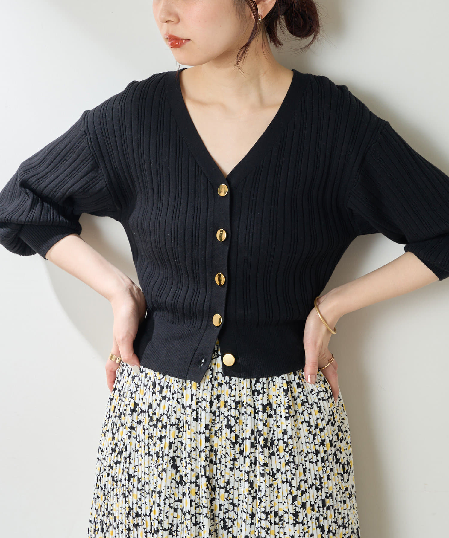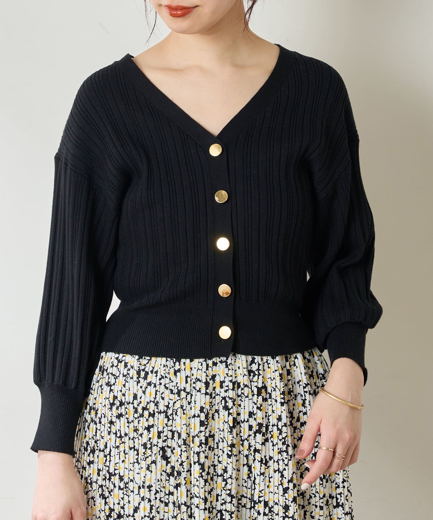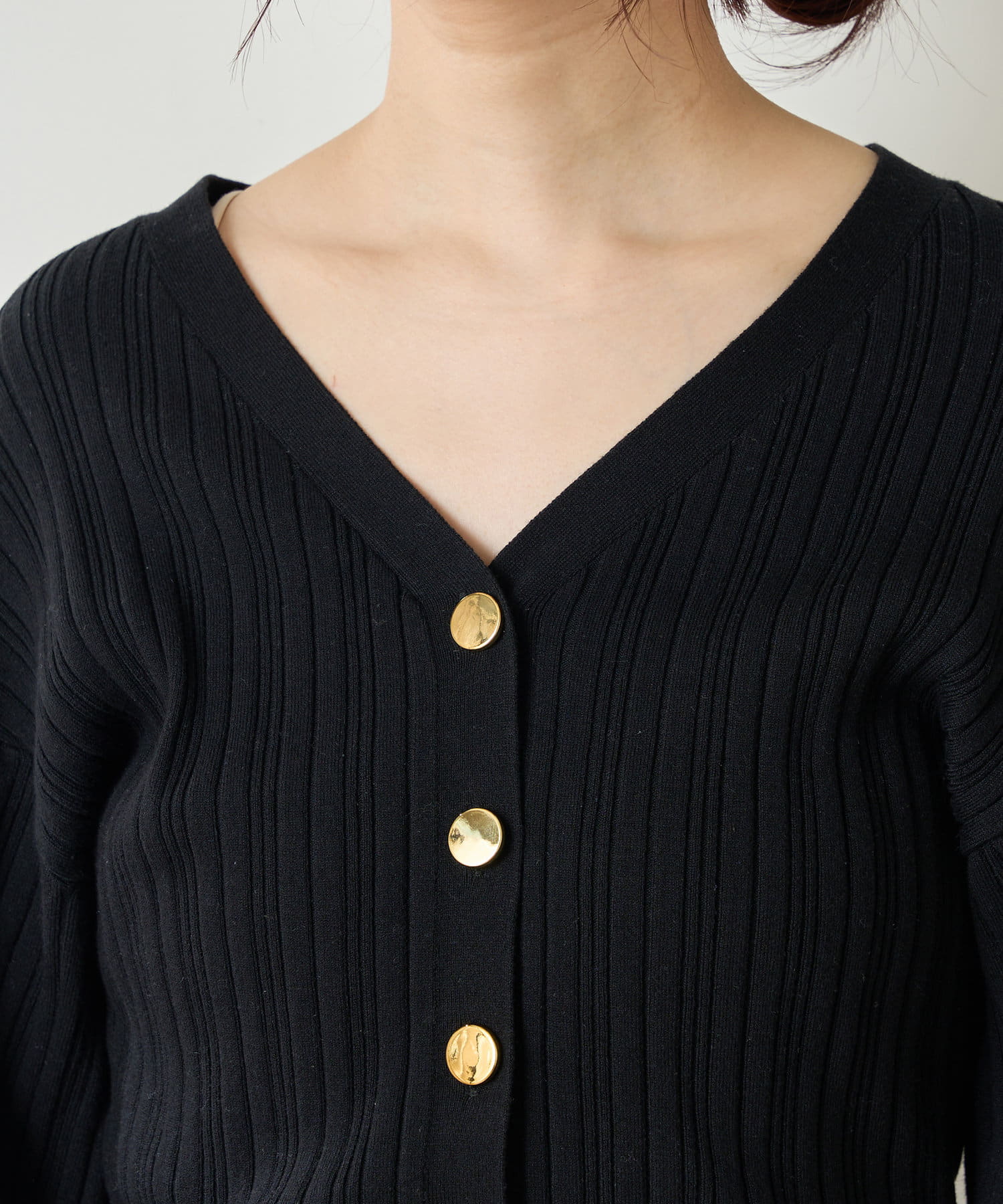 TOP > natural couture > レディース > トップス > カーディガン/ボレロ > ゴールドの釦使いが大人レディな装いに◎プチプラランダムリブカーディガン
