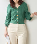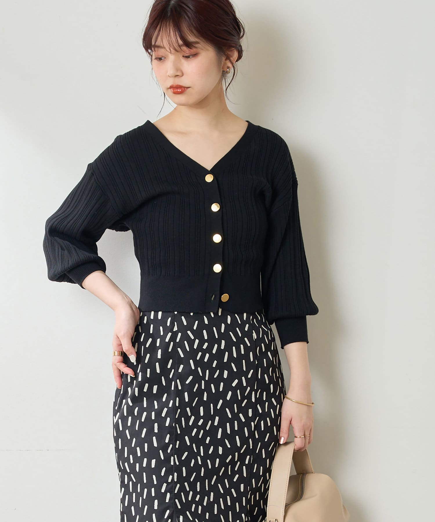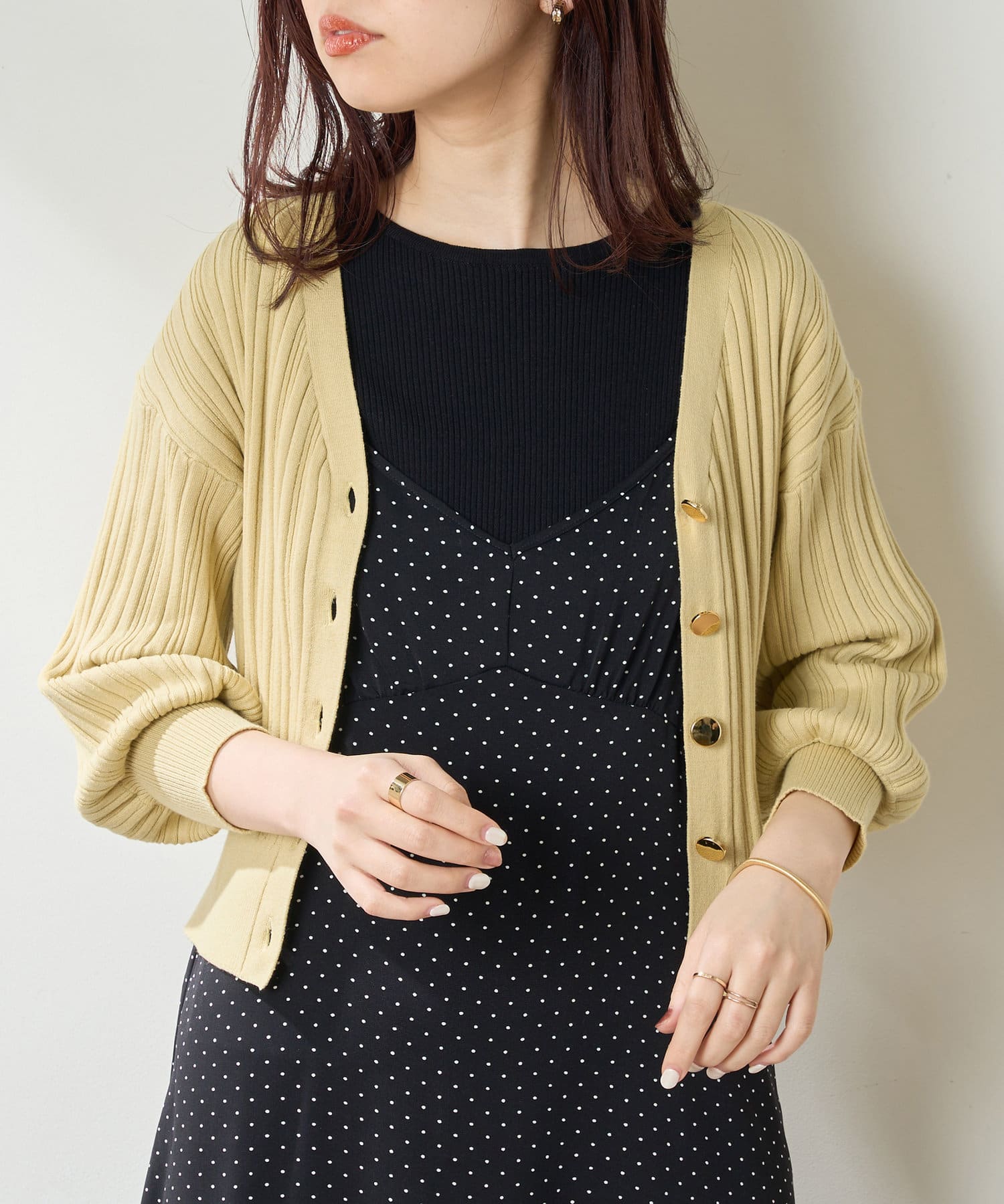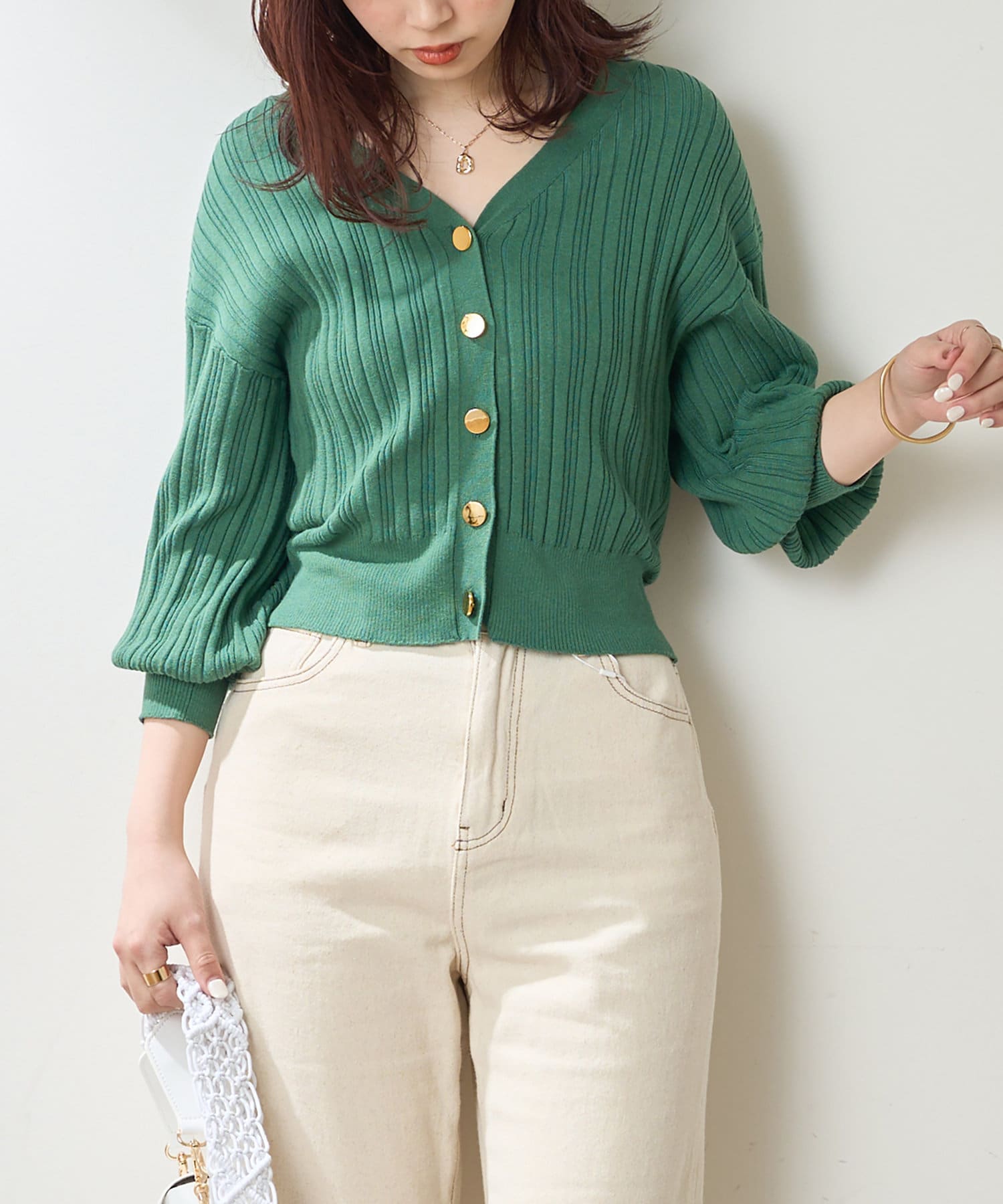 TOP > natural couture > レディース > トップス > カーディガン/ボレロ > ゴールドの釦使いが大人レディな装いに◎プチプラランダムリブカーディガン