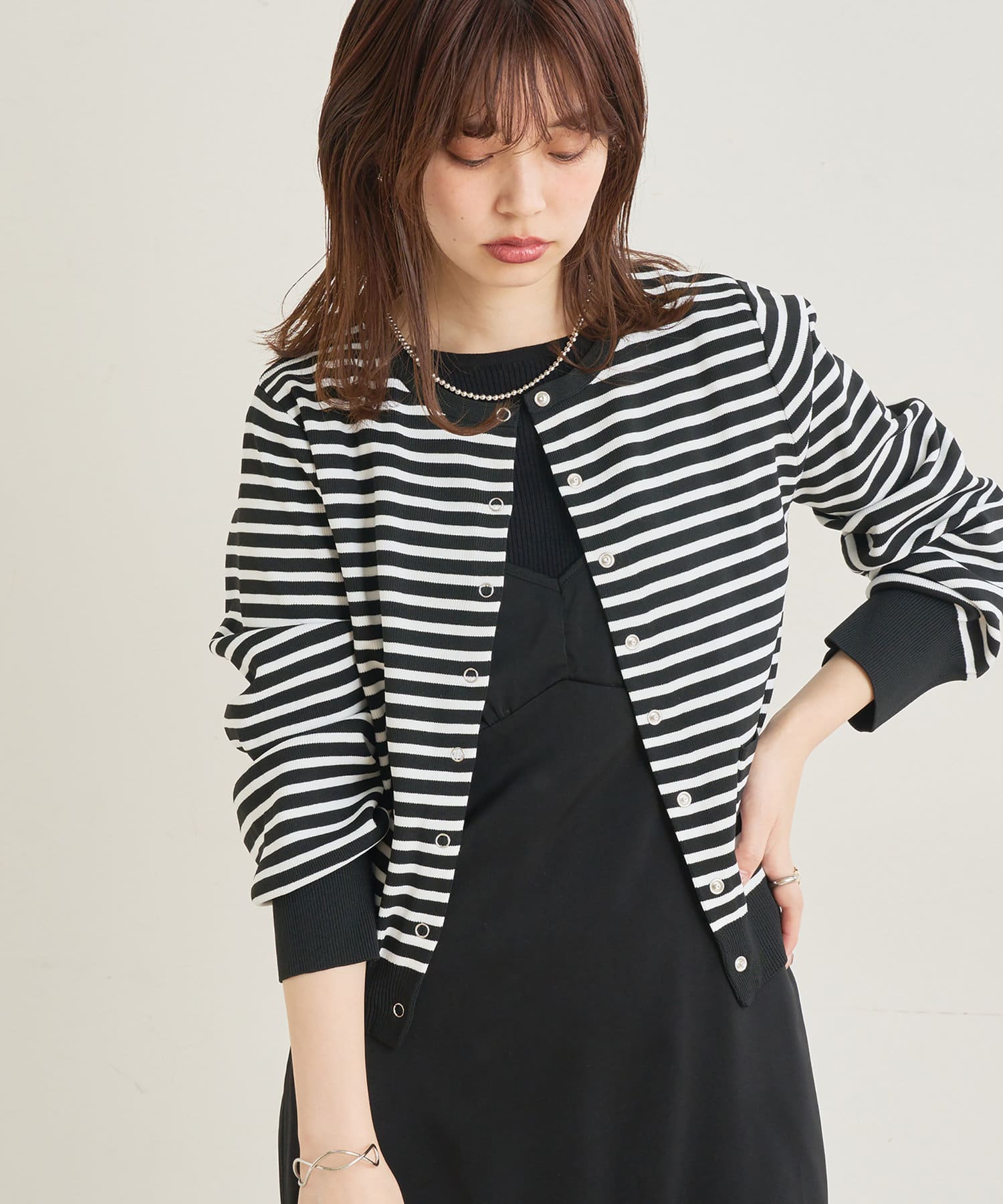リングドット釦がさりげないポイントで目を惹くニットカーディガンが登場しました。
