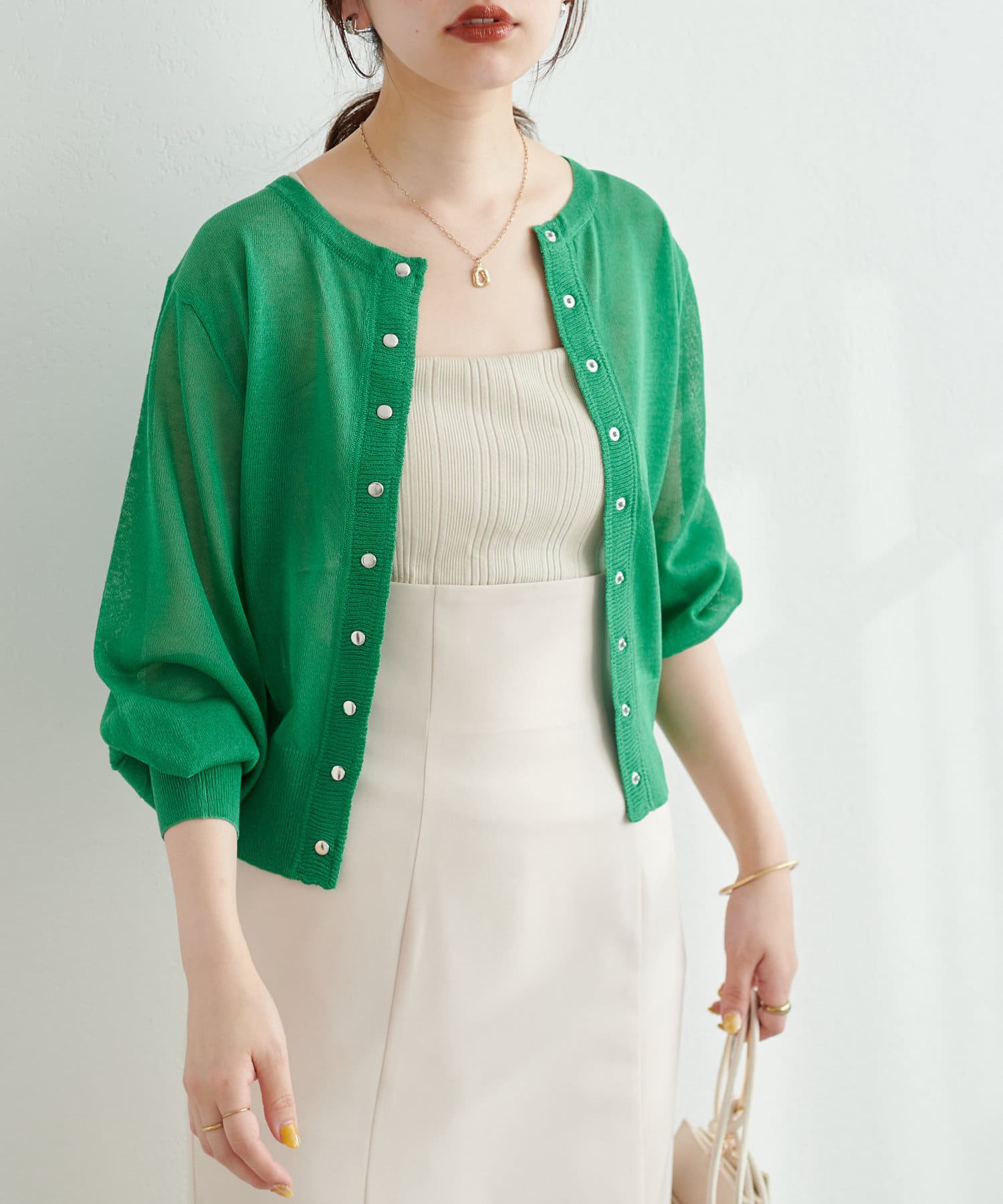 シアー感が涼やかな印象を与えてくれる、今季1着は持っていたい注目のカーディガンが登場。