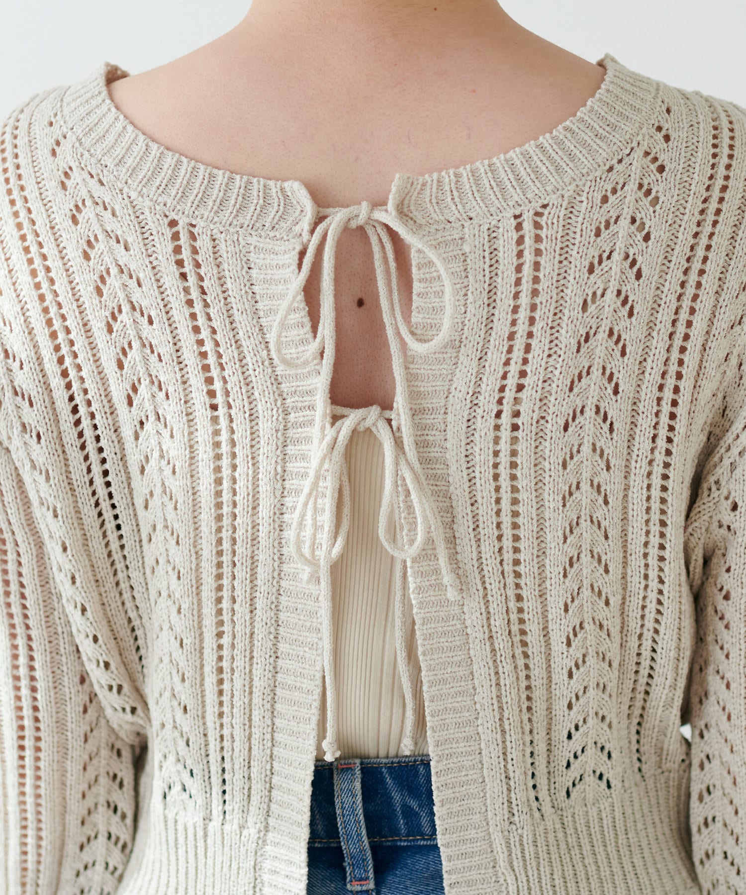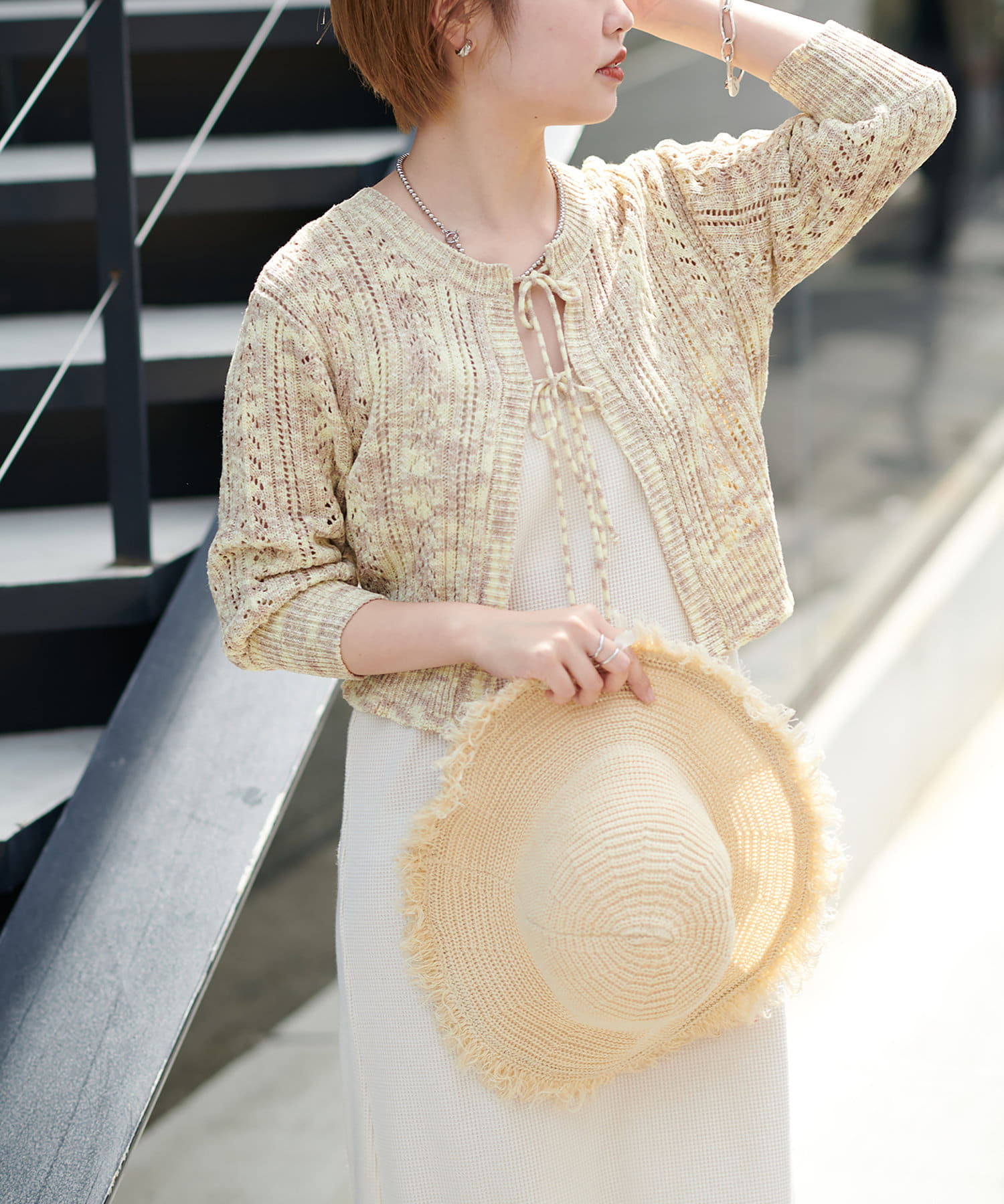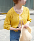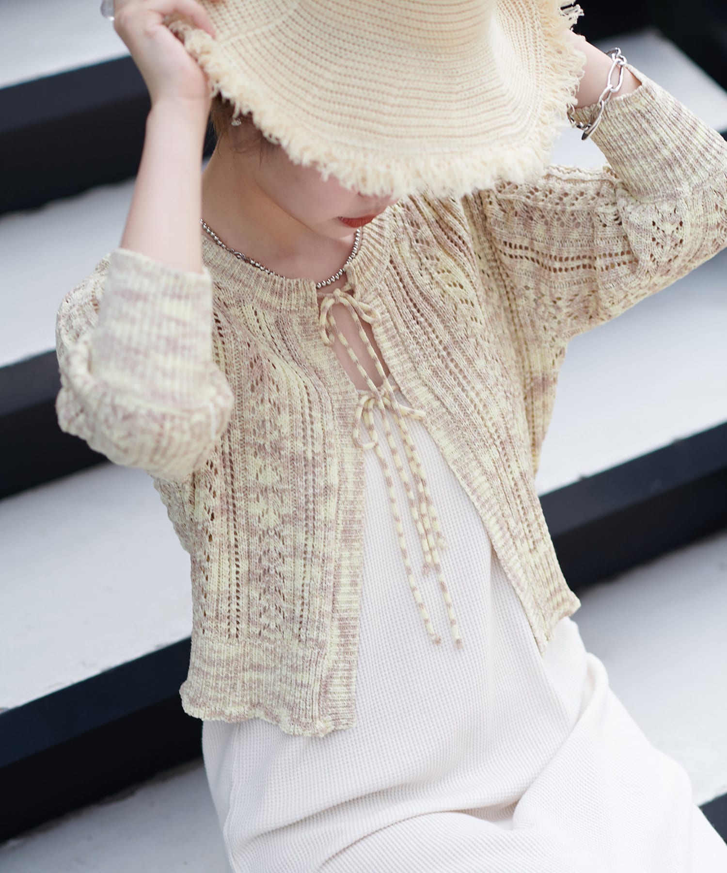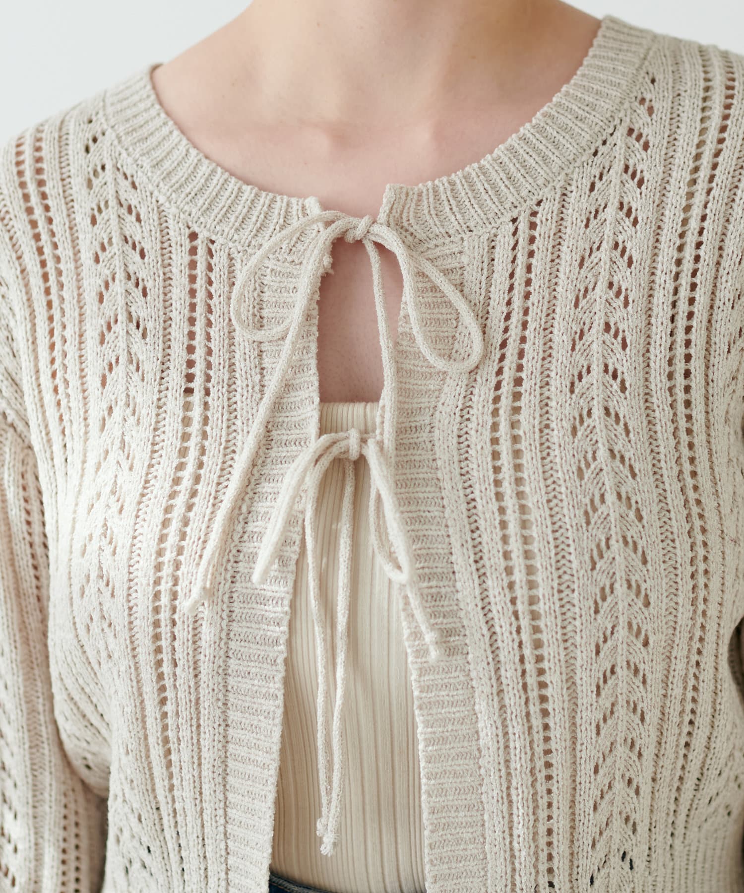 WEB限定/ダブルリボン透かし編みボレロカーディガン