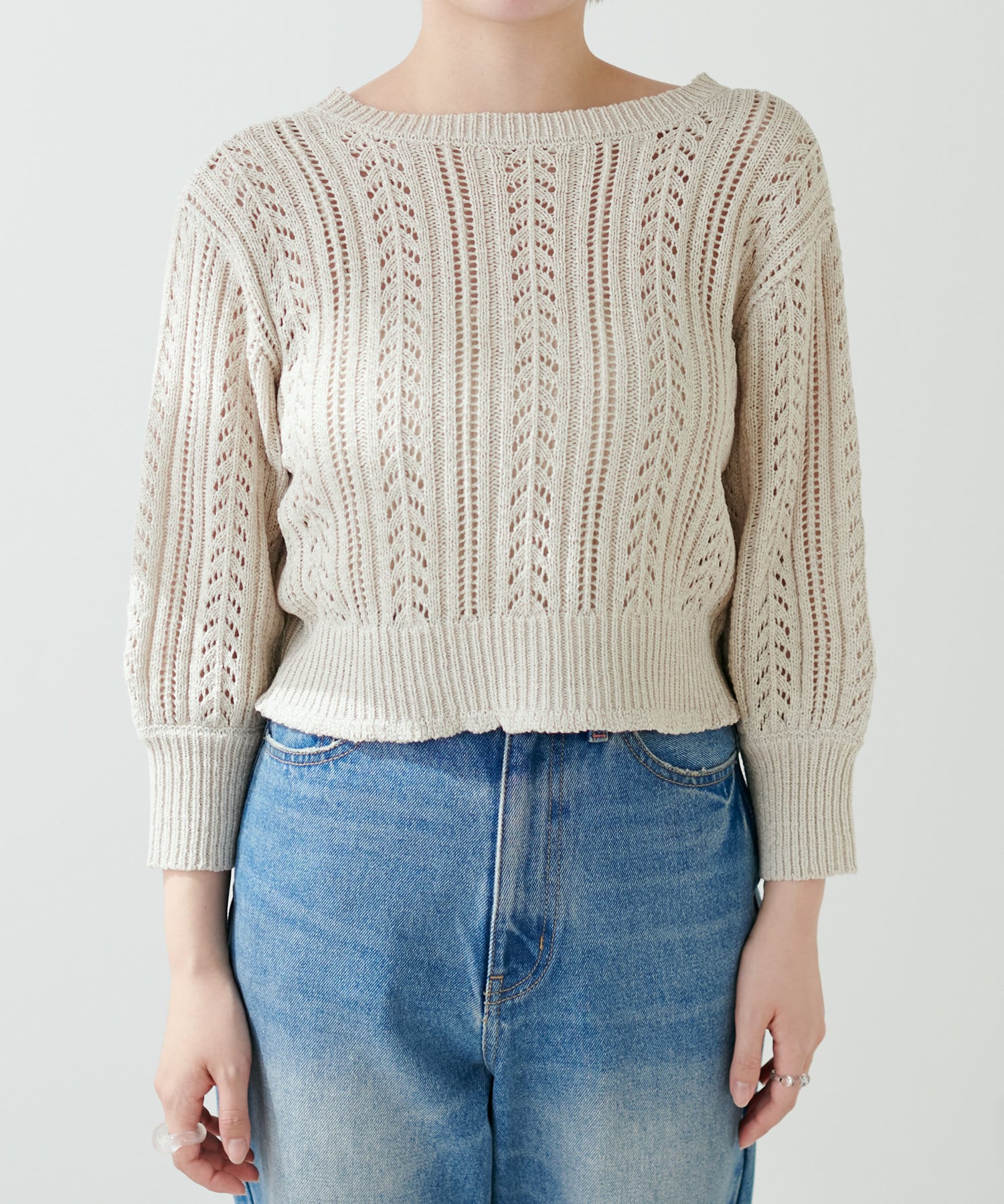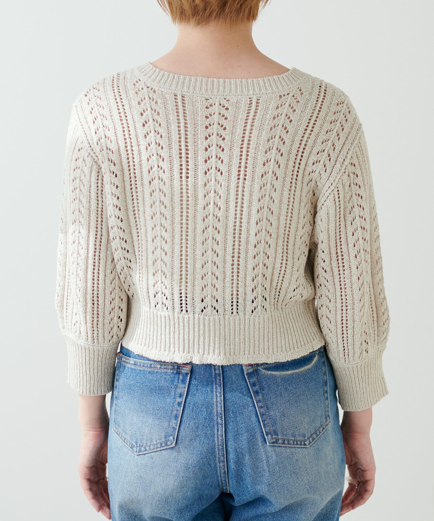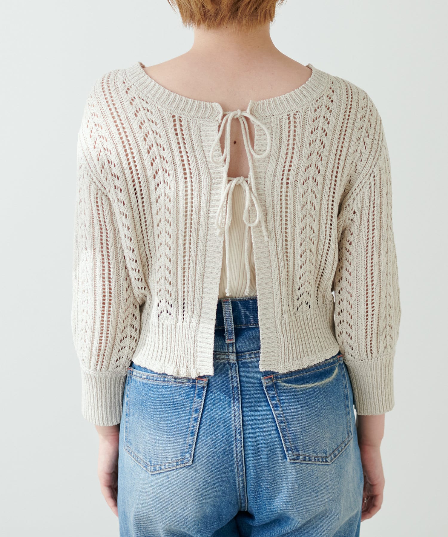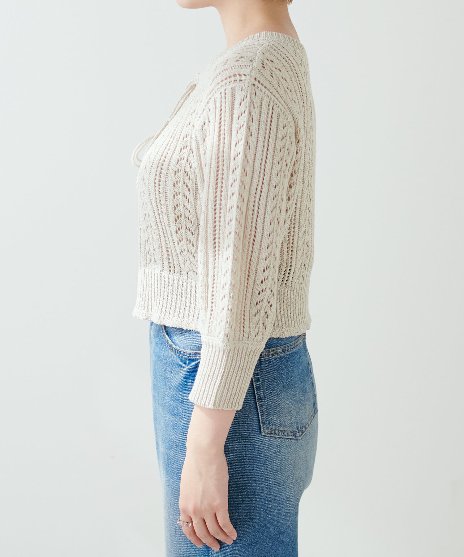 WEB限定/ダブルリボン透かし編みボレロカーディガン