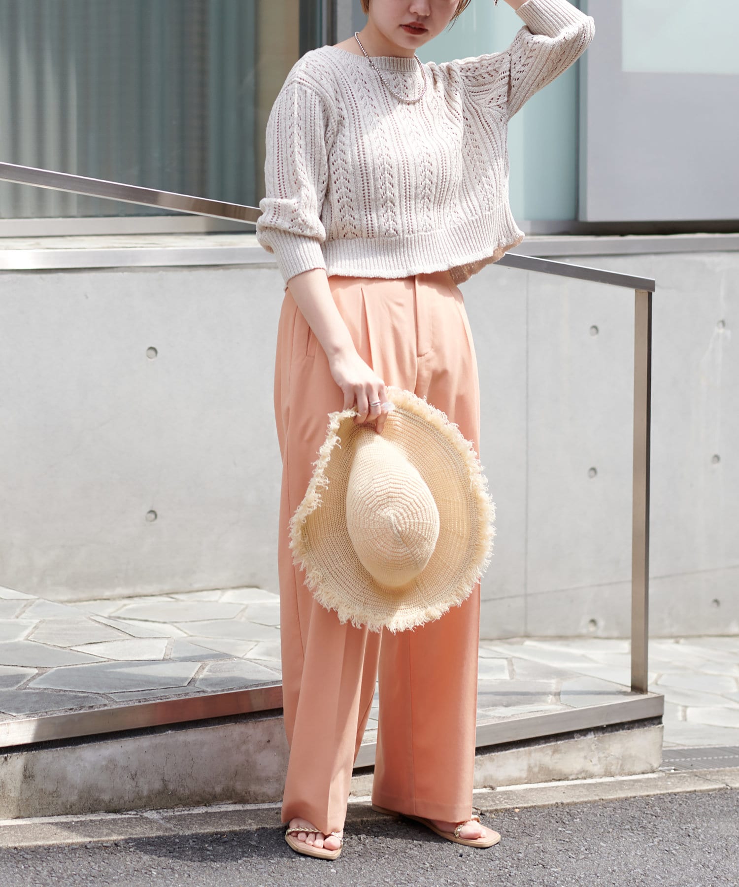 丈が短めなのでハイウエストのボトムとも相性がよく、