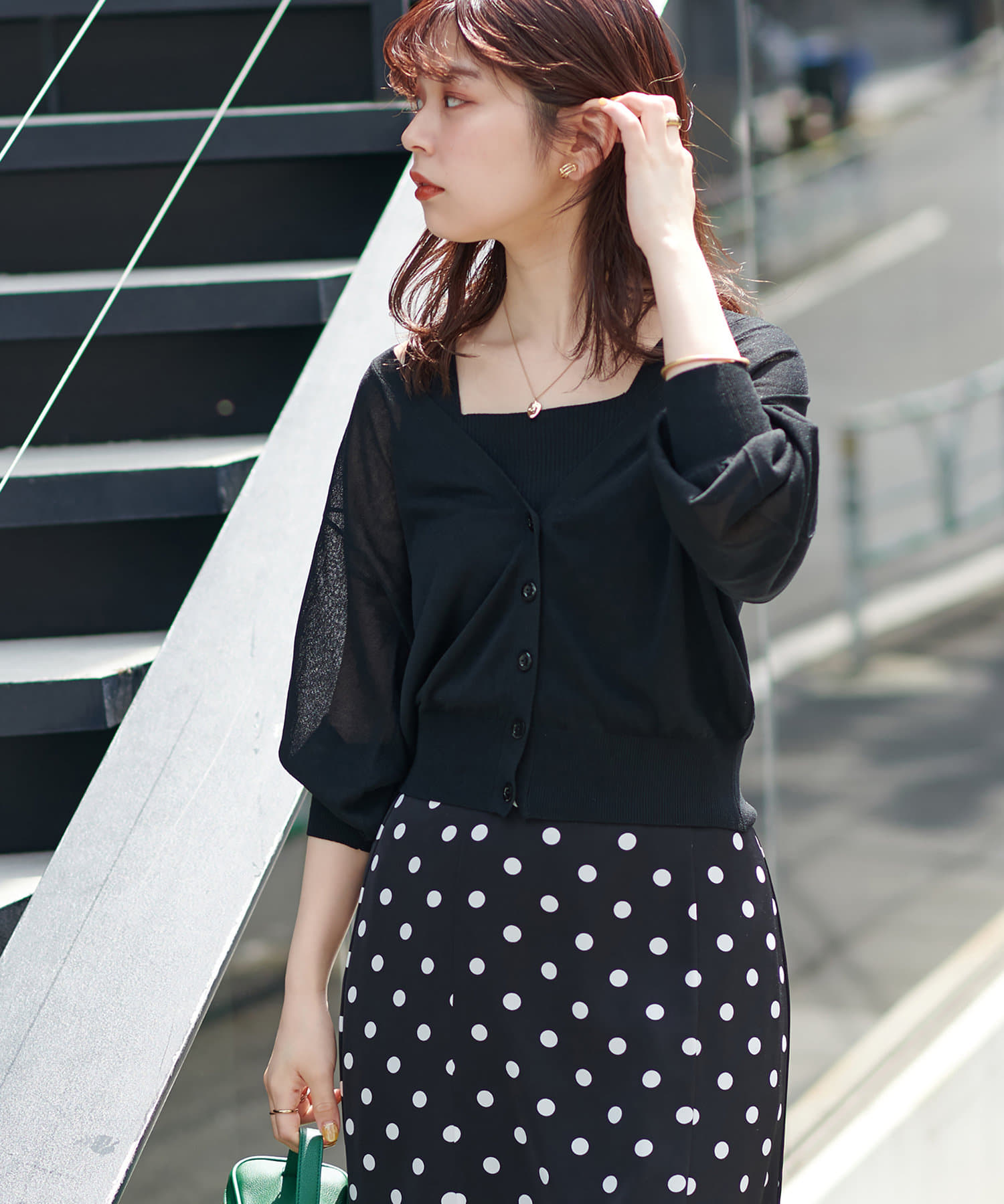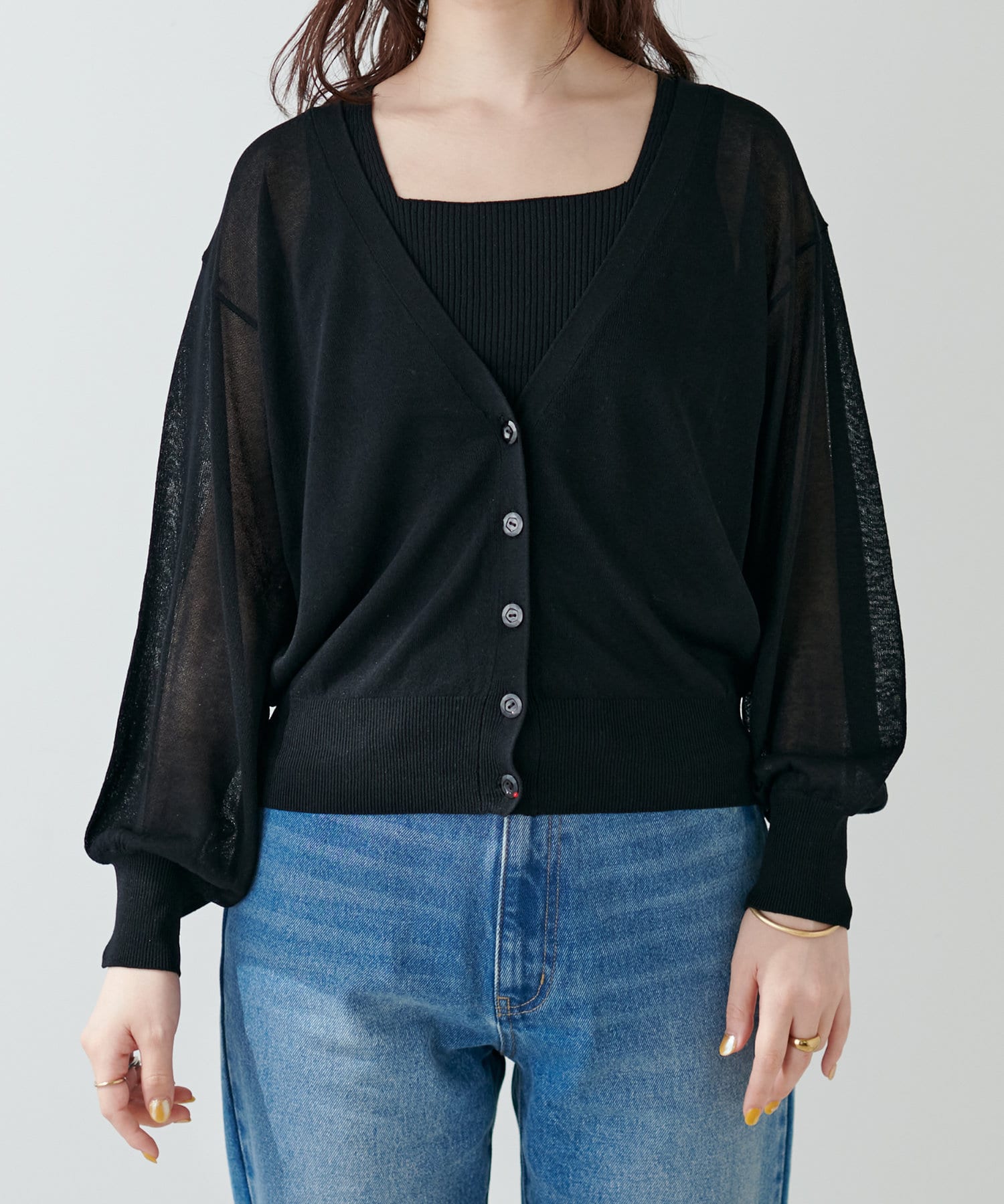 WEB限定/ほんのりシアーカーディガン+タンクセット
