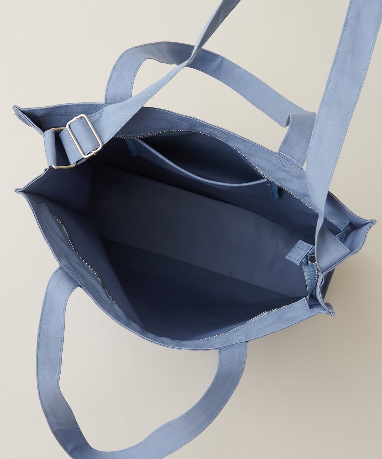 旅行などの荷物が多くなってしまう時に便利な、チャック付き大きめトートバック。