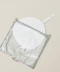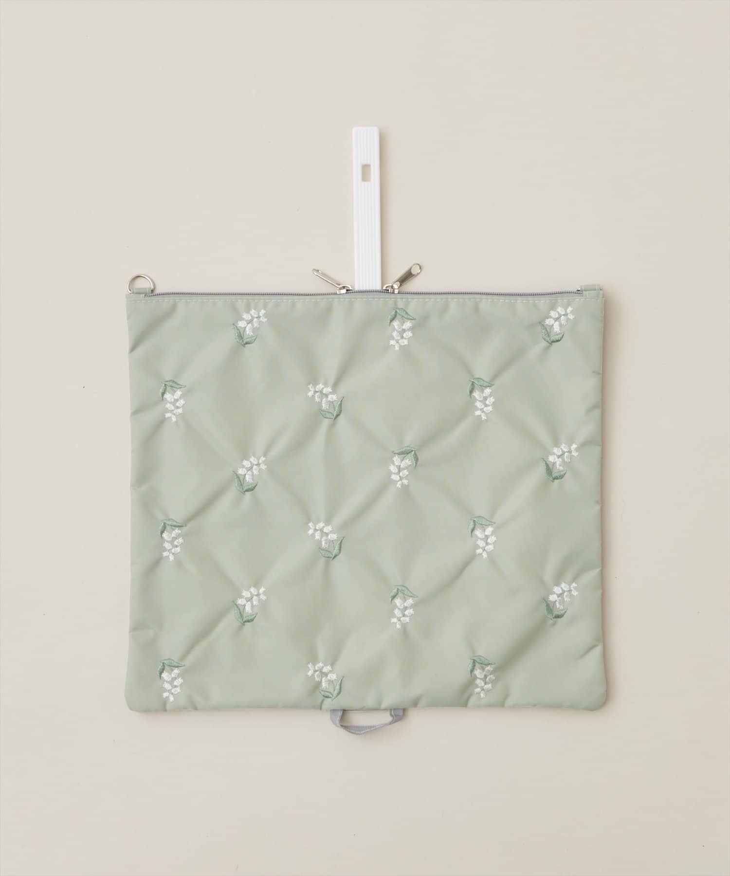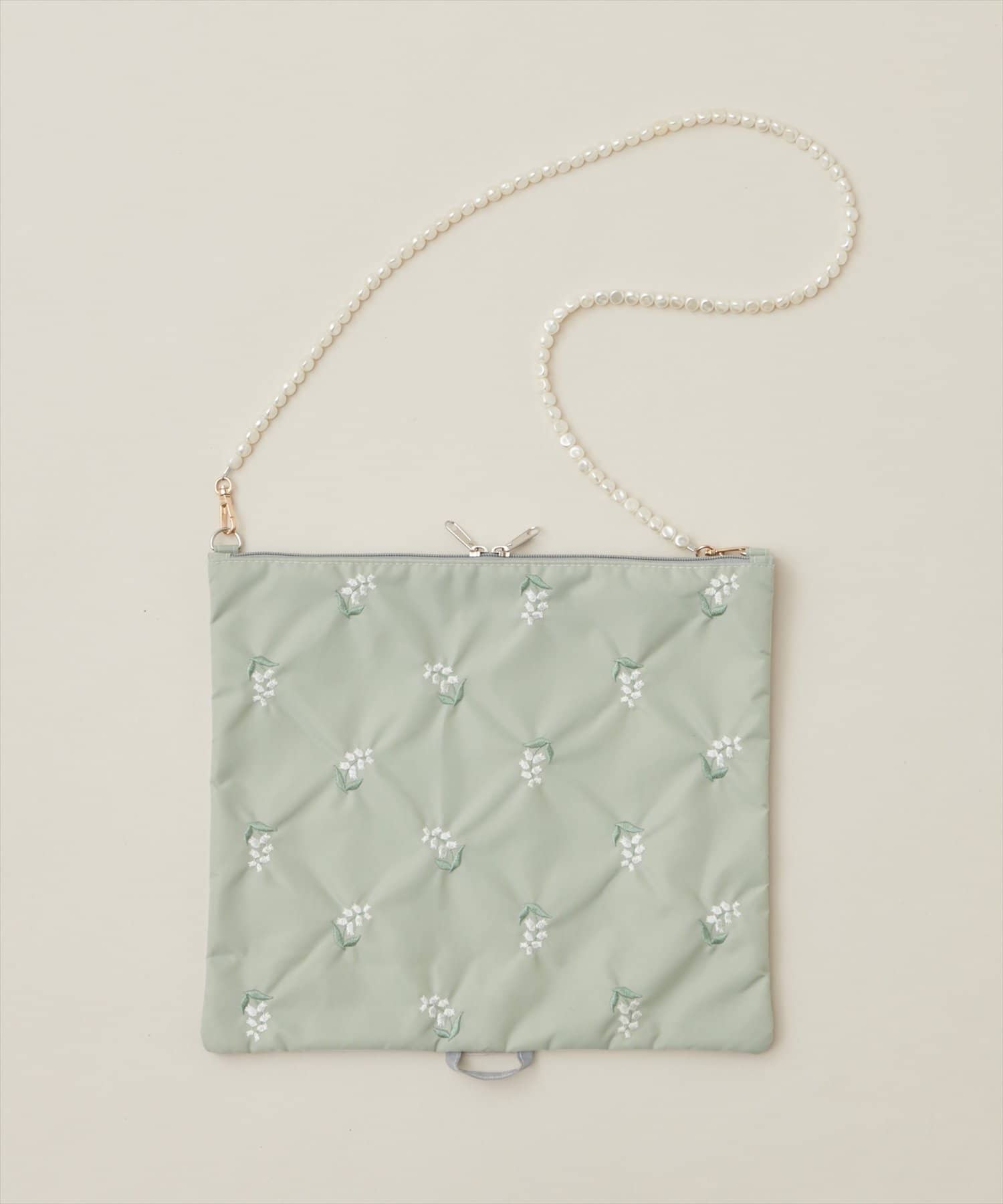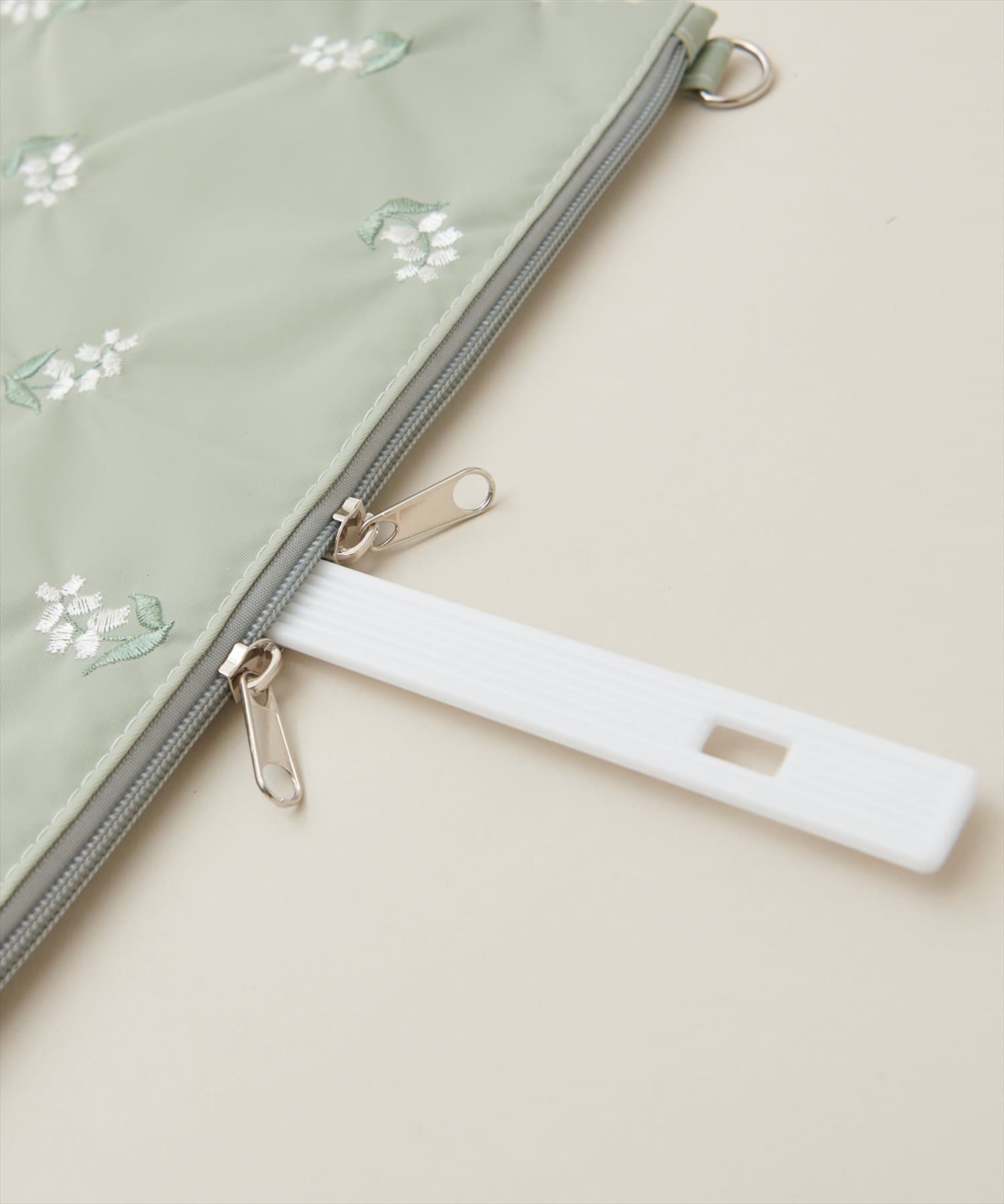 ジッパーの2つ使いで出し入れしやすく、別売りのビーズ紐を付ければ