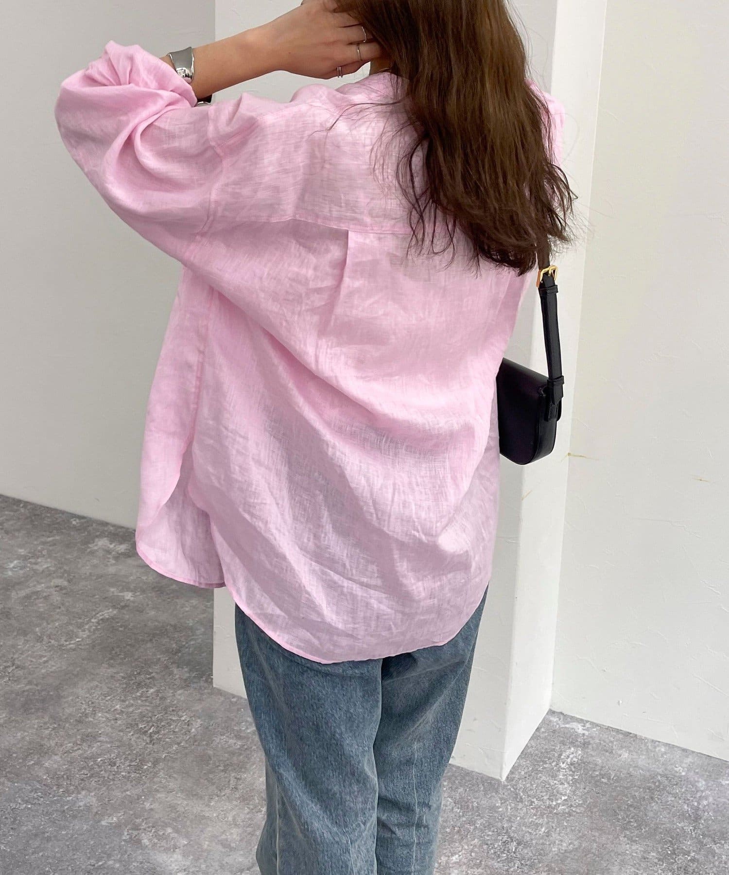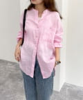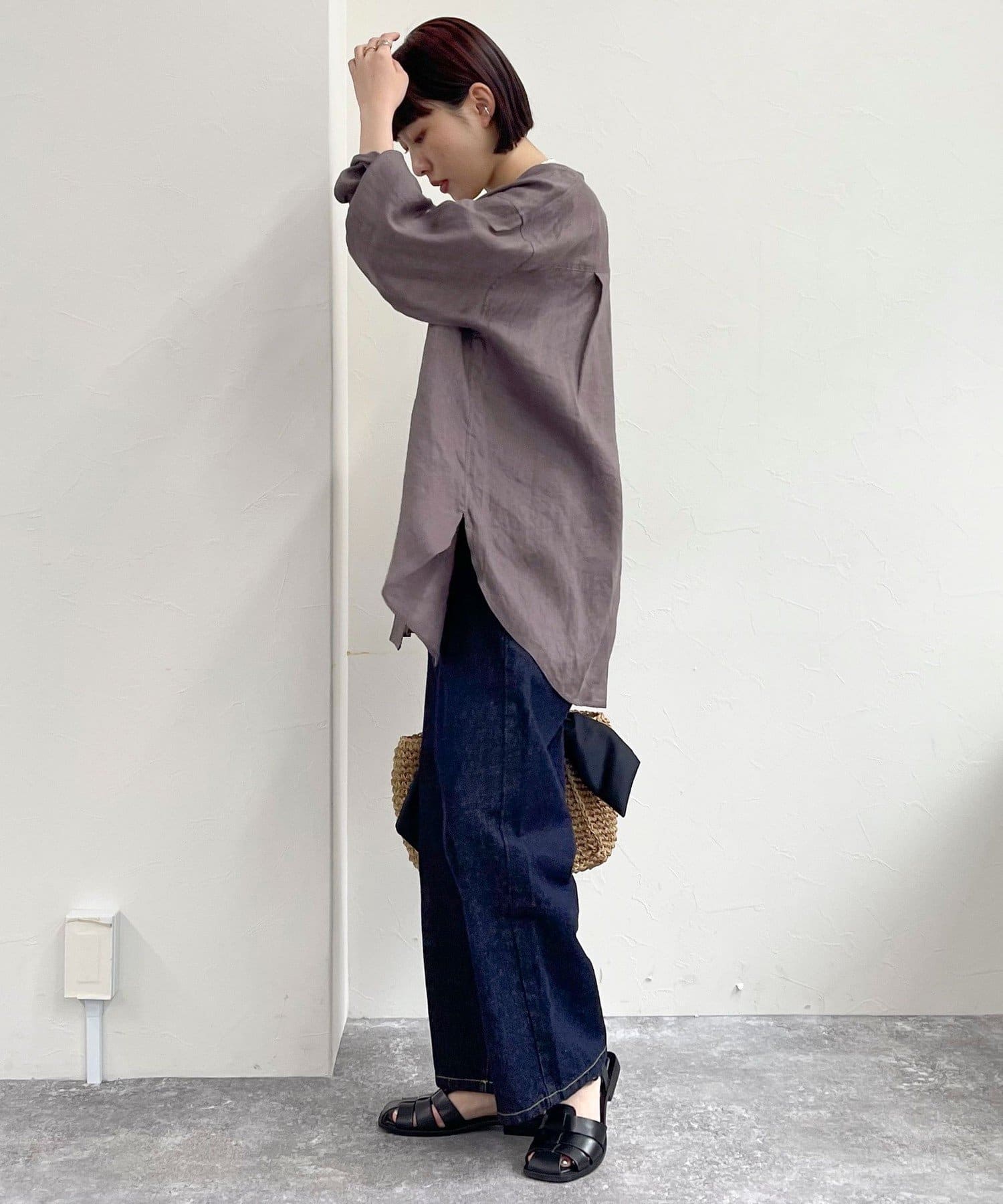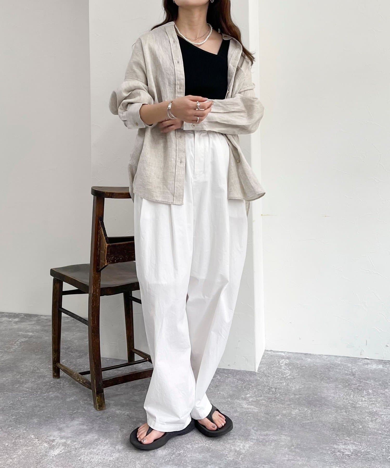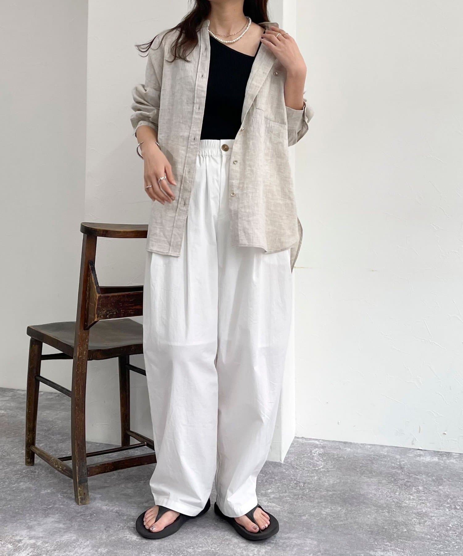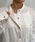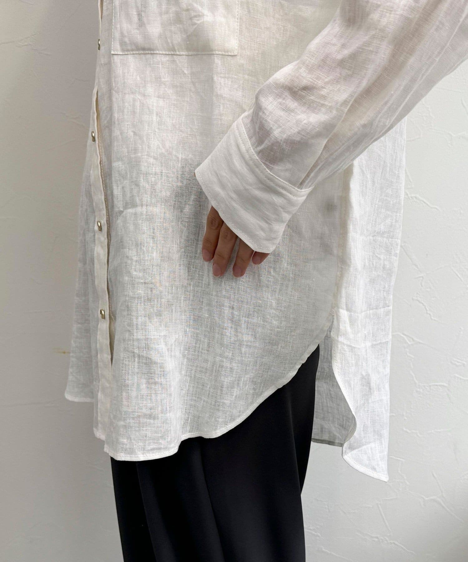 今っぽい着こなしになる、ラフな印象に見せてくれるリネンバンドカラーシャツ