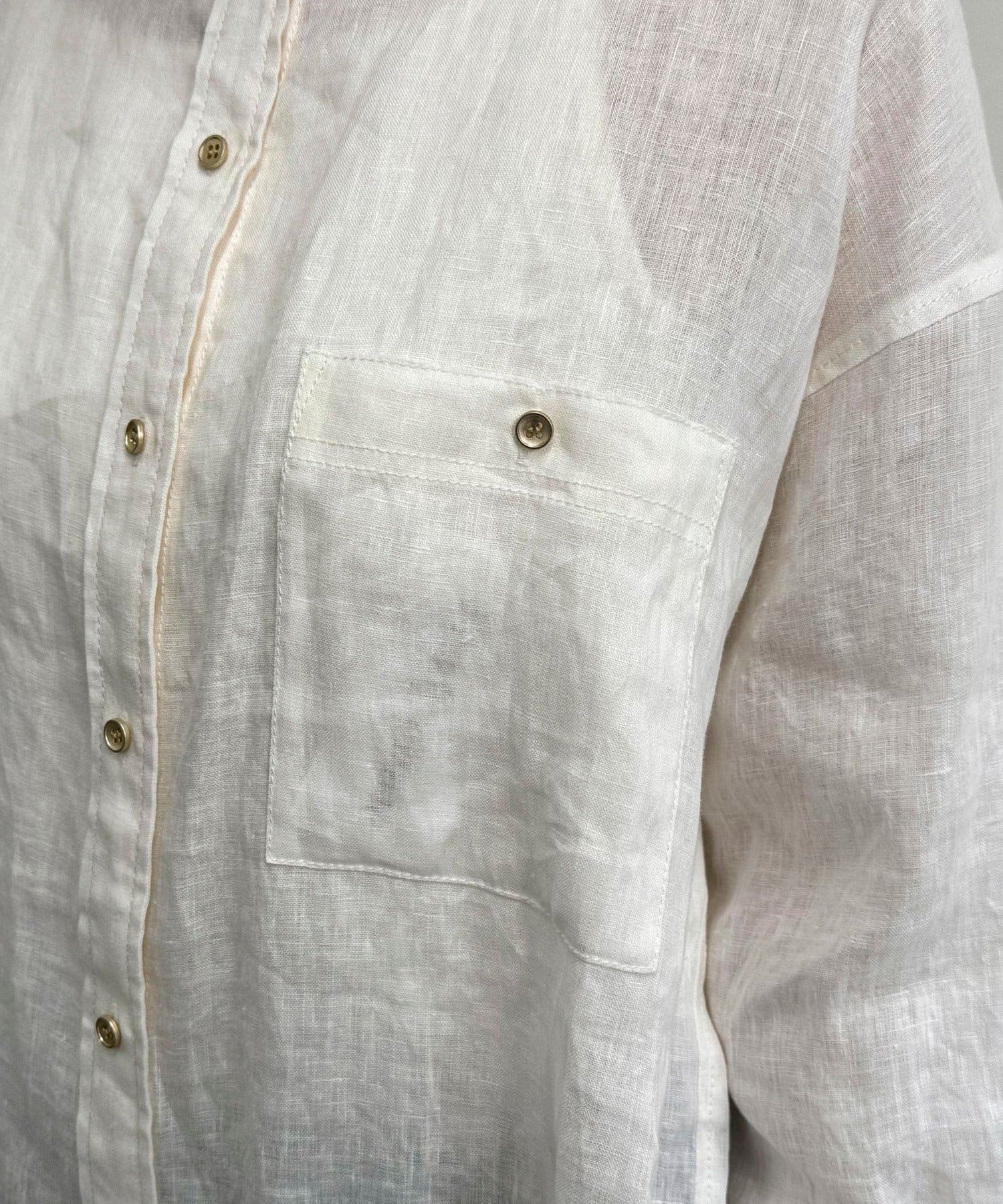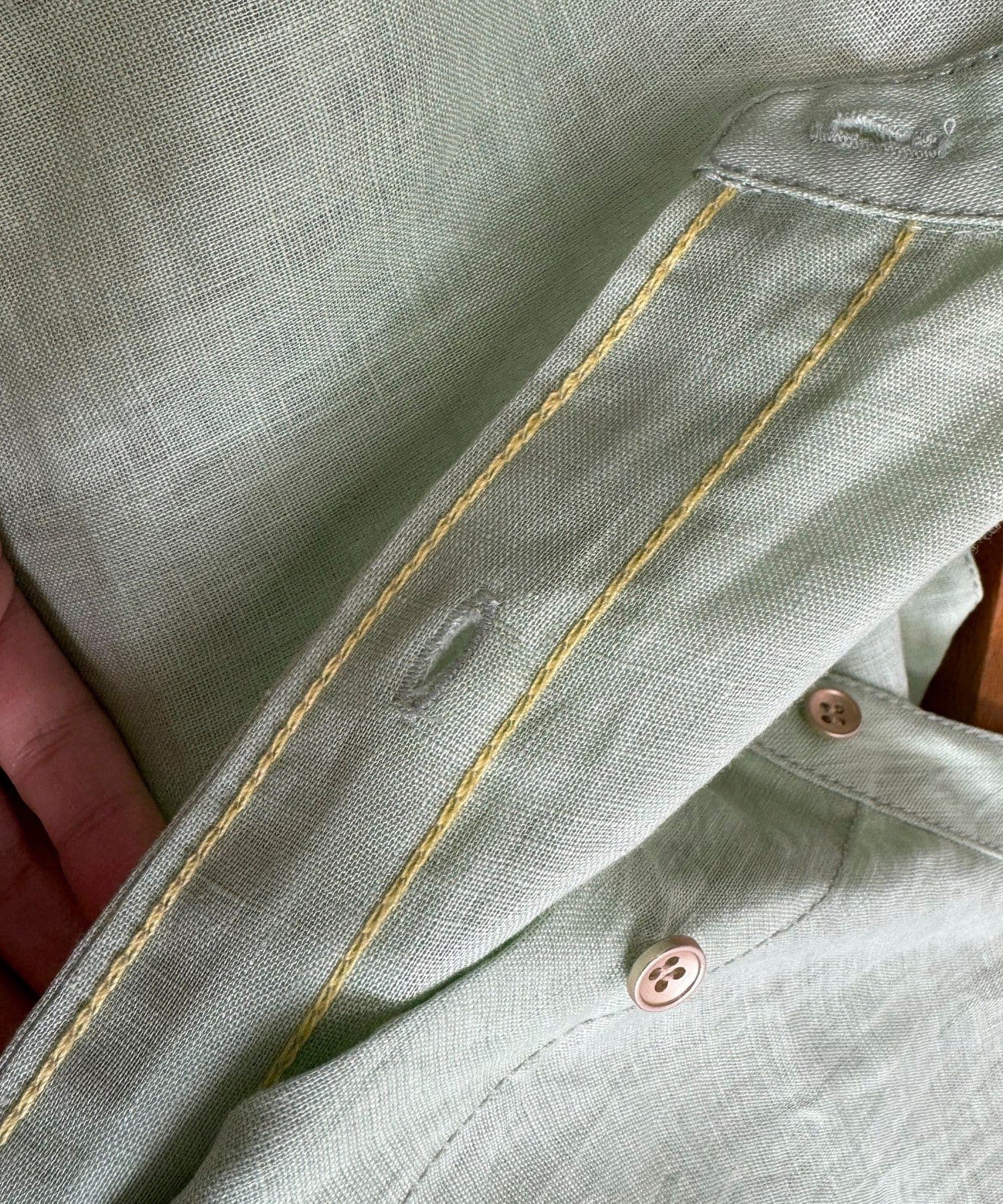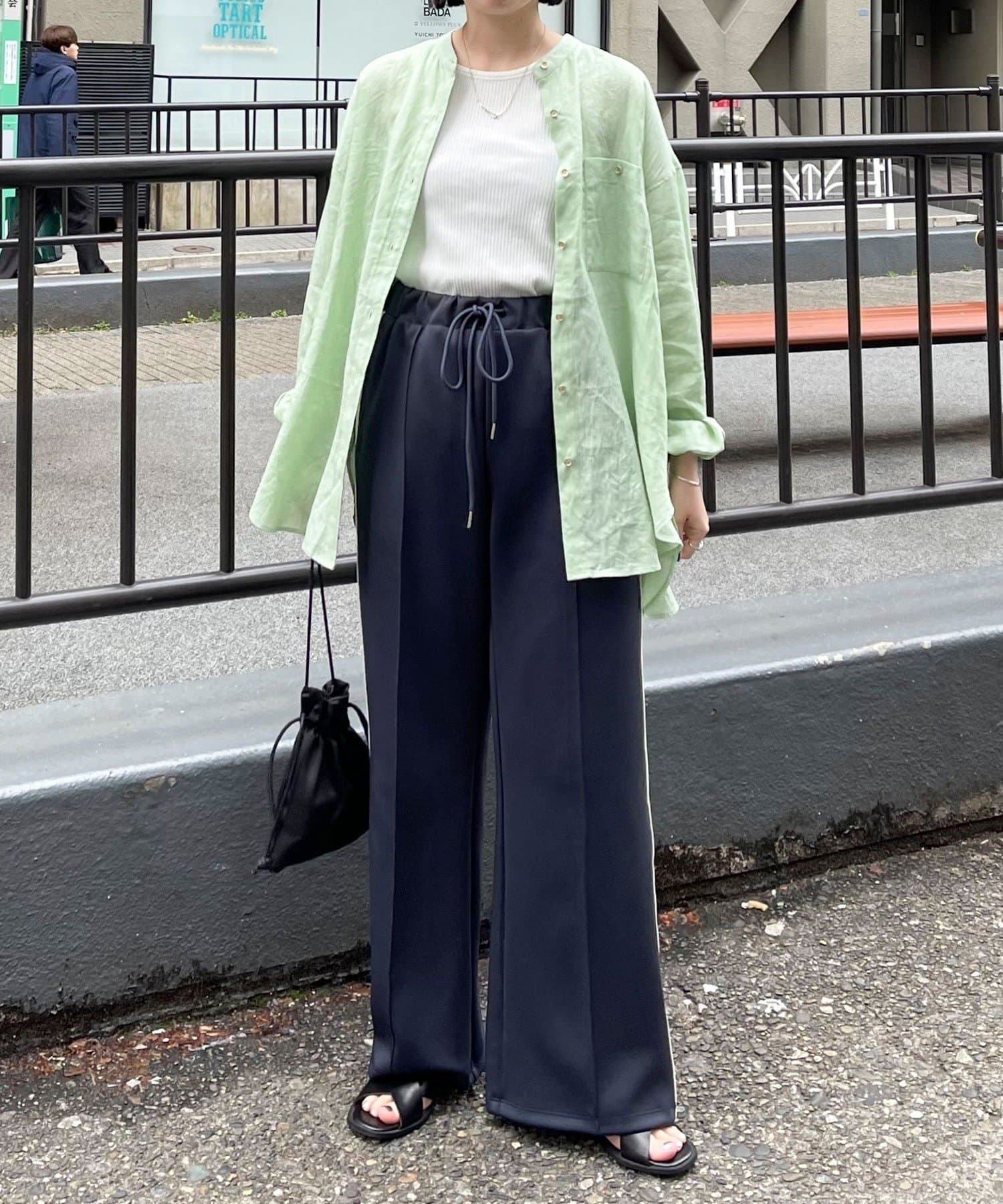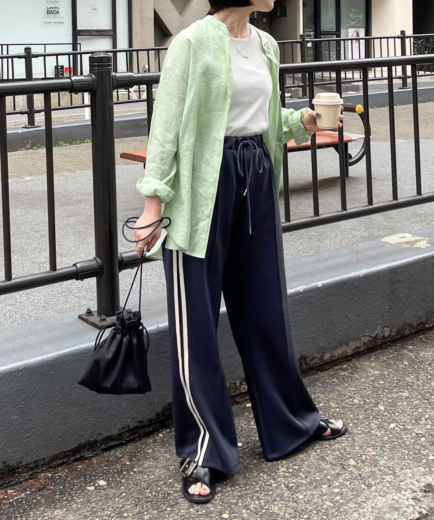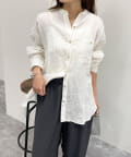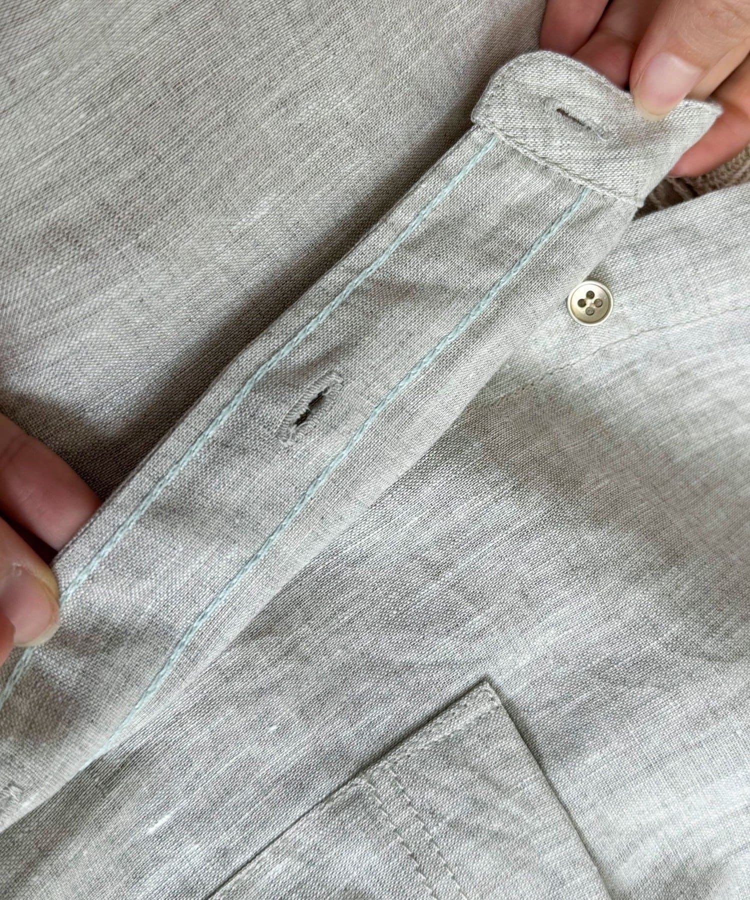 今っぽい着こなしになる、ラフな印象に見せてくれるリネンバンドカラーシャツ