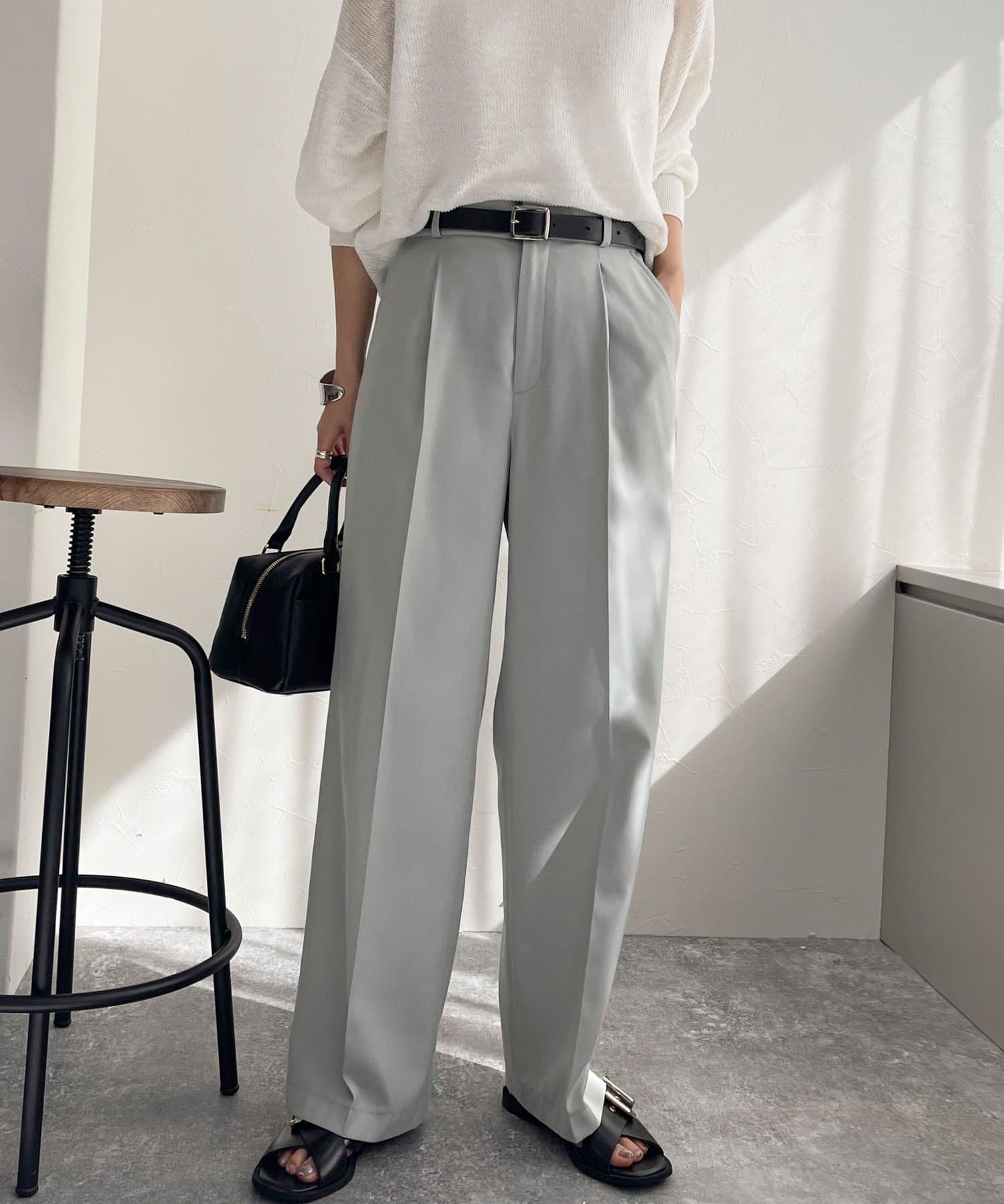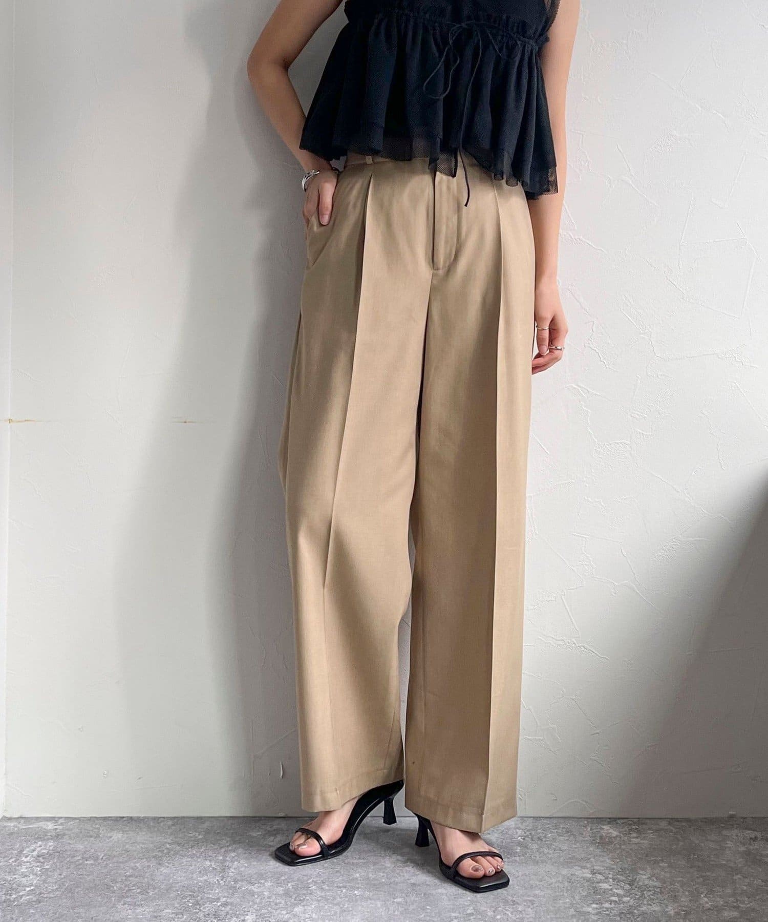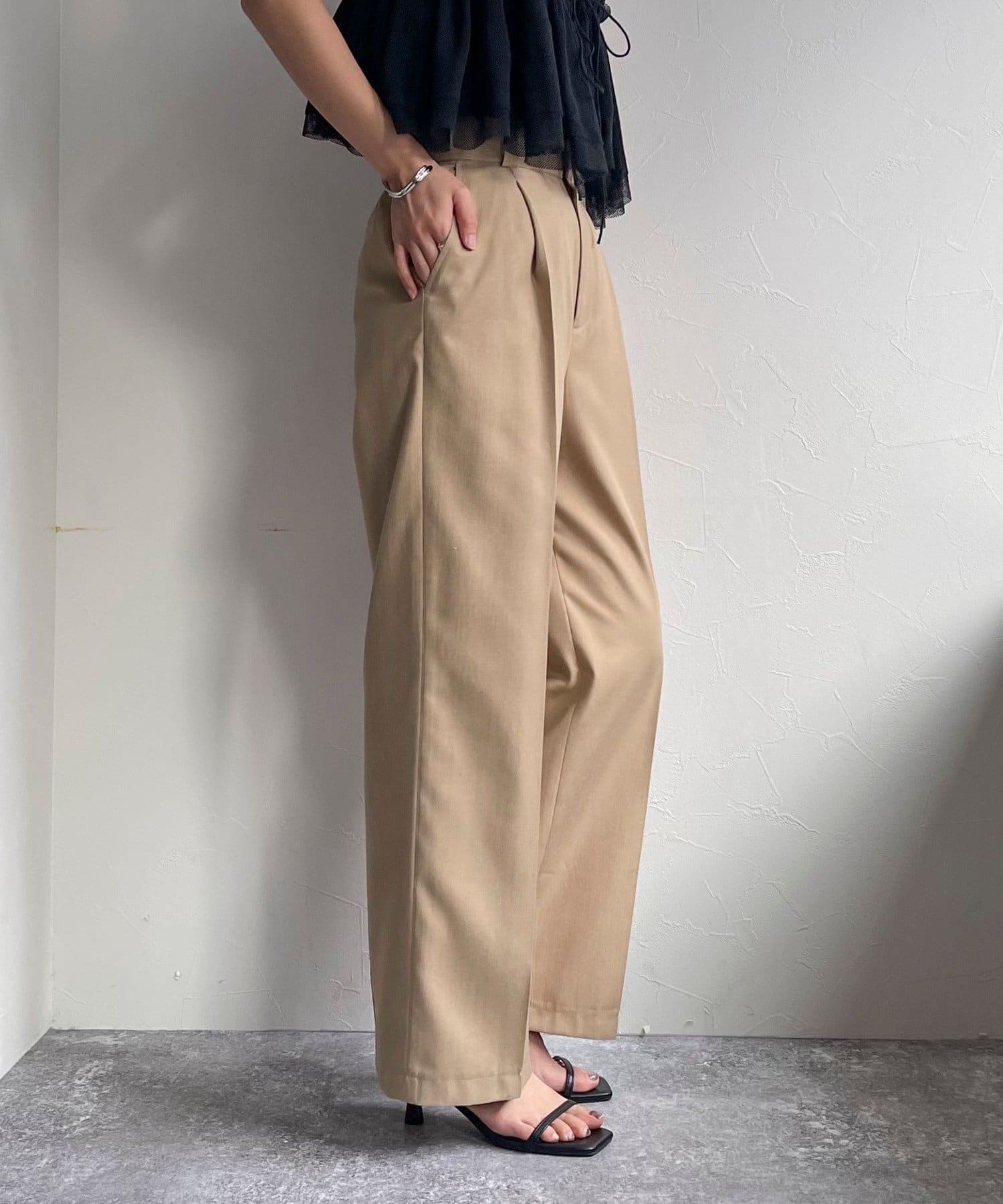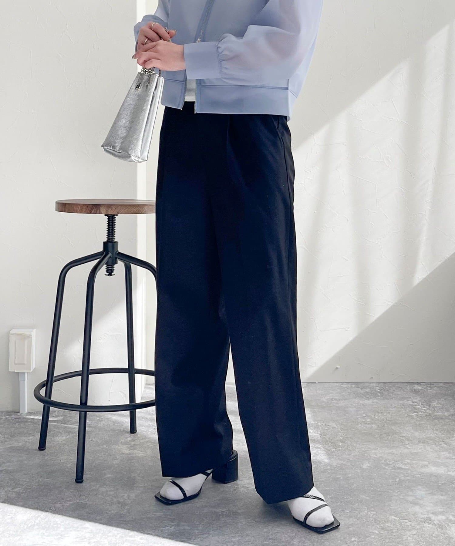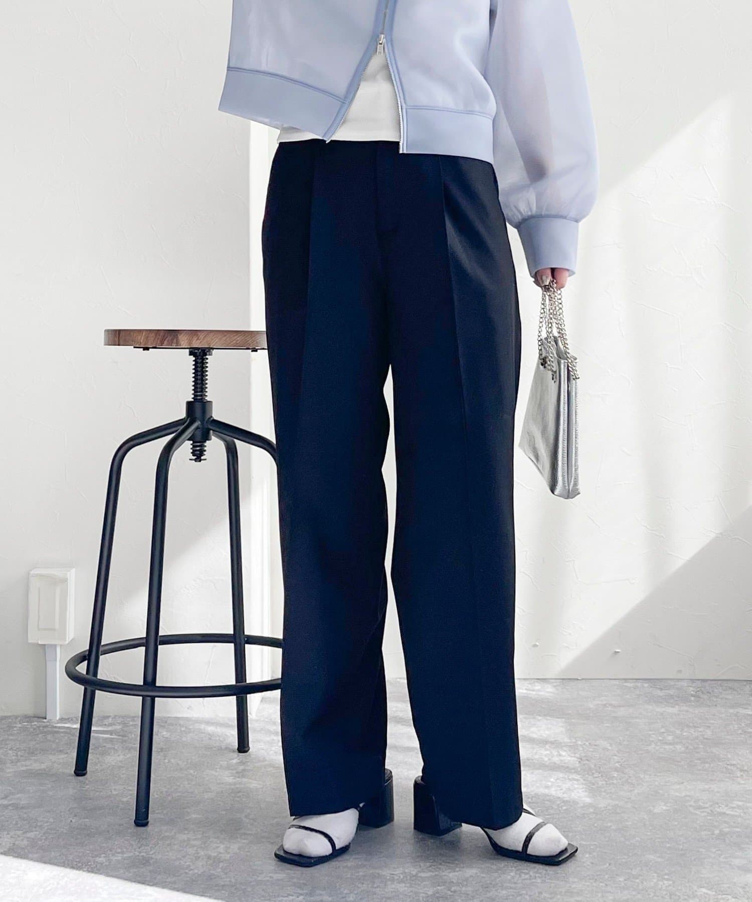 スタイルアップが叶うスラブツイルタックスラックスパンツ