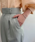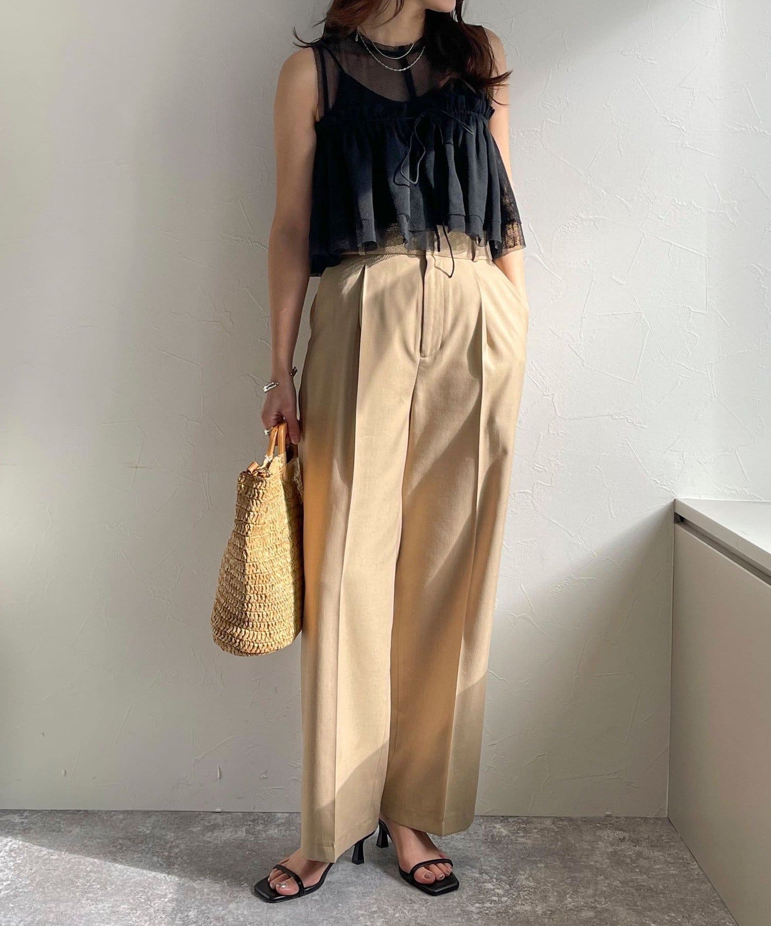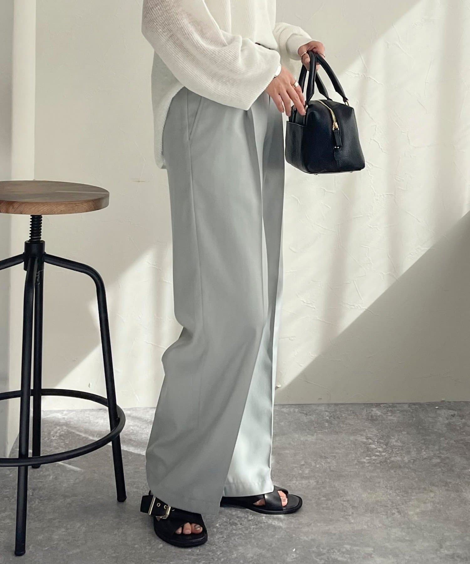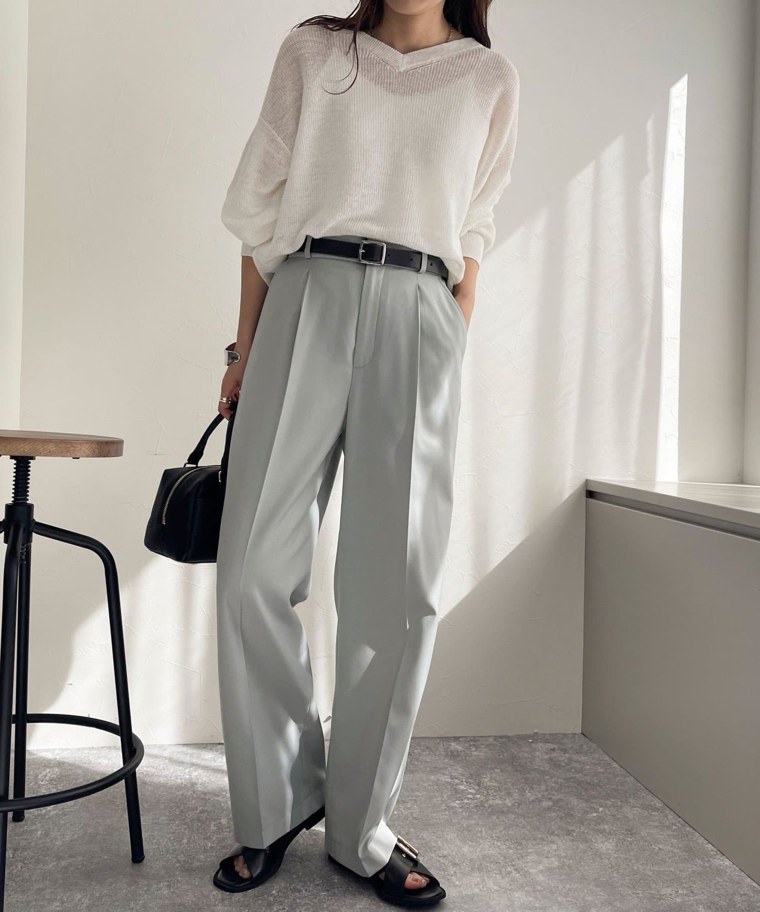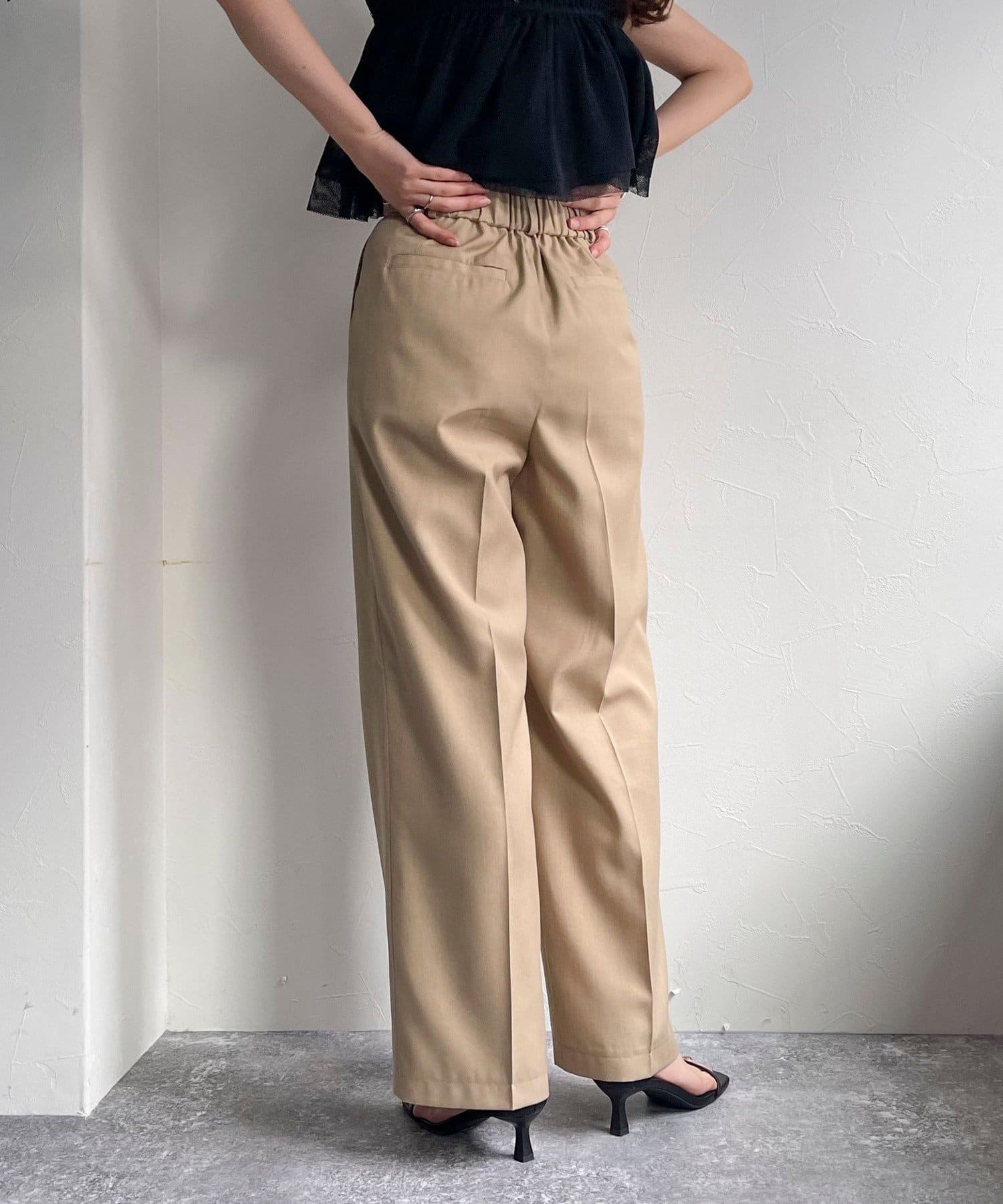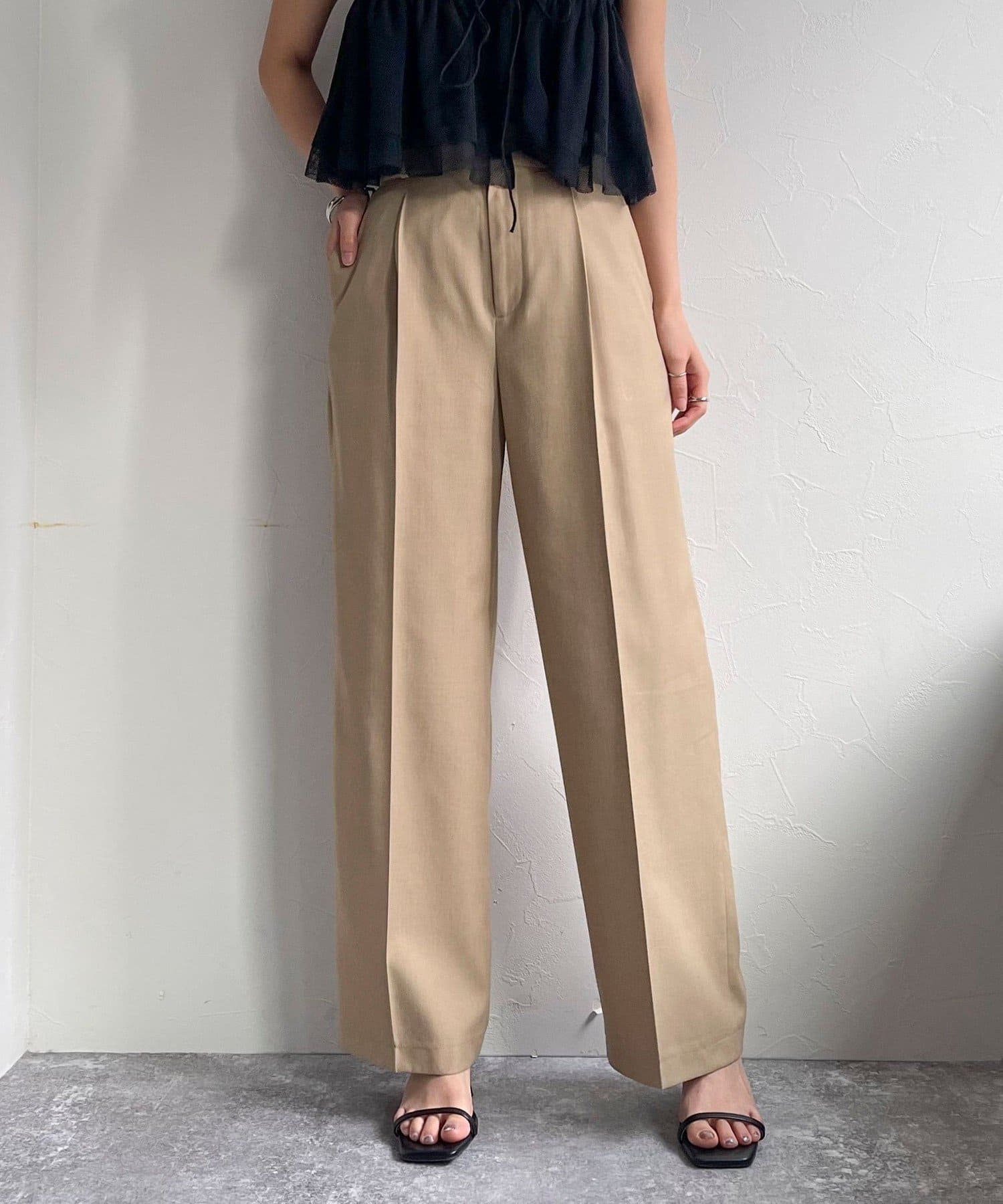 スタイルアップが叶うスラブツイルタックスラックスパンツ
